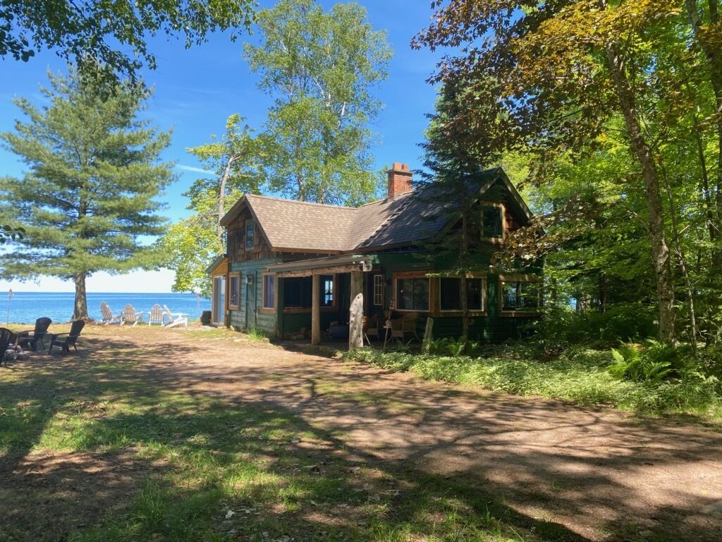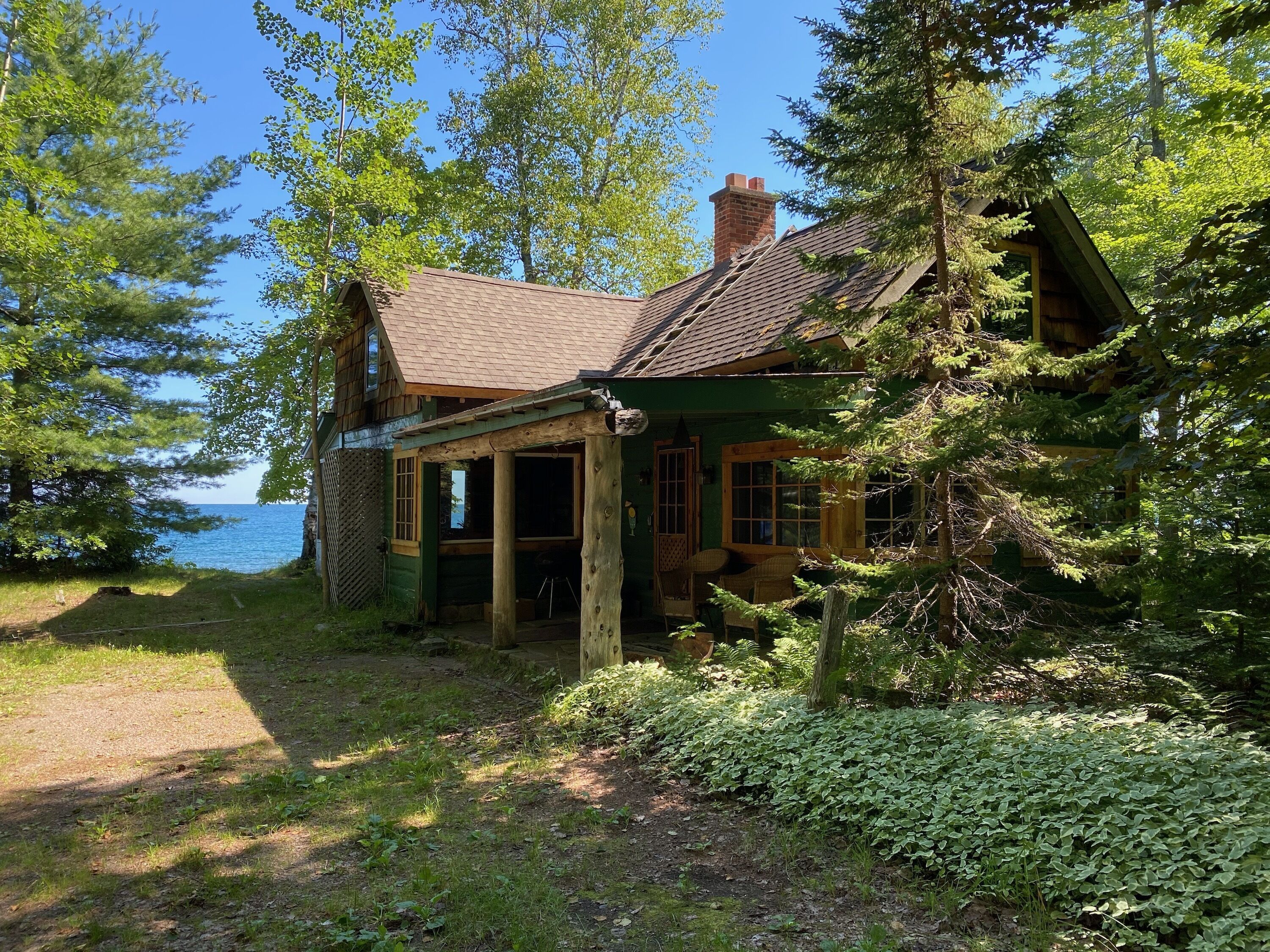 Near Munising.and and Snowmobile trails This historic log cottage on the banks of Lake Superior was originally built in the first part of the 1900’s as one of the early fishing camps of Shelter Bay. Over the years there have been numerous modern improvements, but much of the rustic charm, such as the large stone fireplace and the low ceilings and exposed rafters of the second story, remain…and t...
