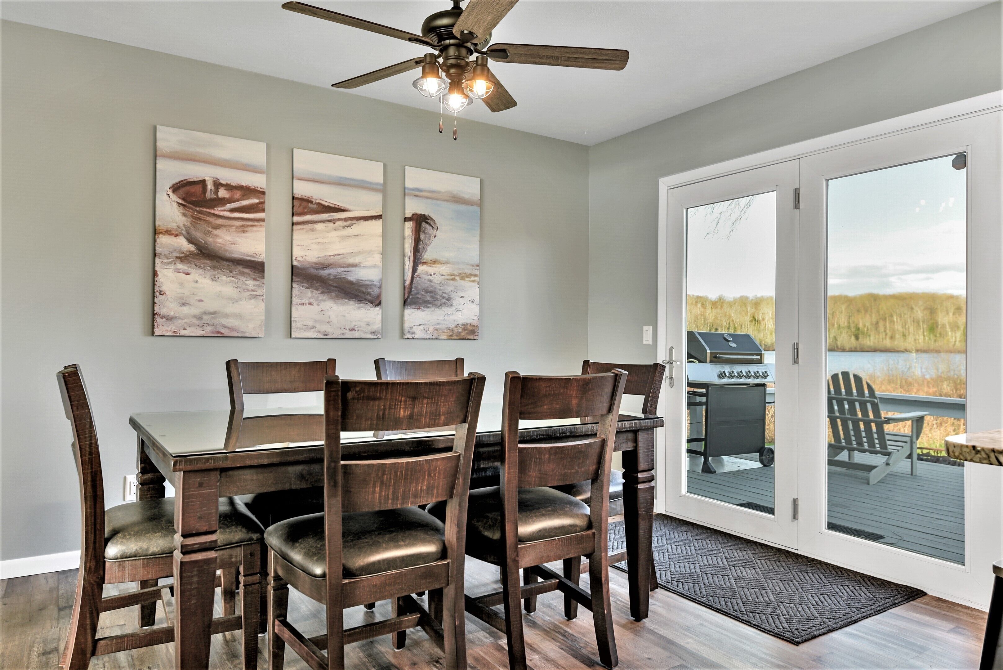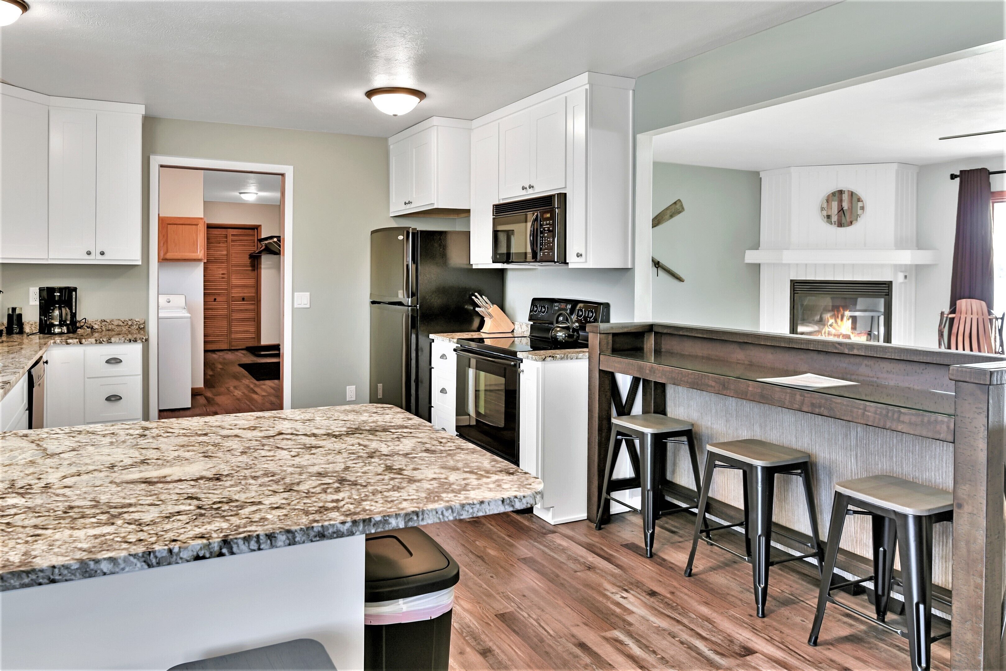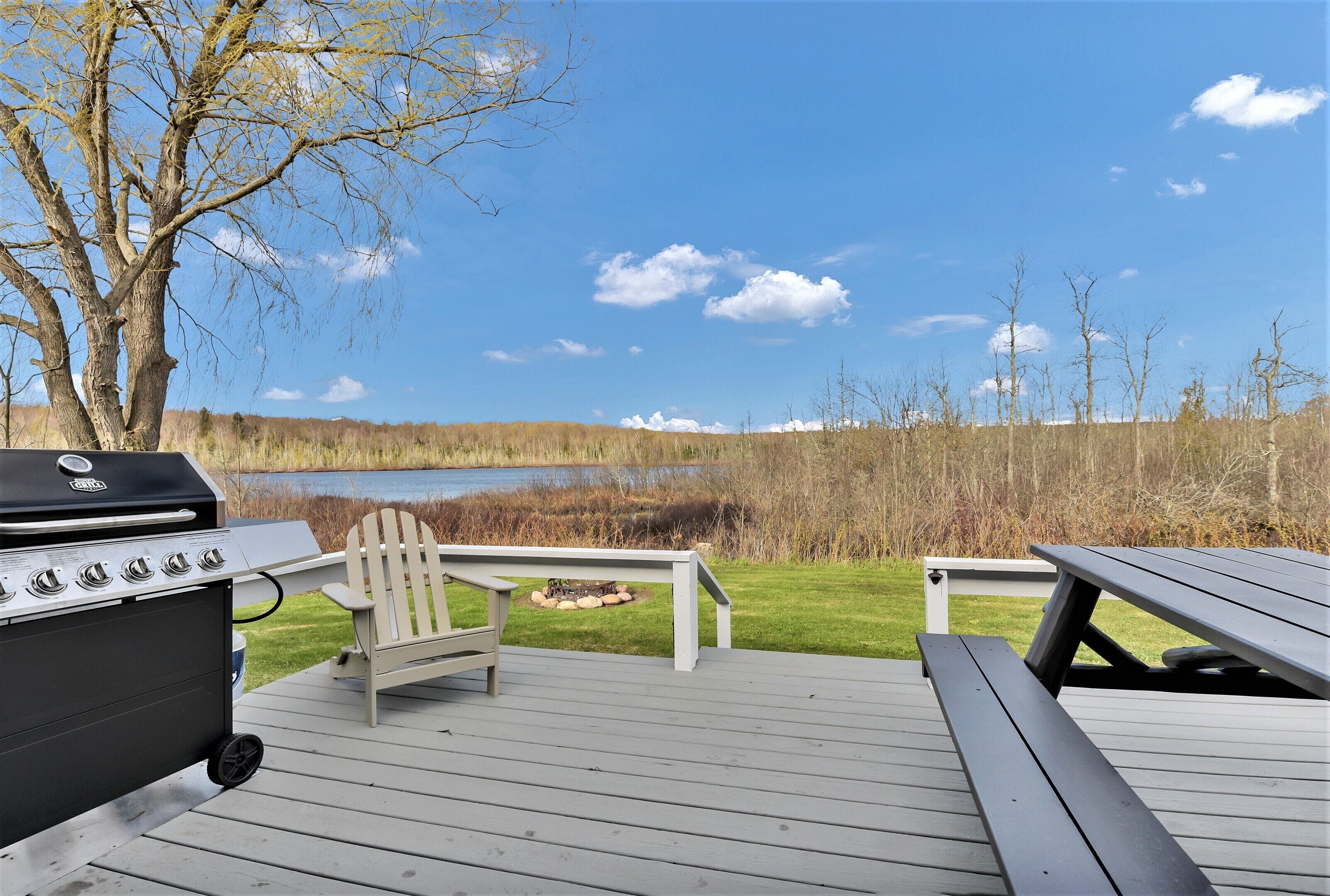 The AuTrain Lake House, Newly renovated home on Autrain Lake near Pictured Rocks The “Au Train Lake House” is located 15 minutes west of Munising and the Pictured Rocks National Lake Shore. For you snowmobiler/ATV folks we are only a few minute ride to the trails. We own 3 other properties within a couple miles from this lake house and maintain a 5 star rating on all of them. This is a very spacious home that is newly renovated , central A/C, all new furnishings, linens and an amazing custom kitchen with granite counter tops. You will find everything you need to cook or prepare mostly anything. Also, you will find a drip coffee maker with filters provided, as well as a Keurig (BYOB pods) Stay at the Autrain Lake house and you could wake up early and watch the sun rise over Lake Au Train on the east facing front patio or sit on the back deck in the evening and watch it set over our private Paulson Lake. Our lake home seep sleeps seven (including adults, children & infants) & sits on a unique “dual lakefront” lot with no neighbors. The setting is one you would never grow tired of!Autrain Lake is great for watersports and fishing. With a public boat launch on the south end of the lake, bring your own Rec/fishing boat to our 30ft dock (in from mid-June until early September). Spend some time in or out on the water, paddling around in one of our 4-10 ft kayaks or 2-SUPs we have on site available to rent. (Life jackets and paddles included) They are $75 per unit for the length of your stay (payable on site if you wish.) If you pre-pay them in advance with your reservation they are only $50 per unit for the entire duration of your stay. Recap your day near the campfire watching the sunset over Paulson Lake unwinding from hiking and waterfall touring. Campfires in designated pit area only. Absolutely NO FIREWORKS on property at any time. In the winter months, after a day of play on your sleds, come back and warm up by the fireplace, or cozy up on the couch to watch a movie, on the 55" Samsung Smart TV with 200+ built in channels, plus Hulu or Netflix capabilities as well as gaming inputs. Ultra-fast Starlink Wi-Fi. Just a note: the attached garage is for owner storage & not available for guest use. UNFORTUNATELY, WE ARE UNABLE TO OFFER WEATHER RELATED CANCELLATIONS, REFUNDS, OR DATE CHANGES UNDER ANY CIRCUMSTANCES We will allow 1 pet at the Au Train Lake House, you must inquire first, as we do have a pet policy that must be agreed upon, as well as a small pet fee.