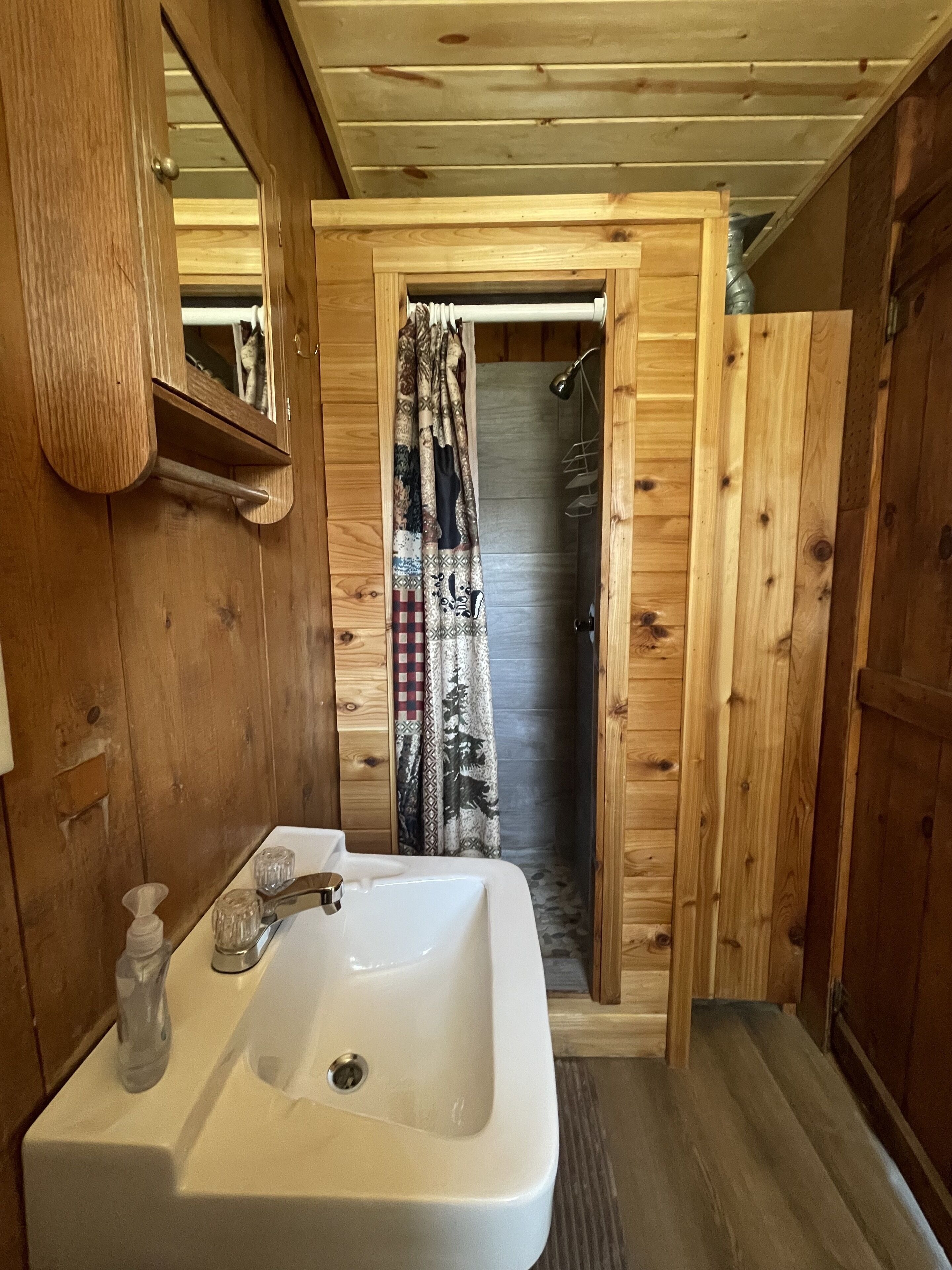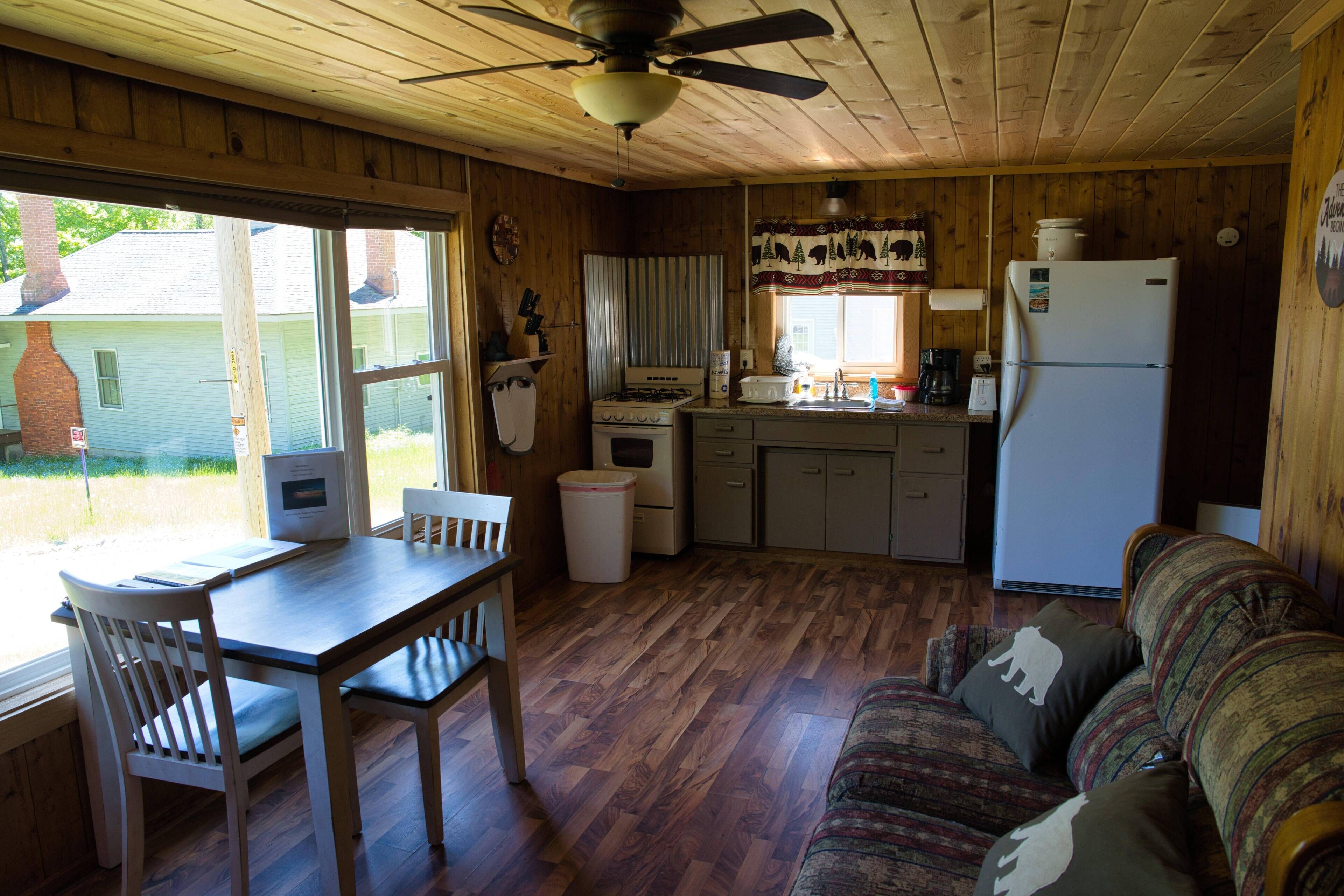 1 bedroom cabin on lakefront property. Pet friendly. One bedroom lake view cabin located on a 15 acre lake front resort property. Property has 7 other cabins all spaced a comfortable distance from each other. Queen bed. Max occupancy 2 people. Enjoy your morning coffee from your table with a breathtaking view of Au Train lake. Full kitchen and bathroom. Outside is a private campfire pit, charcoal grill and picnic table. Inside is fully stocked with dishes, glasses, pots, pans, linens, paper towel and toilet paper. Kitchen also has coffee pot, filters, microwave, refrigerator, stove, toaster, and so much more.There is an onsite camp store onsite with all your essentials including firewood, fire starter, ice cream, ice, soft drinks, snacks, coffee, pizza, camping gear and so much more. Please note, store is not open in the winter.In the summer, guests have access to pontoon, kayak, canoe, stand up paddle board and fishing boat rentals. Snowmobile and ATV friendly.