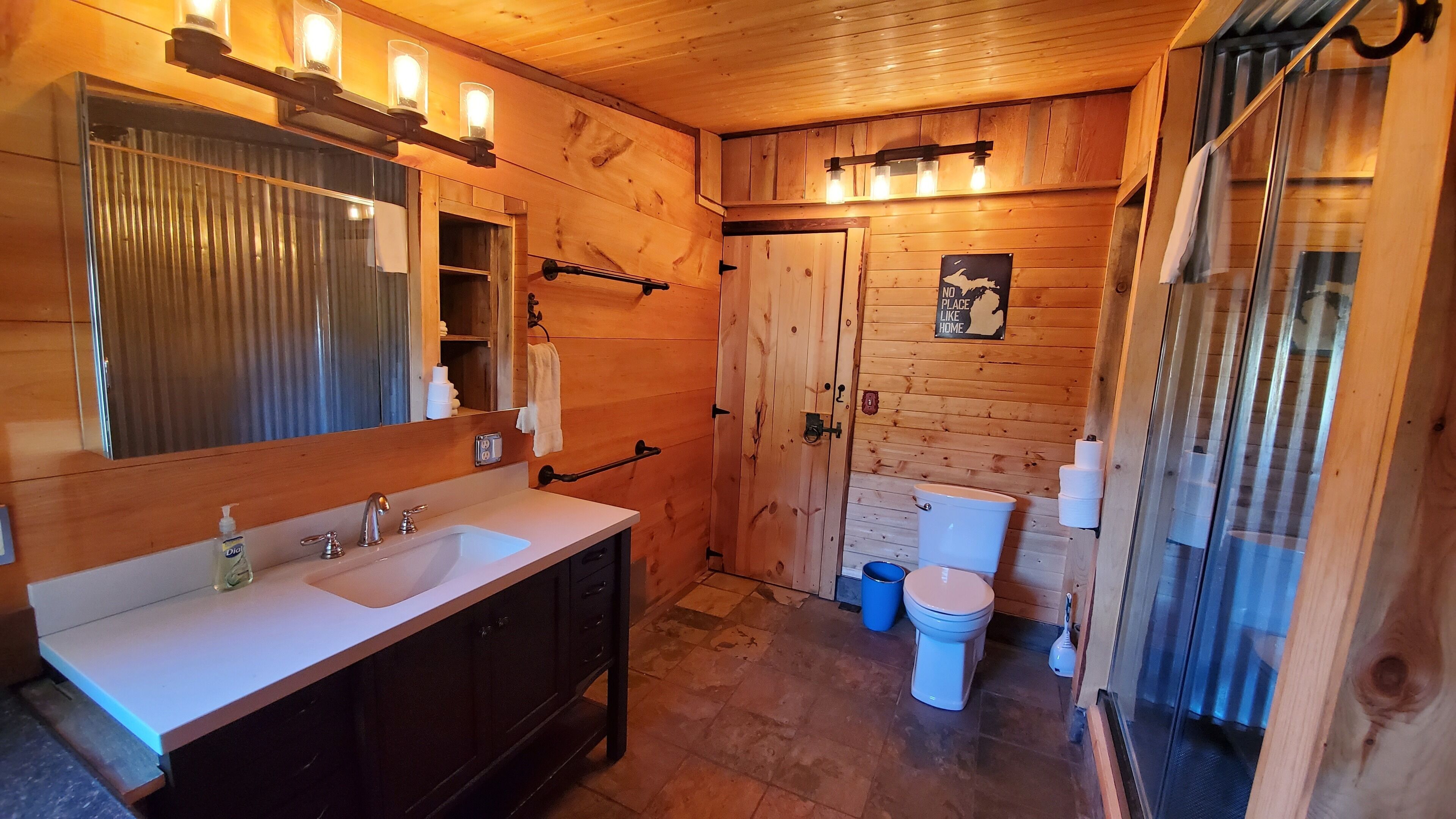 Cabin within sight distance of Lake Superior, Autrain River. Free Kayak rental This Cabin is within a short walking distance of the Beach on Lake Superior and the AuTrain River. Spend some time relaxing on the Beach or swim in the warm water of the River where it empties into the Lake. This location is perfect for a home base of all of the local attractions this area has to offer. Within 15 minutes you are in Munising where you can do the Pictured Rocks cruise, Shipwreck Tour or Kayak tour and many more. Munising is the start of the Pictured Rocks National Lakeshore and there's days worth of activities there and the surrounding area. See over a dozen waterfalls all within 30 minutes from the Cabin. The cabin is done completely in custom woodwork. As you enter, you'll see the homemade barn doors for bedrooms and hallway closets. As you walk past, you will enter the main living area that is all an open concept and all done in custom woodwork. There's locally sourced Hemlock walls and homemade rustic cabinets. The Kitchen is part of the open concept that is perfect for anyone who likes to cook. With a central stove and counter area, the cook can engage with the other group members as they sit around the bar that goes around the kitchen or watch TV while they cook. In the corner of the cabin is a homemade wet bar, (no liquor, SORRY!) The main bathroom is large and has a custom steel shower, the other bathroom is in the back off the laundry room and has a full size tub and shower. In the bedrooms, one has a king, the other has a queen and the 3rd bedroom has a full on bottom and twin on top for sleeping accommodations for 7. All of the 3 bedrooms have smart TV's.Out back is a fenced in yard with a covered patio with table, chairs and flattop grill. Also a fire pit area and chairs for sitting provide the perfect opportunity to enjoy the fire, outdoors, each other and the stars..... For pet owners, there's a pen area with a door to the cabin. We're confident you will enjoy this cabin and the area as we have for years!