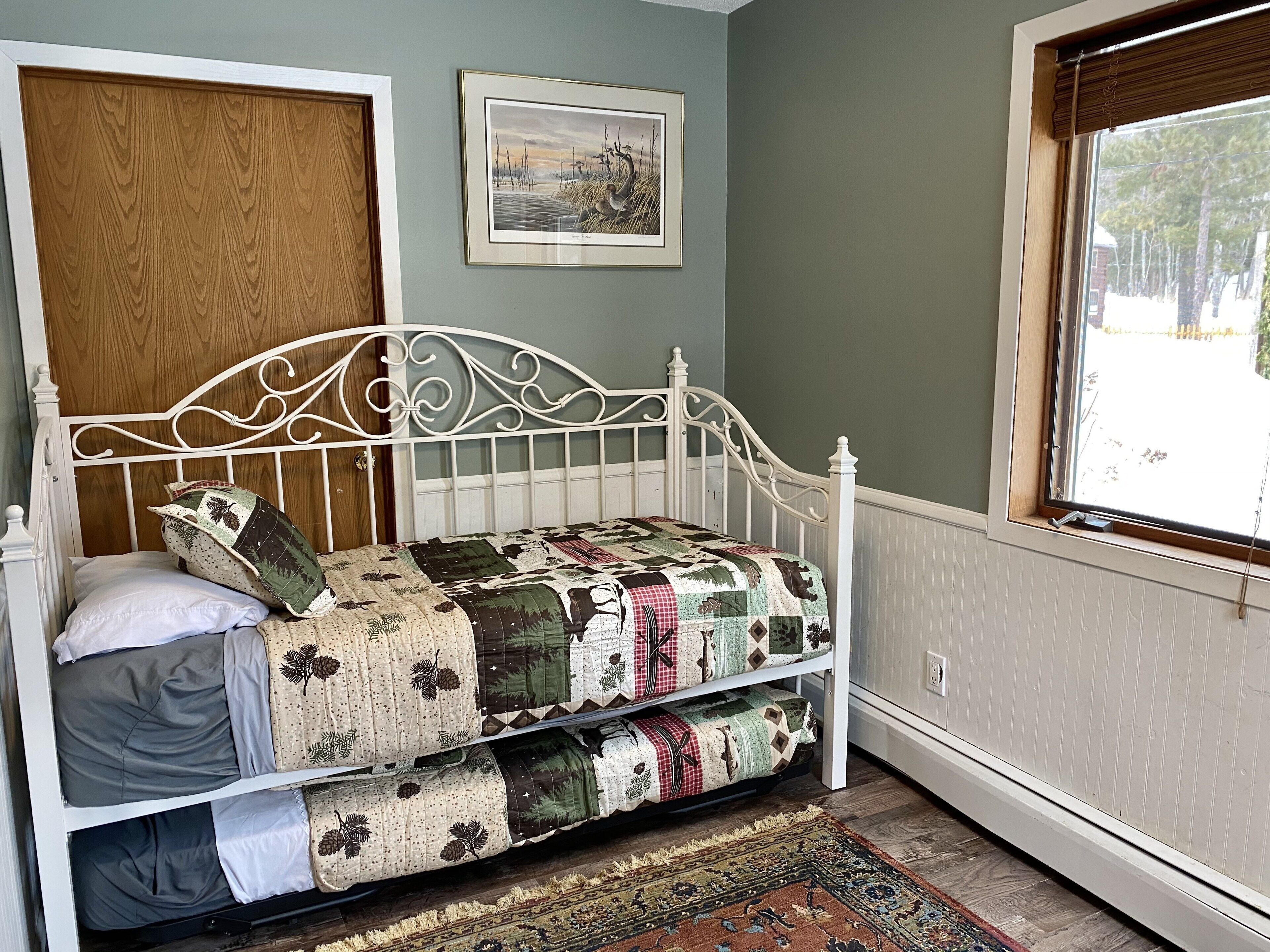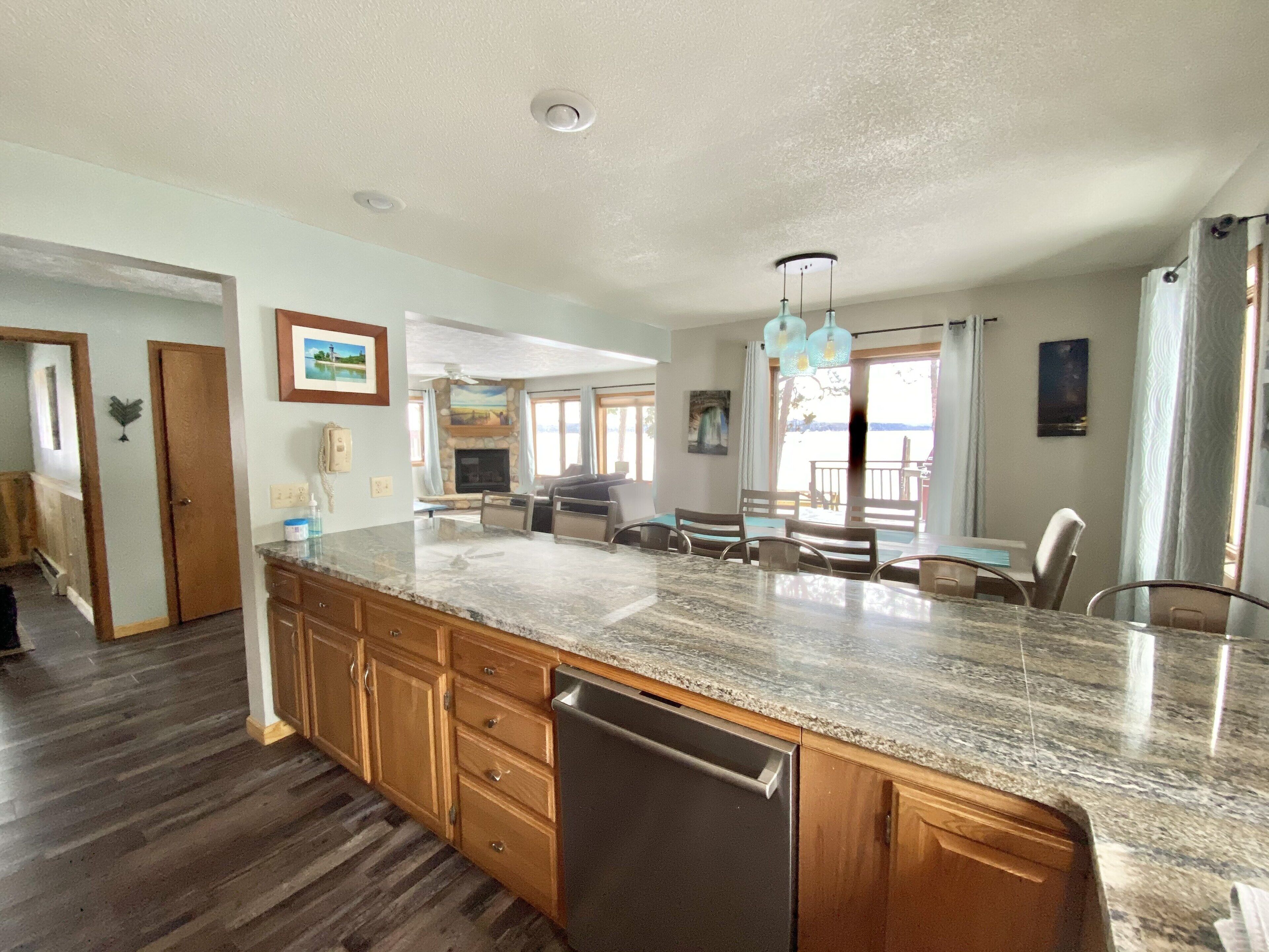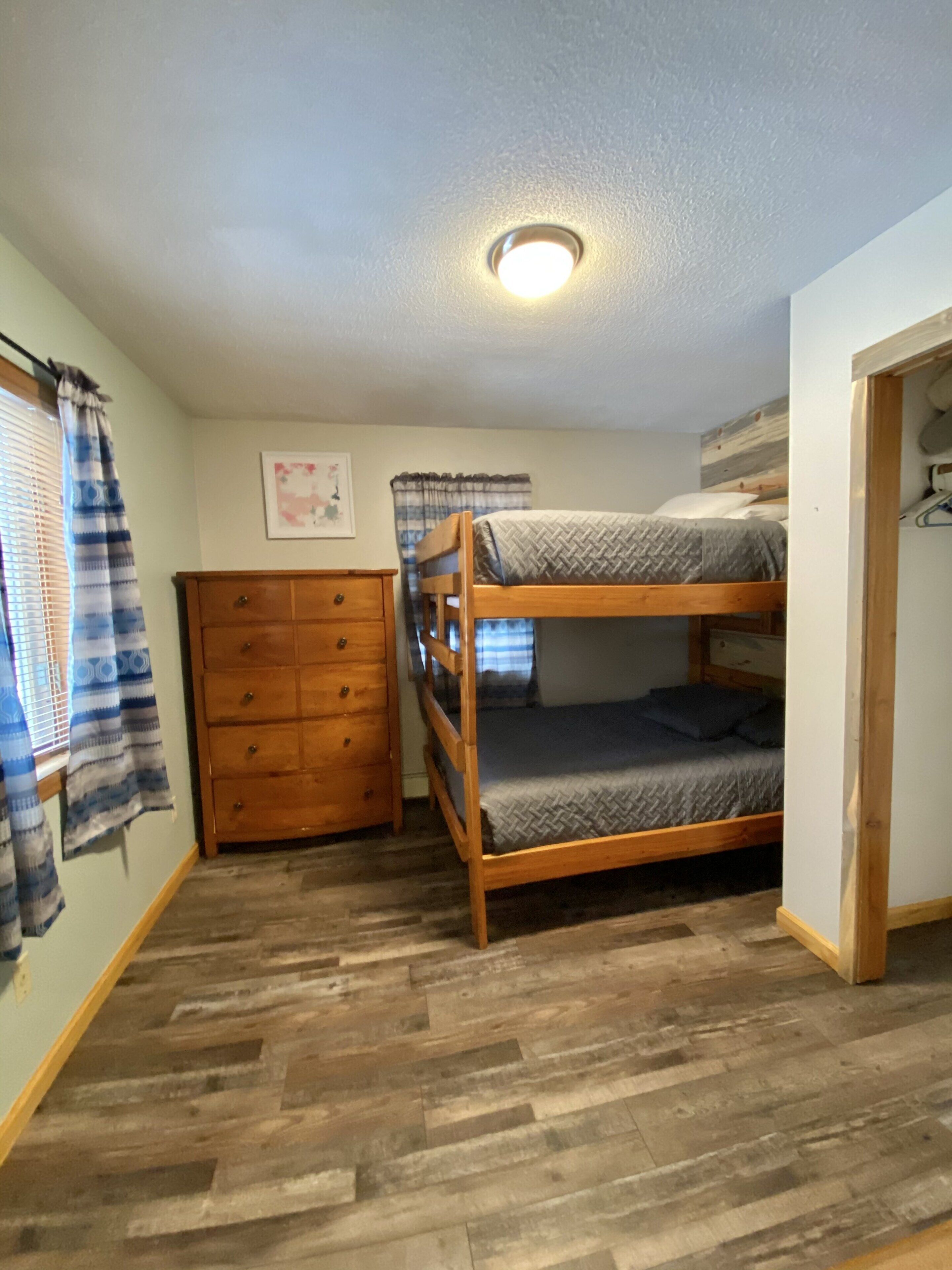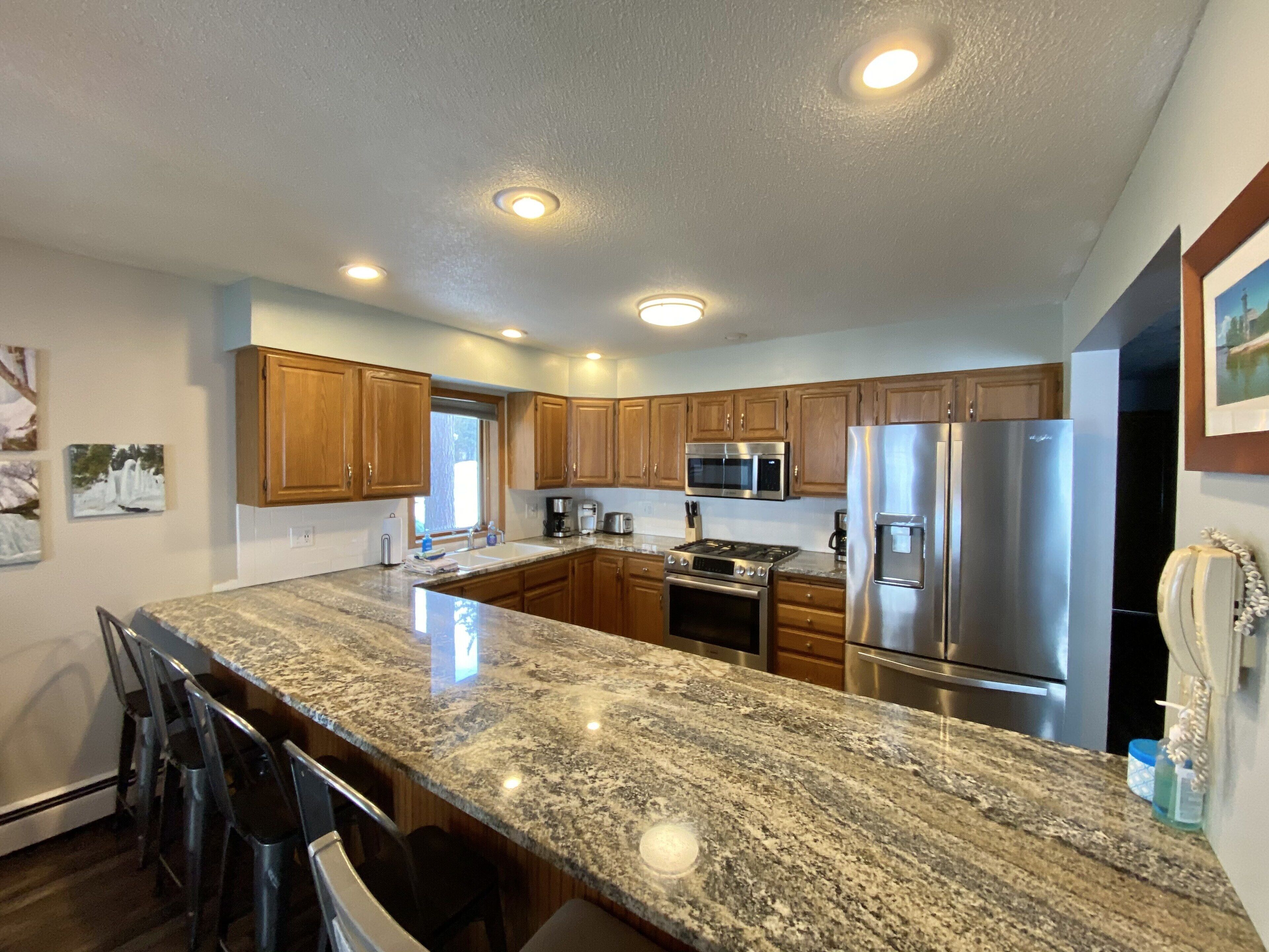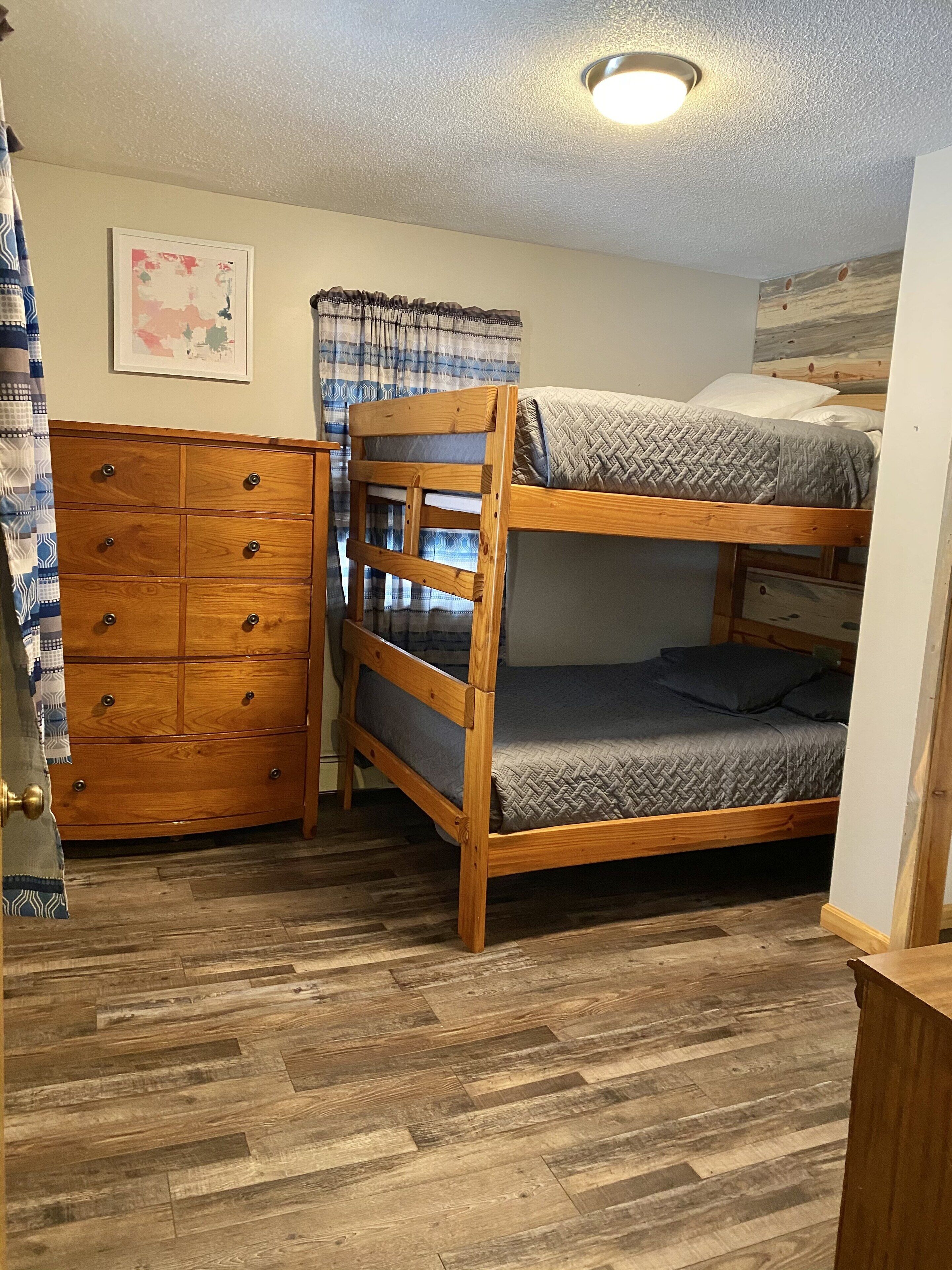 Lodge on AuTrain Lake with gas fireplace! Snowmobile, Ice fish, Even Ice Caves! This 5+ bedroom, 3 bathroom home is located on the sandy North Shore of AuTrain Lake within Northwoods Resort! Private bonfire pit, gas grill, gas fireplace, beach access with boat rentals, swimming, fishing, snowmobiling and more! Cozy up in the living room by the gas fireplace and watch the waves roll in!This is the perfect 4-season destination! Plenty of parking for your snowmobile trailers and direct access to the trails!3 bedrooms and 2 bathrooms are located upstairs. The master has an attached bathroom and a queen bed. The 2nd room has a queen and twin bed. The 3rd bedroom has a King bed with an attached twin Bed in the front room. The downstairs has 2 bedrooms and 1 bathroom with a shower. The 4th room has a double/double bunk bed and the 5th room has a twin/twin trundle bed. Gas fireplace, Bosch duel-fuel range oven, stainless steal appliances and a front deck with seating and gas grill.