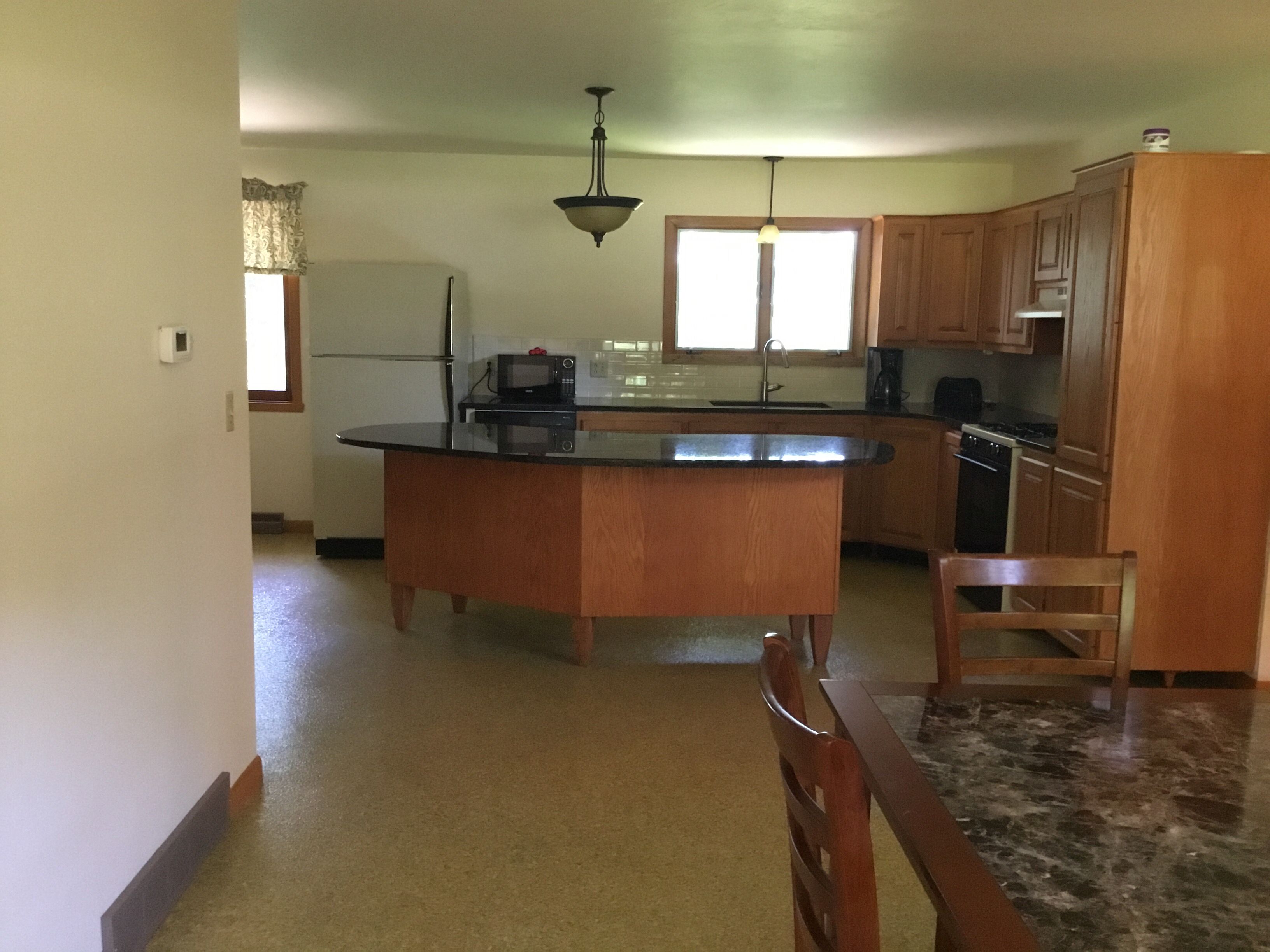 The Gathering Place to Rest,relax and Enjoy Green Lake, Wisconsin KITCHEN Granite counter tops with stainless steel sink Kitchen table, dining room table Fully equipped kitchen with pots, pans, dishes, flatware, serving for 8 Coffee maker: 10 cup Toaster: double slot Stove: gas cook top and oven Microwave Dining: large kitchen table Refrigerator: Full size with f...