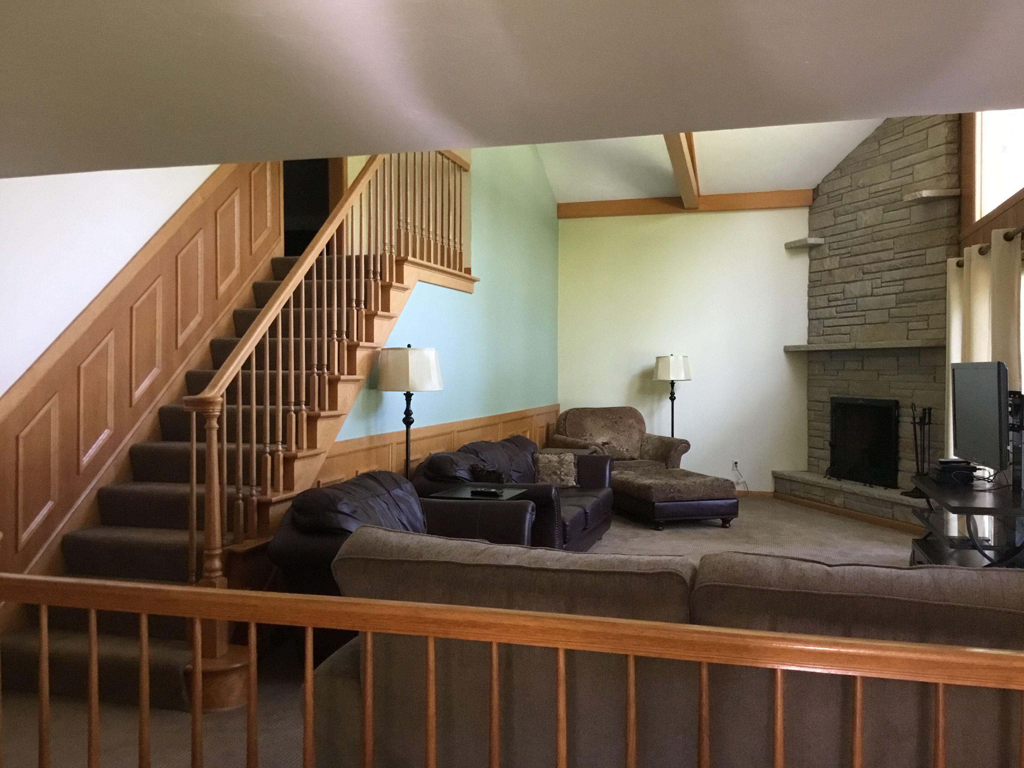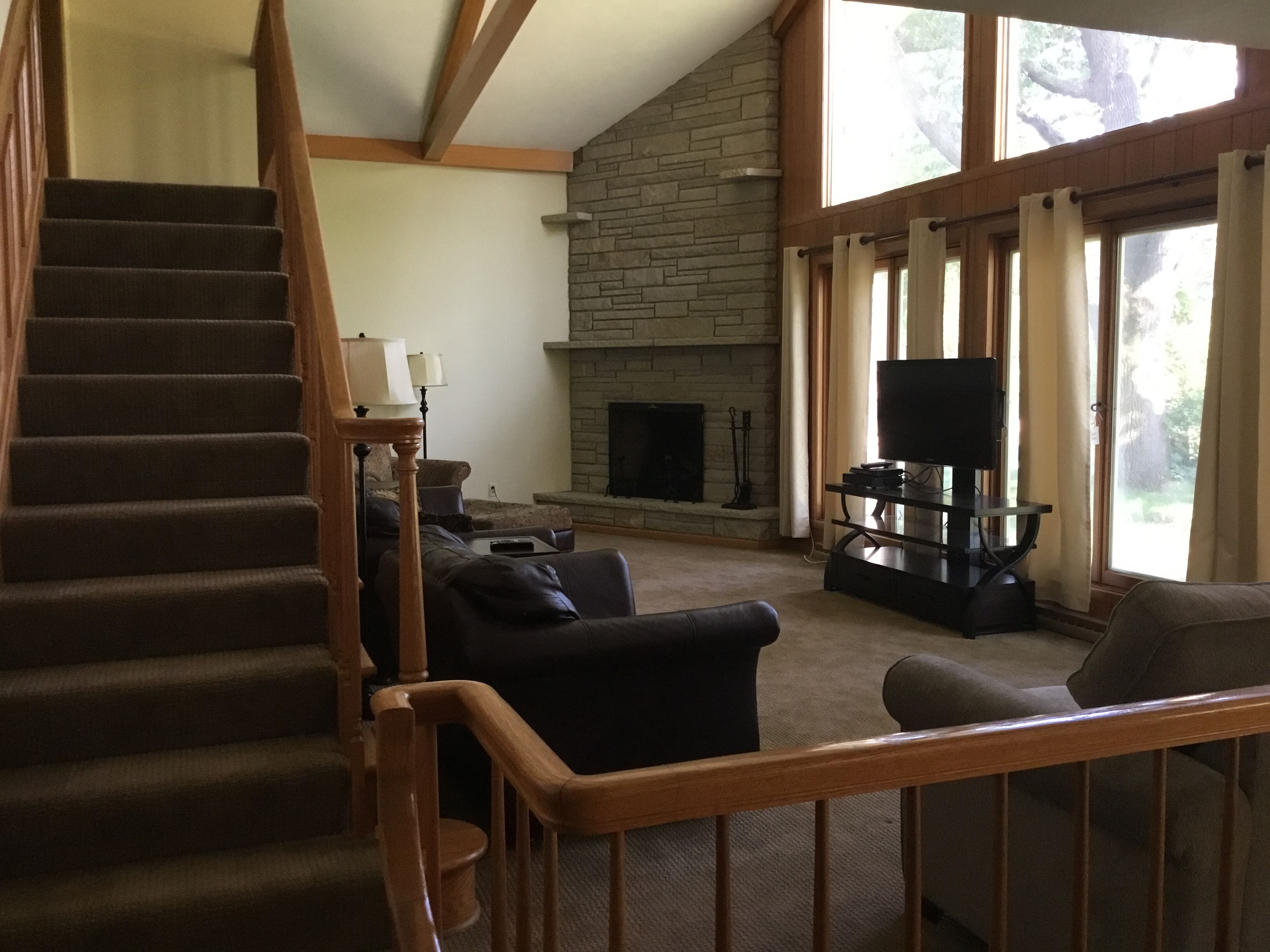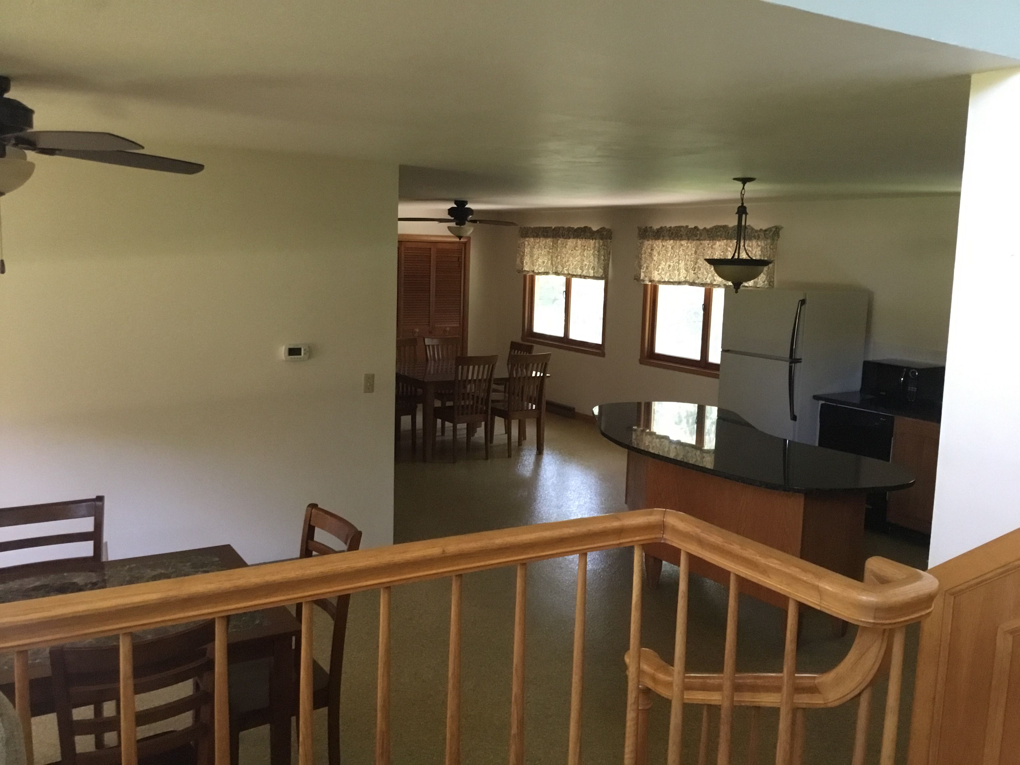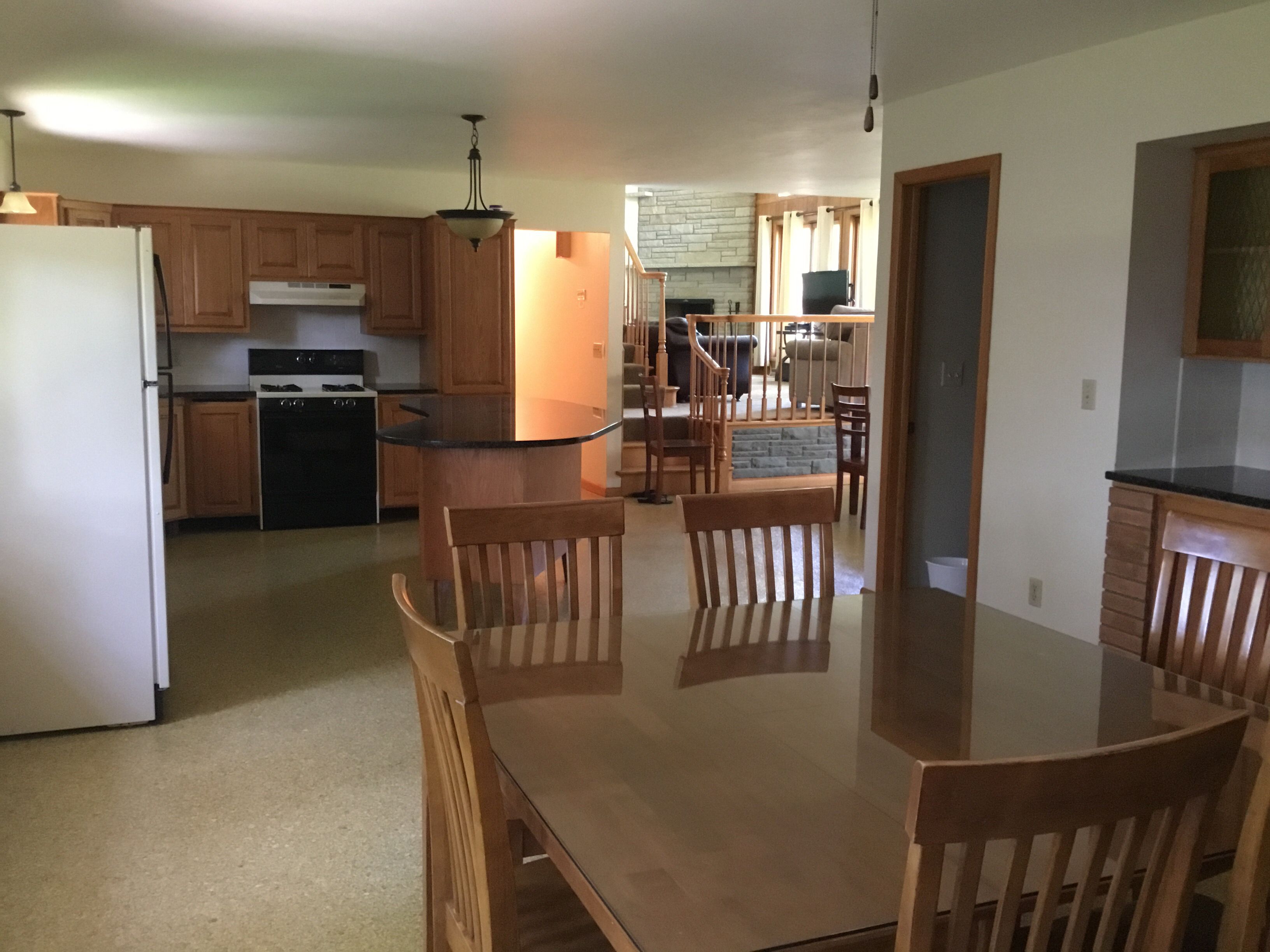 The Gathering Place to Rest,relax and Enjoy Green Lake, Wisconsin KITCHEN Granite counter tops with stainless steel sink Kitchen table, dining room table Fully equipped kitchen with pots, pans, dishes, flatware, serving for 8 Coffee maker: 10 cup Toaster: double slot Stove: gas cook top and oven Microwave Dining: large kitchen table Refrigerator: Full size with freezer on topAmenities Living Room: leather couch with 2 large chairs Television with cable, Netflix Fireplace: large beautiful stone wood burning fireplace Bedrooms 2 bedrooms with two twin beds - second floor 2 bedrooms with queen beds - main floor Sheets provided Bathroom towels provided Heating: Central air and Central heat Washer/Dryer unit Communications Free WiFi Cable television Netflix Parking Large circular driveway for boats, cars, and other recreational vehicles Activities Public walking/hiking land across the street from the property Heidel House Resort, Spa and Restaurant 3/4 miles Tuscumbia Golf course with fabulous restaurant approxiamately 1/2 mile from the property Green Lake County Fair Downtown Green Lake Green Lake Art Fair Green Lake Festival of Music Green Lake Chili Cook Off Green Lake 13.1 Running Race Lawsonia Golf Course 5.7 miles Green Lake boat launch one block away County A Park and boat launch 1/2 mile away Downtown Green Lake with Free Public Beach, Library, Restaurants, Bait Store, Thrasher Opera House, VFW Grocery Store in Green Lake: Crossroads Market Grocery Store with Pharmacy and meat market: 1 mile Ripon: 6 miles Walgreens, KMart, Pick and Save, Ace Hardware, Ripon College Berlin: 11 mile Mascoutin golf course, Walmart, Berlin Hospital Princeton: 11.5 miles Princeton Flea Market and antiquesOshkosh: 27 miles EAA AirVenture Oshkosh Oshkosh Outlet MallRipon Hospital 7 miles Medical clinics 3 and 5 miles away