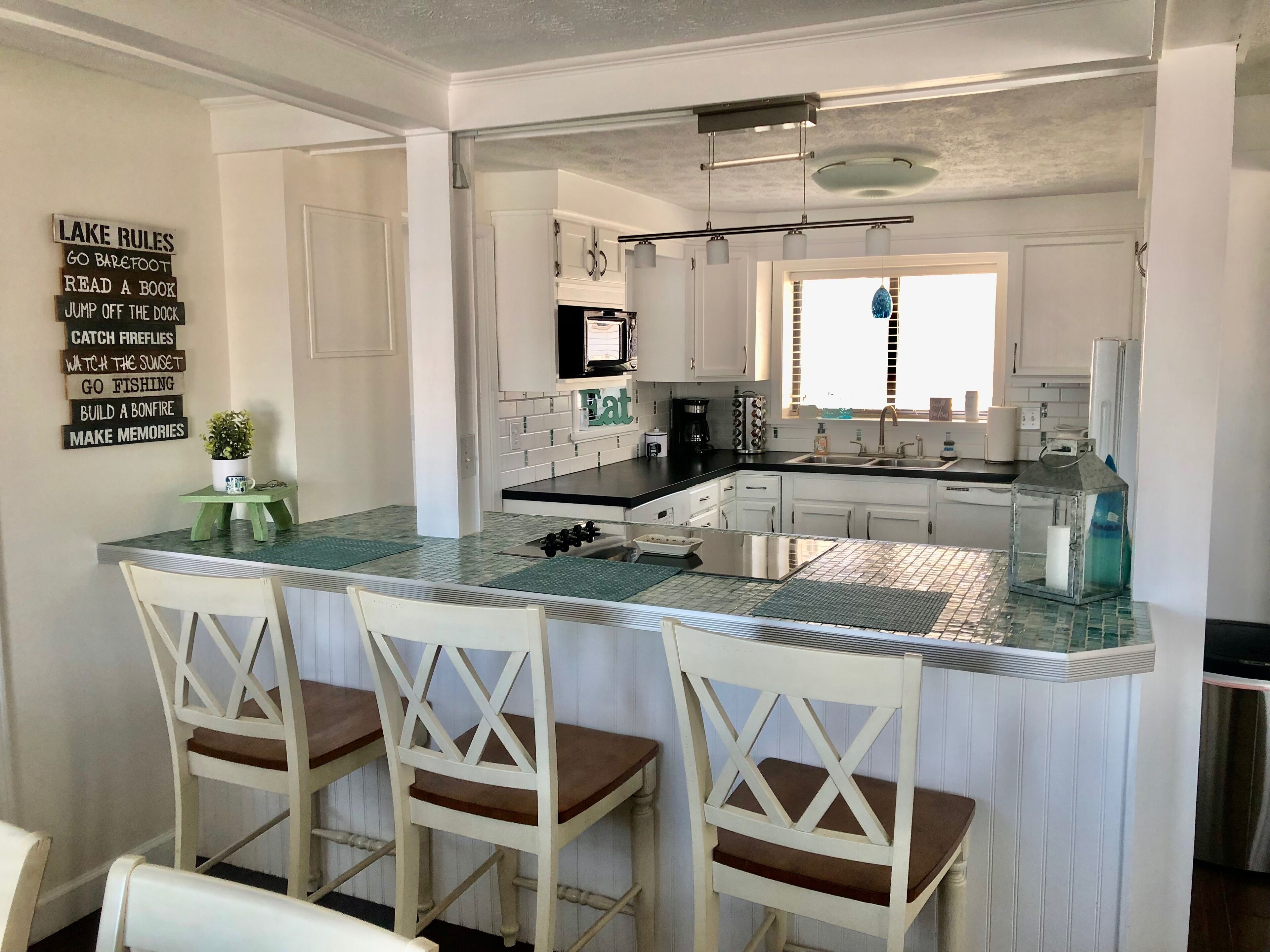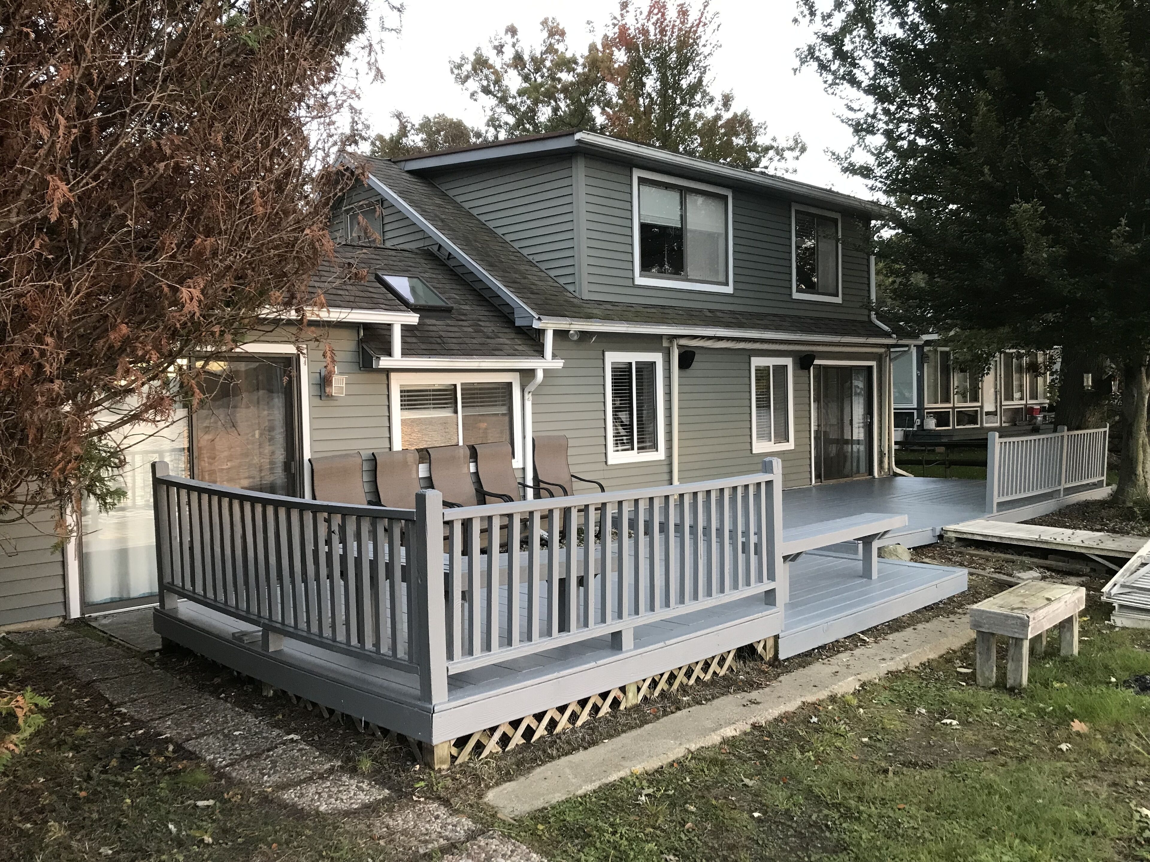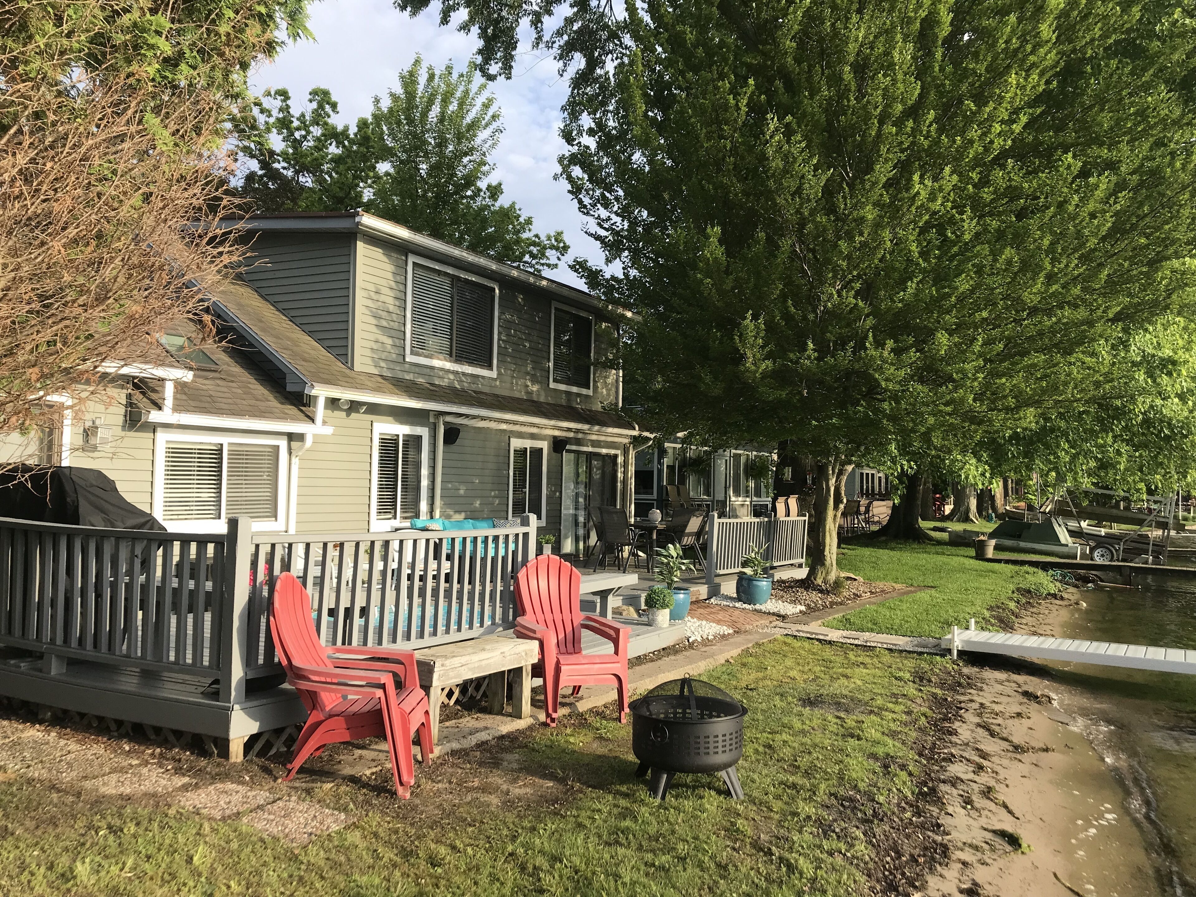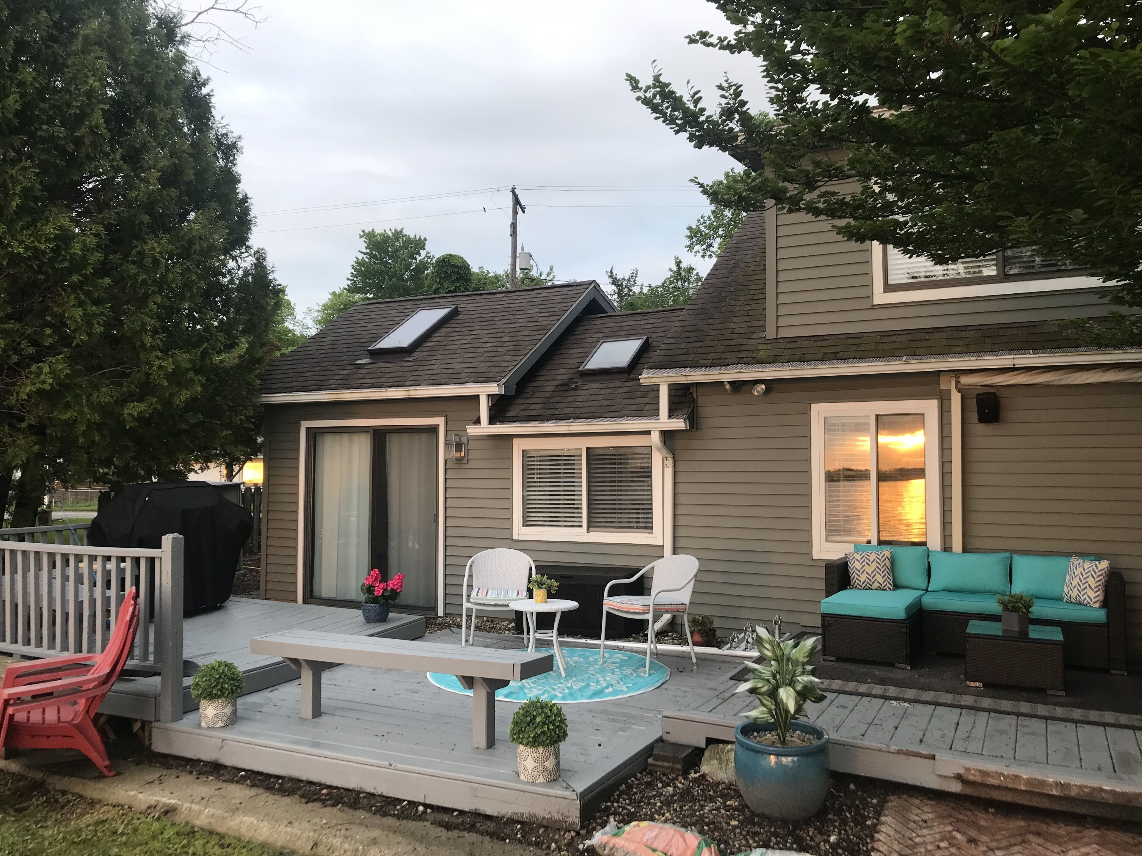 "Gun-A-Love IT!" Lakefront getaway / retreat on Gun Lake Welcome to our beautifully renovated home that offers 60ft of private frontage on all-sports Gun Lake at the south end in the quiet, Anchor Cove. Inside you will find an open concept floor plan that is excellent for entertaining, relaxing, and living those great family memories. The kitchen opens up to the family room and the stove faces the lake so you can enjoy the views while cooking. French doors lead to the vaulted ceiling master bedroom with a slider out to the deck.There are two spacious bedrooms on the upper level. The first has a double bed while the second has two sets of twin bunk beds. Both also have great views of the lake. The expansive three level wood deck overlooks the lake and runs the full length of the house with nice built-in bench seats so that you can fully soak in the spectacular evening sunsets. The water is shallow close to shore and offers a sand bottom that is excellent for kids of all ages to swim and relax. There are two single person kayaks with life jackets that you can use to venture out on your own. The 100’ long dock offers a 10’ x 8’ sunning platform that reaches out to deeper water so you can dock your own boat or rent one from several places around the lake.This is a home with real neighbors who live here year round, so please be respectful of them. Parking is limited to three spaces so plan accordingly.The excellent location is close to Gun Lake Casino, Yankee Springs State Park with its expansive sandy beaches and inflatable water slide, Golf Courses, Gilmore Car Museum and the Bay Pointe Inn, which is just across the cove. We are less than one mile from the Barry County state hunting land for those looking for a fall hunting retreat. Don’t miss out on what could be your best family vacation yet. Email or call today to reserve your spot. We know your Gun-A-Love IT!