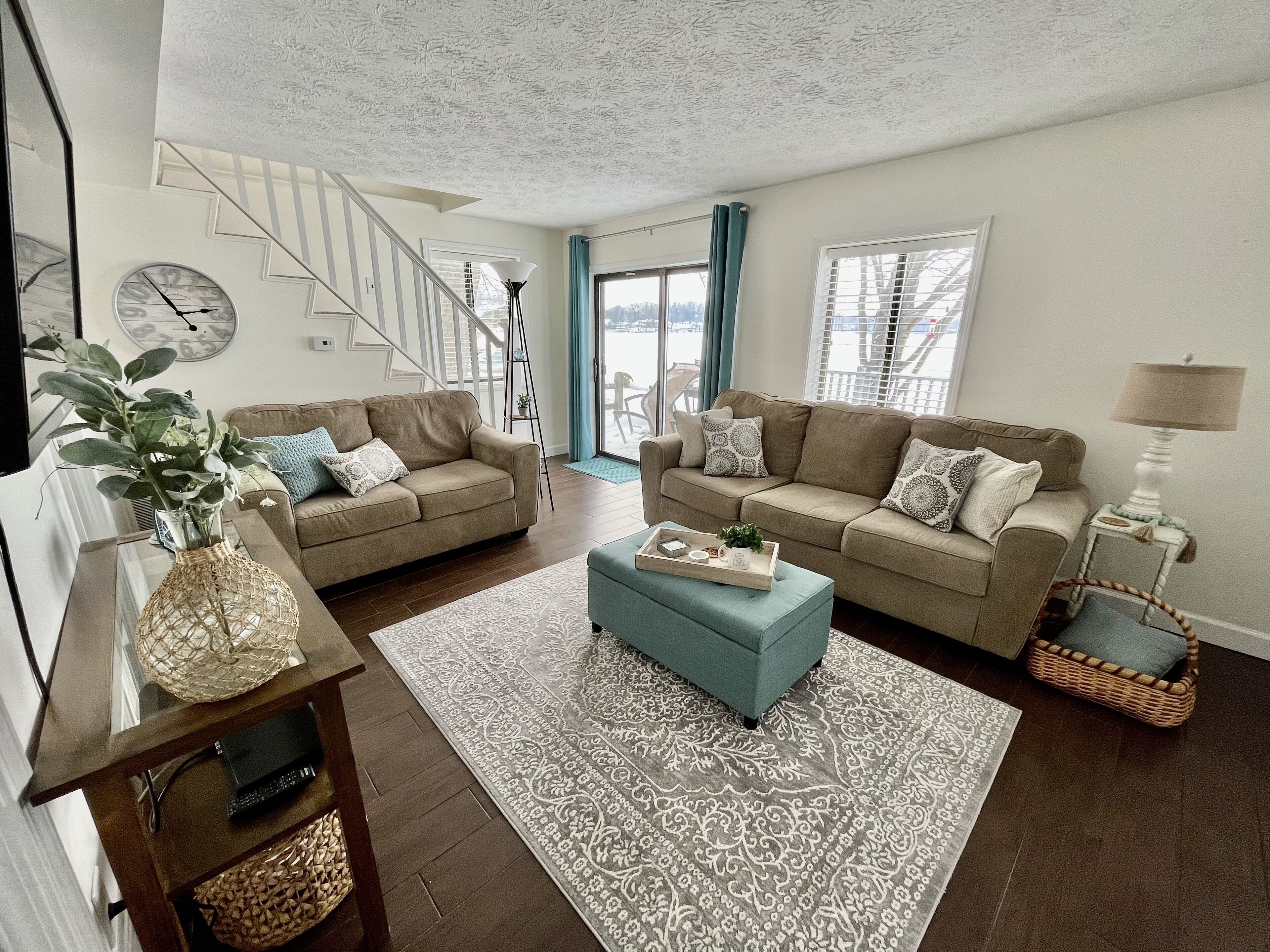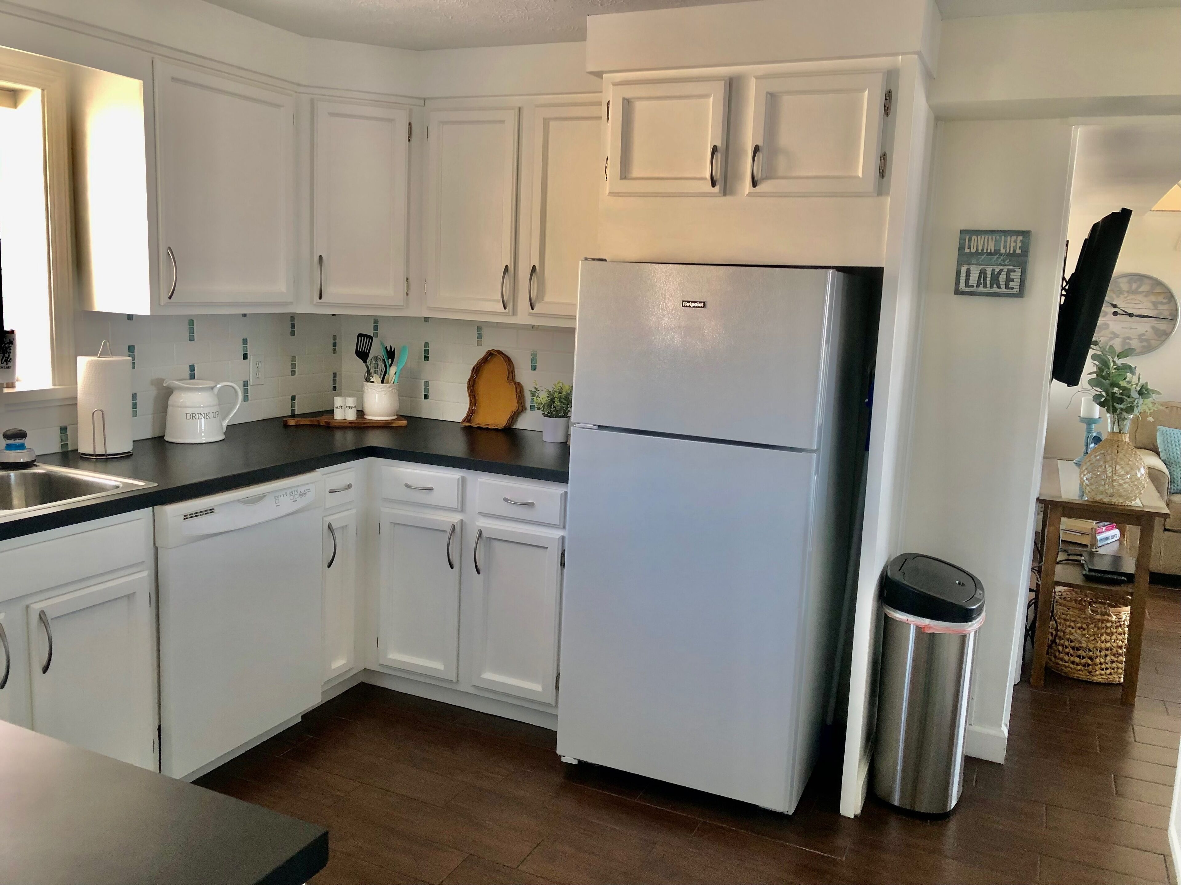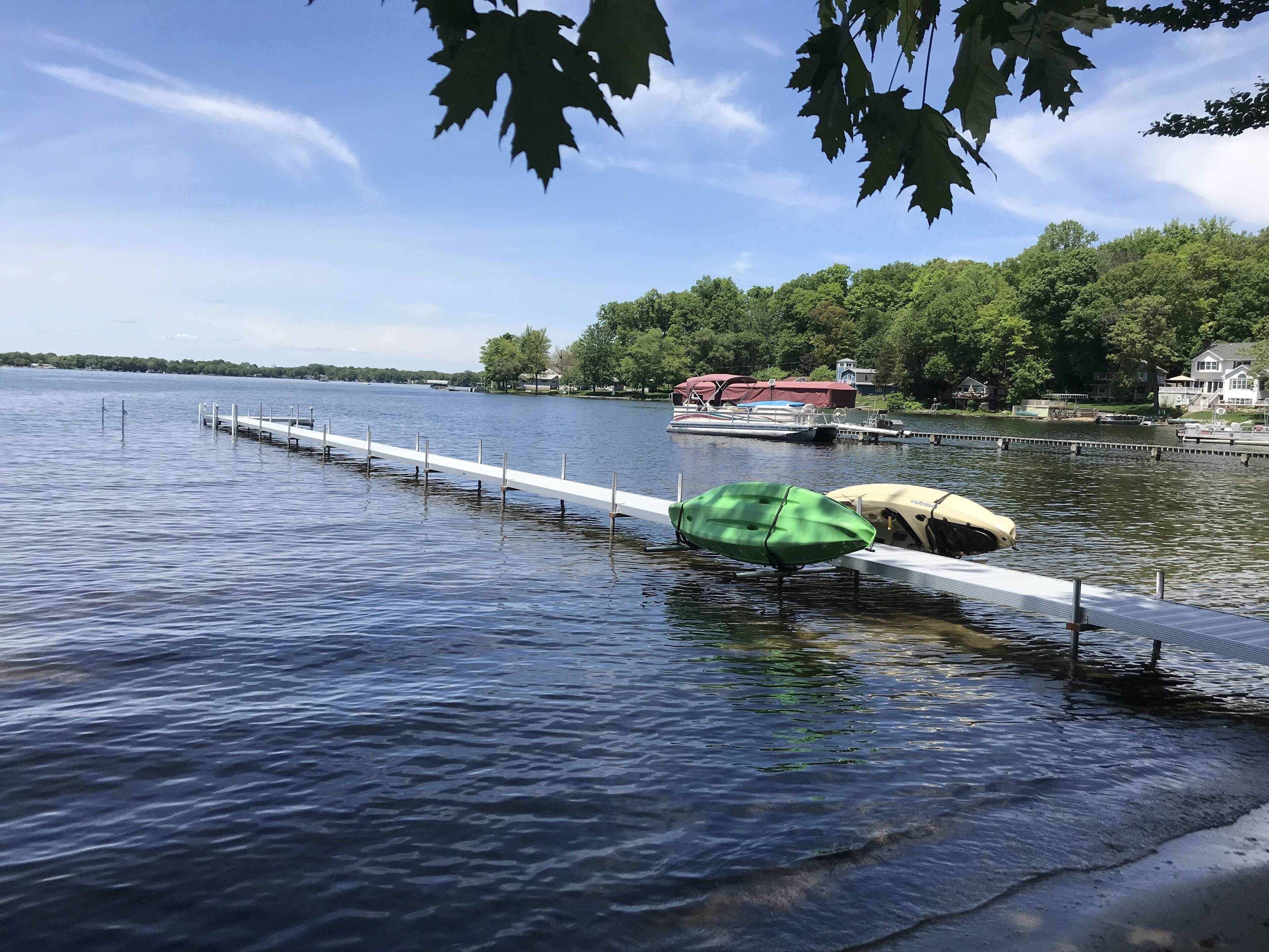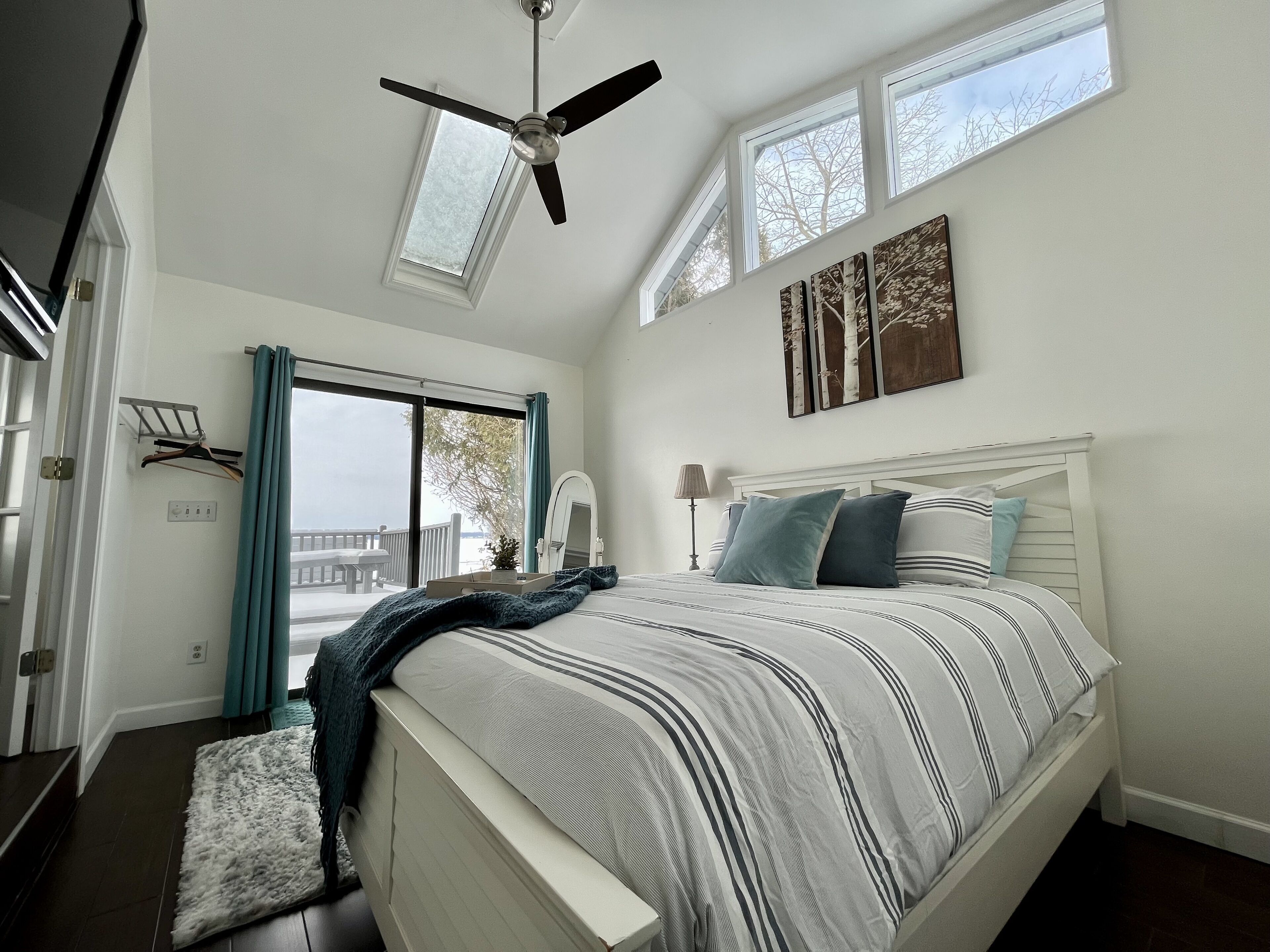 "Gun-A-Love IT!" Lakefront getaway / retreat on Gun Lake Welcome to our beautifully renovated home that offers 60ft of private frontage on all-sports Gun Lake at the south end in the quiet, Anchor Cove. Inside you will find an open concept floor plan that is excellent for entertaining, relaxing, and living those great family memories. The kitchen opens up to the family room and the stove faces the lake so you can enjoy the views while cooking. French doors lead to the vaulted ceiling master bedroom with a slider out to the deck.There are two spacious bedrooms on the upper level. The first has a double bed while the second has two sets of twin bunk beds. Both also have great views of the lake. The expansive three level wood deck overlooks the lake and runs the full length of the house with nice built-in bench seats so that you can fully soak in the spectacular evening sunsets. The water is shallow close to shore and offers a sand bottom that is excellent for kids of all ages to swim and relax. There are two single person kayaks with life jackets that you can use to venture out on your own. The 100’ long dock offers a 10’ x 8’ sunning platform that reaches out to deeper water so you can dock your own boat or rent one from several places around the lake.This is a home with real neighbors who live here year round, so please be respectful of them. Parking is limited to three spaces so plan accordingly.The excellent location is close to Gun Lake Casino, Yankee Springs State Park with its expansive sandy beaches and inflatable water slide, Golf Courses, Gilmore Car Museum and the Bay Pointe Inn, which is just across the cove. We are less than one mile from the Barry County state hunting land for those looking for a fall hunting retreat. Don’t miss out on what could be your best family vacation yet. Email or call today to reserve your spot. We know your Gun-A-Love IT!