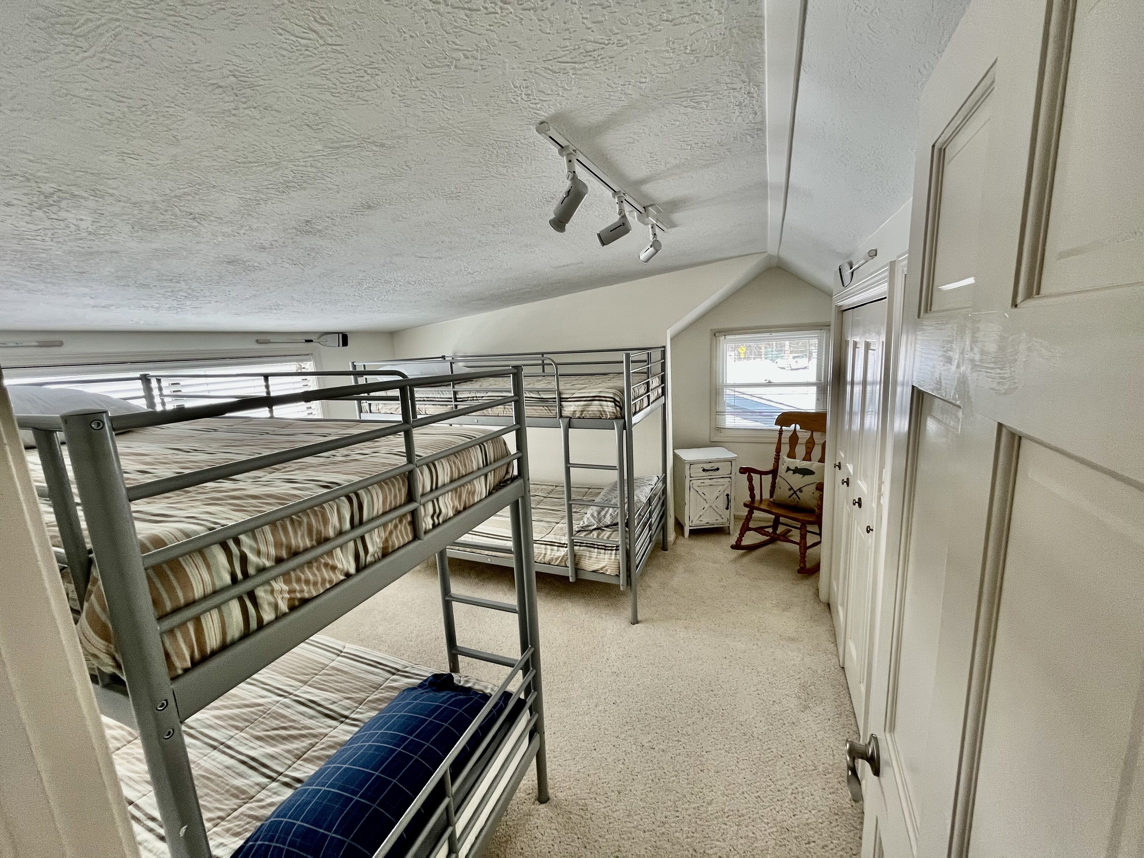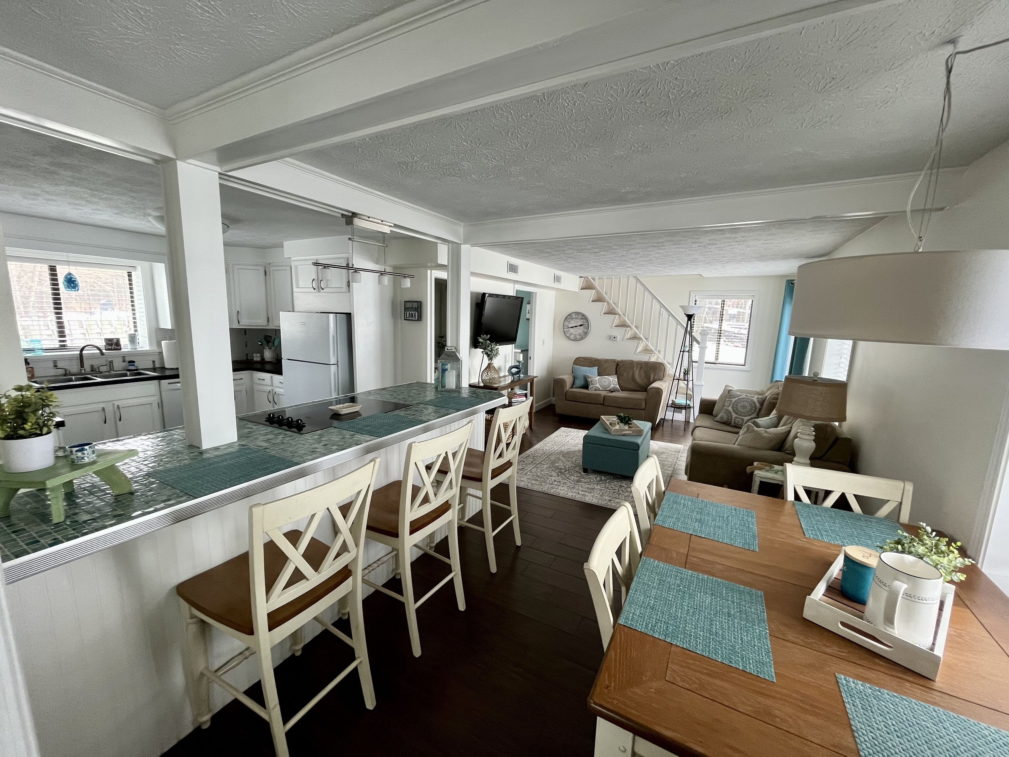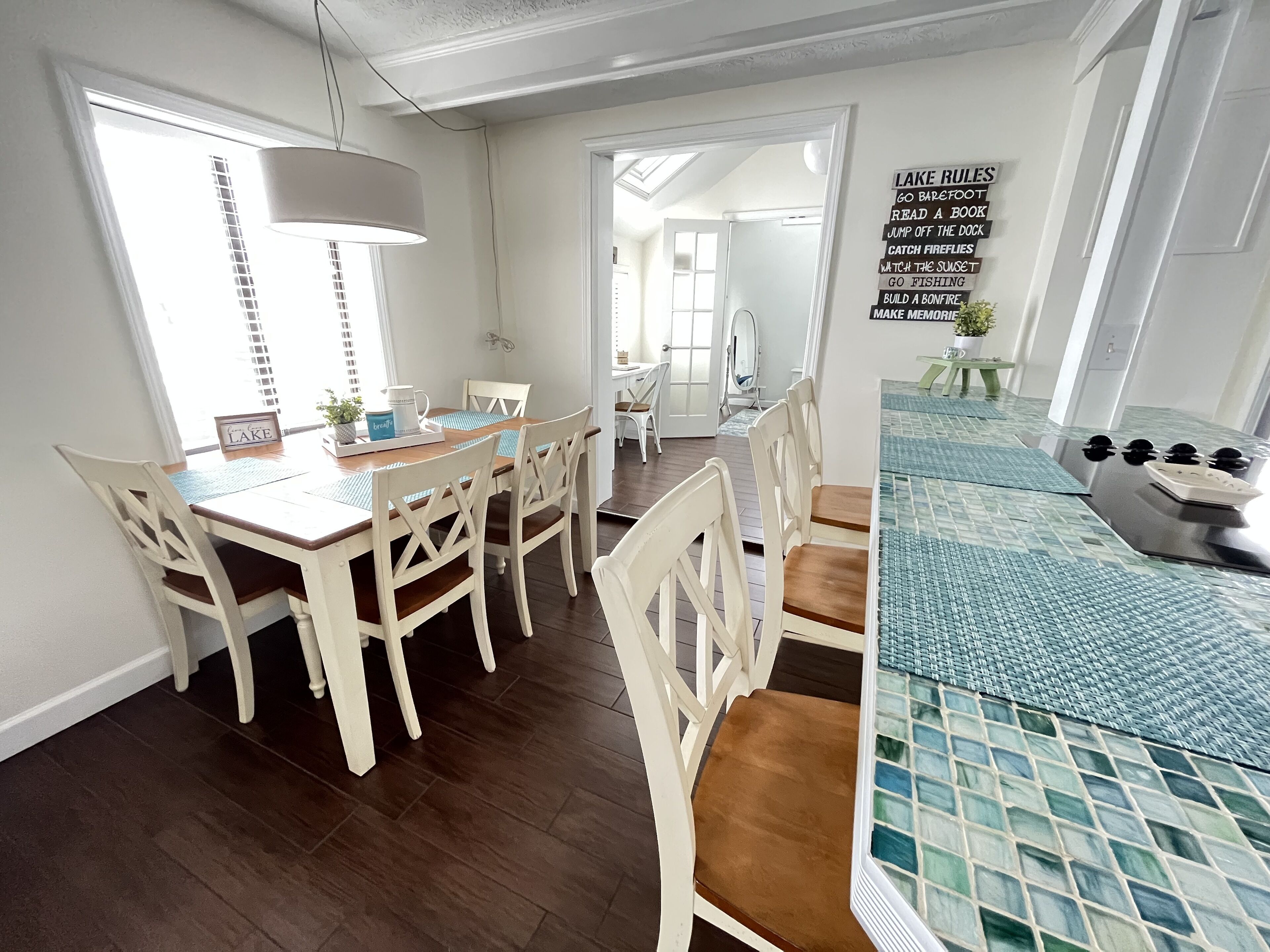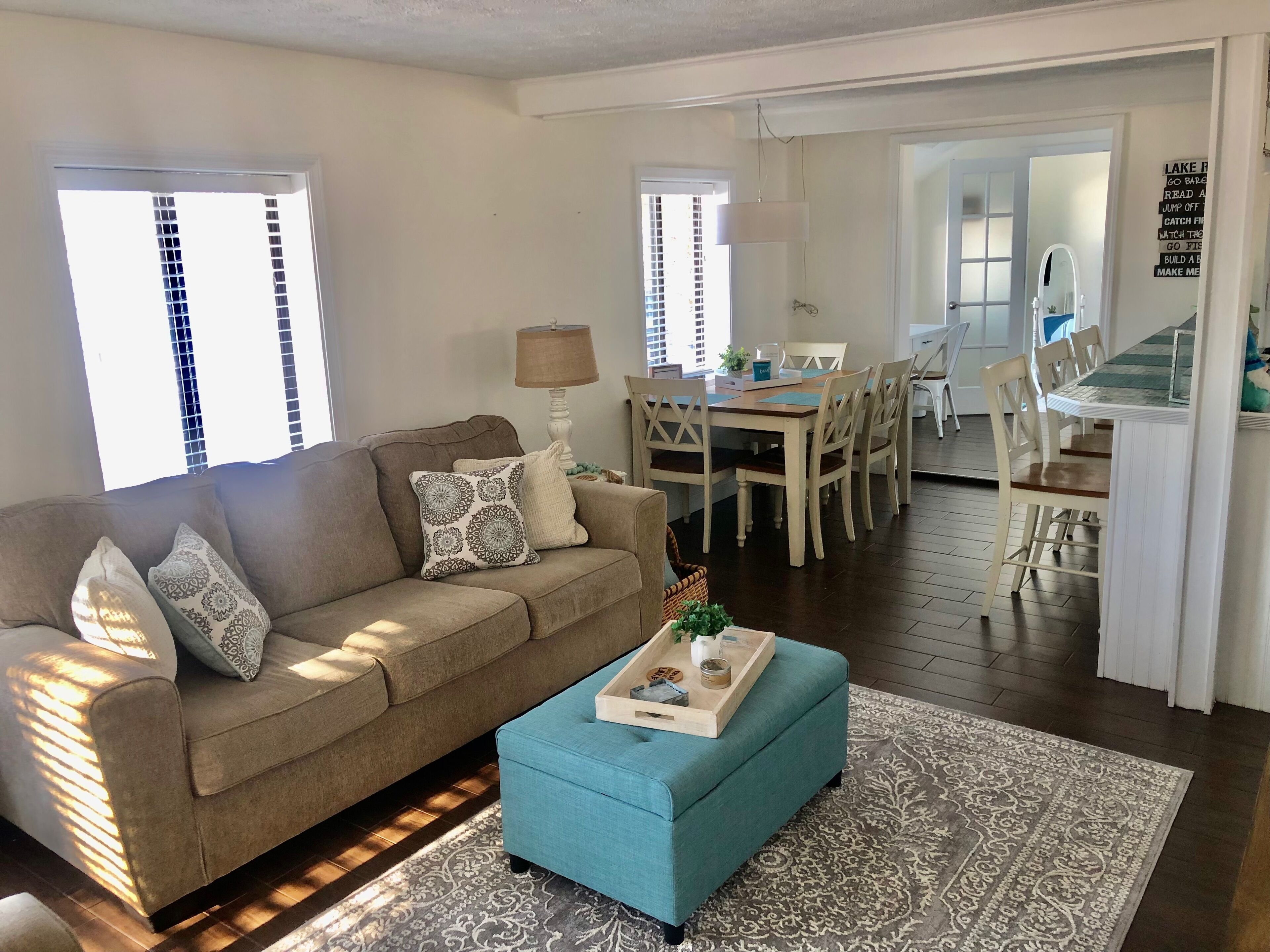 "Gun-A-Love IT!" Lakefront getaway / retreat on Gun Lake Welcome to our beautifully renovated home that offers 60ft of private frontage on all-sports Gun Lake at the south end in the quiet, Anchor Cove. Inside you will find an open concept floor plan that is excellent for entertaining, relaxing, and living those great family memories. The kitchen opens up to the family room and the stove faces the lake so you can enjoy the views while cooking. French doors lead to the vaulted ceiling master bedroom with a slider out to the deck.There are two spacious bedrooms on the upper level. The first has a double bed while the second has two sets of twin bunk beds. Both also have great views of the lake. The expansive three level wood deck overlooks the lake and runs the full length of the house with nice built-in bench seats so that you can fully soak in the spectacular evening sunsets. The water is shallow close to shore and offers a sand bottom that is excellent for kids of all ages to swim and relax. There are two single person kayaks with life jackets that you can use to venture out on your own. The 100’ long dock offers a 10’ x 8’ sunning platform that reaches out to deeper water so you can dock your own boat or rent one from several places around the lake.This is a home with real neighbors who live here year round, so please be respectful of them. Parking is limited to three spaces so plan accordingly.The excellent location is close to Gun Lake Casino, Yankee Springs State Park with its expansive sandy beaches and inflatable water slide, Golf Courses, Gilmore Car Museum and the Bay Pointe Inn, which is just across the cove. We are less than one mile from the Barry County state hunting land for those looking for a fall hunting retreat. Don’t miss out on what could be your best family vacation yet. Email or call today to reserve your spot. We know your Gun-A-Love IT!