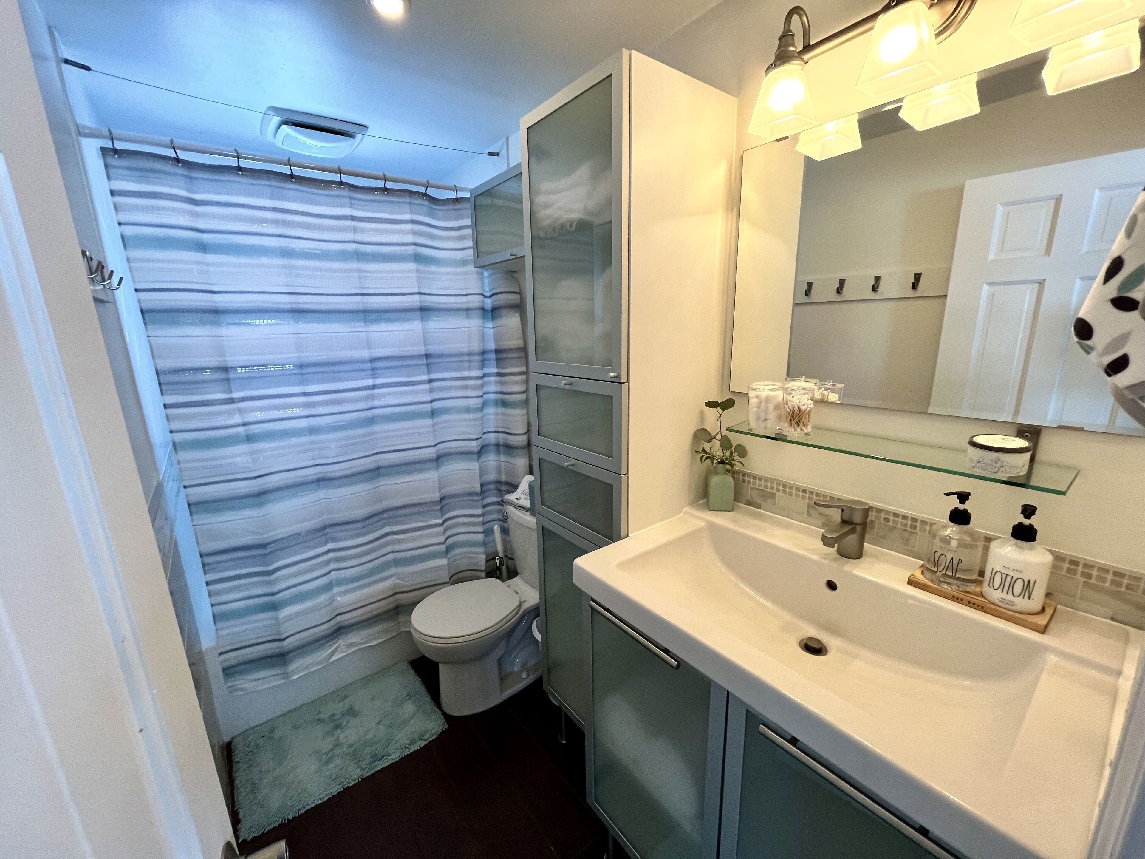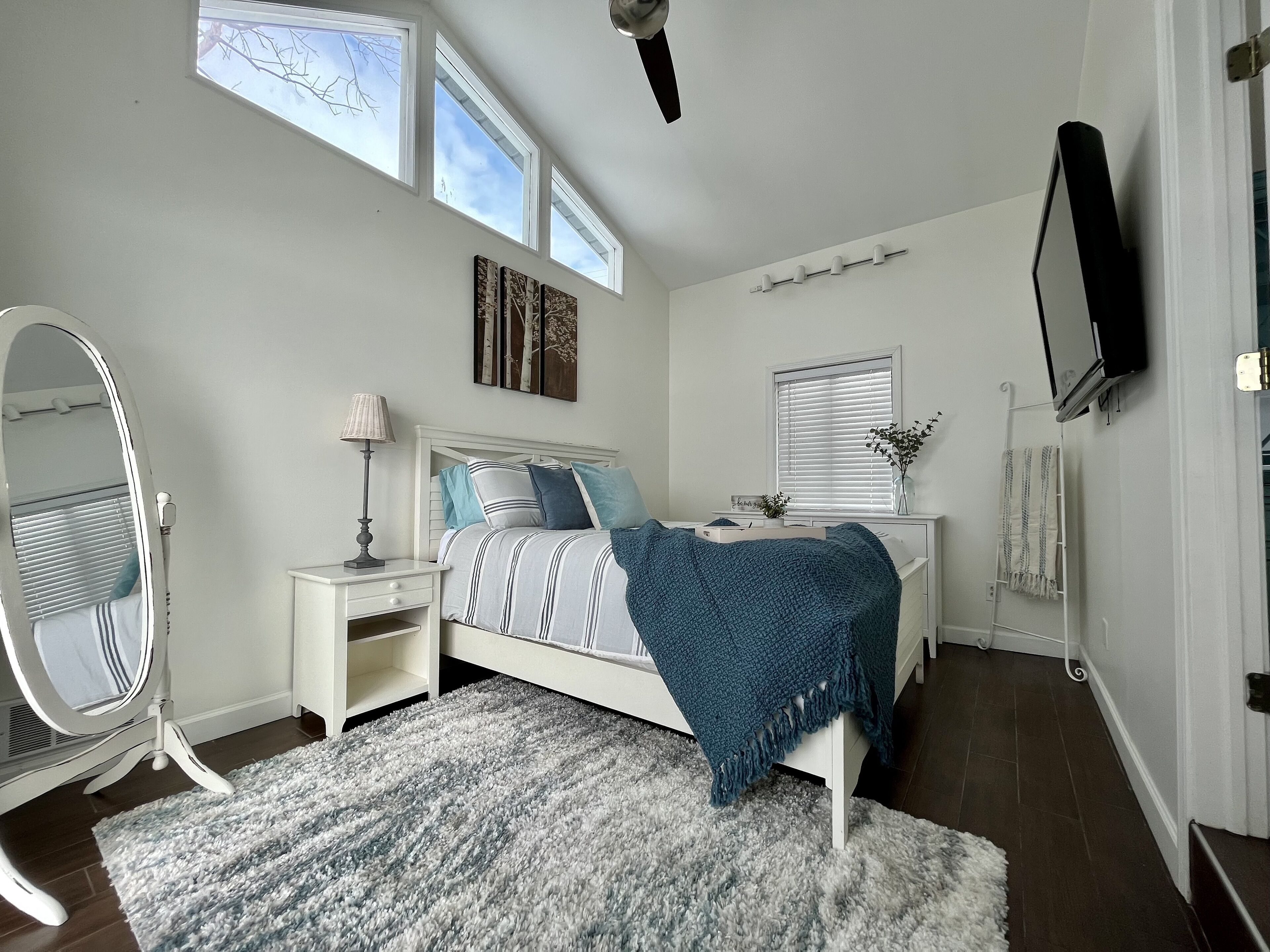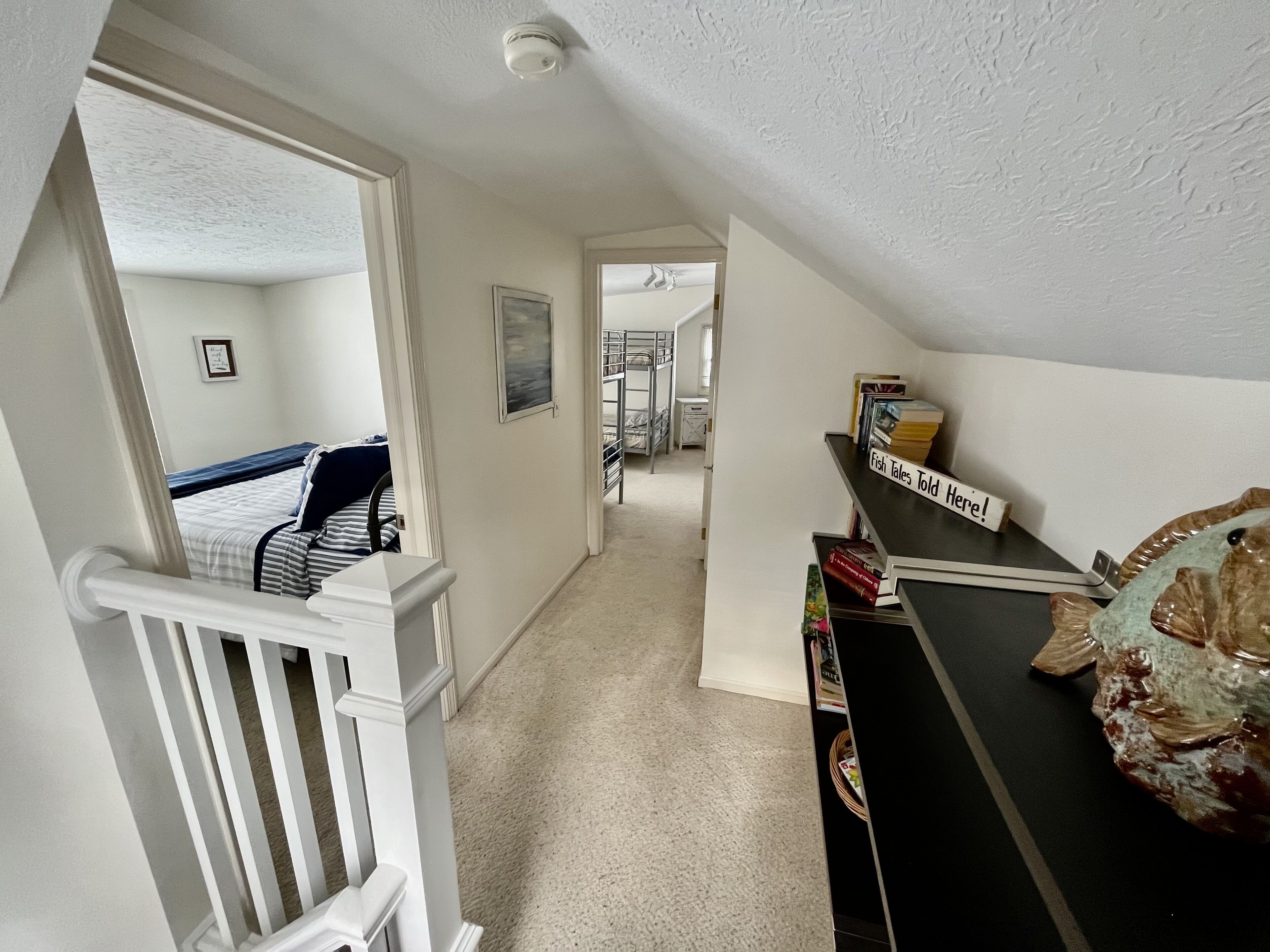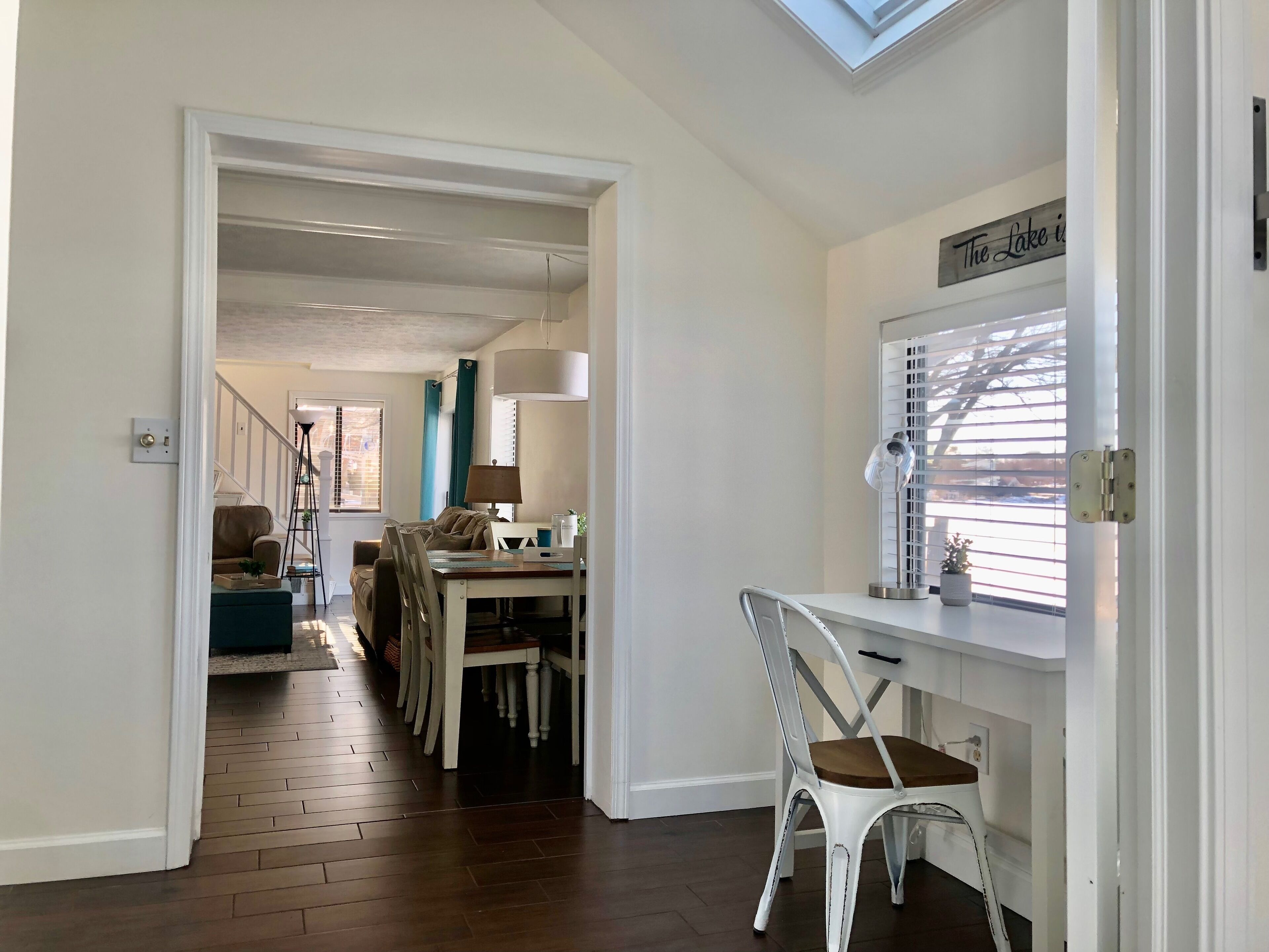 "Gun-A-Love IT!" Lakefront getaway / retreat on Gun Lake Welcome to our beautifully renovated home that offers 60ft of private frontage on all-sports Gun Lake at the south end in the quiet, Anchor Cove. Inside you will find an open concept floor plan that is excellent for entertaining, relaxing, and living those great family memories. The kitchen opens up to the family room and the stove faces the lake so you can enjoy the views while cooking. French doors lead to the vaulted ceiling master bedroom with a slider out to the deck.There are two spacious bedrooms on the upper level. The first has a double bed while the second has two sets of twin bunk beds. Both also have great views of the lake. The expansive three level wood deck overlooks the lake and runs the full length of the house with nice built-in bench seats so that you can fully soak in the spectacular evening sunsets. The water is shallow close to shore and offers a sand bottom that is excellent for kids of all ages to swim and relax. There are two single person kayaks with life jackets that you can use to venture out on your own. The 100’ long dock offers a 10’ x 8’ sunning platform that reaches out to deeper water so you can dock your own boat or rent one from several places around the lake.This is a home with real neighbors who live here year round, so please be respectful of them. Parking is limited to three spaces so plan accordingly.The excellent location is close to Gun Lake Casino, Yankee Springs State Park with its expansive sandy beaches and inflatable water slide, Golf Courses, Gilmore Car Museum and the Bay Pointe Inn, which is just across the cove. We are less than one mile from the Barry County state hunting land for those looking for a fall hunting retreat. Don’t miss out on what could be your best family vacation yet. Email or call today to reserve your spot. We know your Gun-A-Love IT!