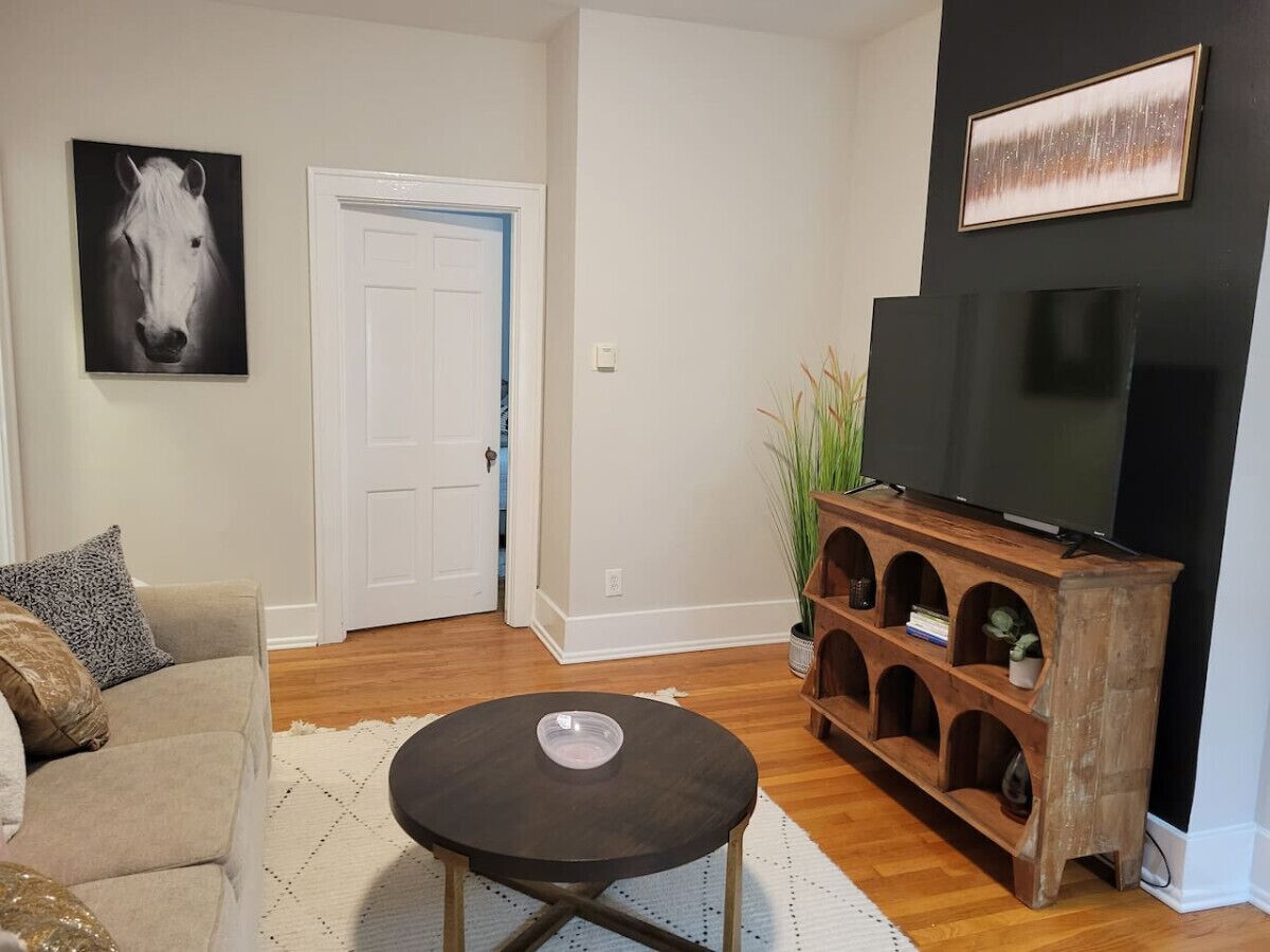 Downtown Main Street One-Bedroom Suite w/ Hi-Speed Wifi Stay @ The Stables Suite, your home away from home in the heart of the city. Our cozy 1 bedroom suite offers everything you need for a comfortable and convenient stay. With a kitchen, full bathroom, spacious living room, and a comfortable queen-size bed in the bedroom, you will have all the comforts of home at your disposal. Whether you're he...