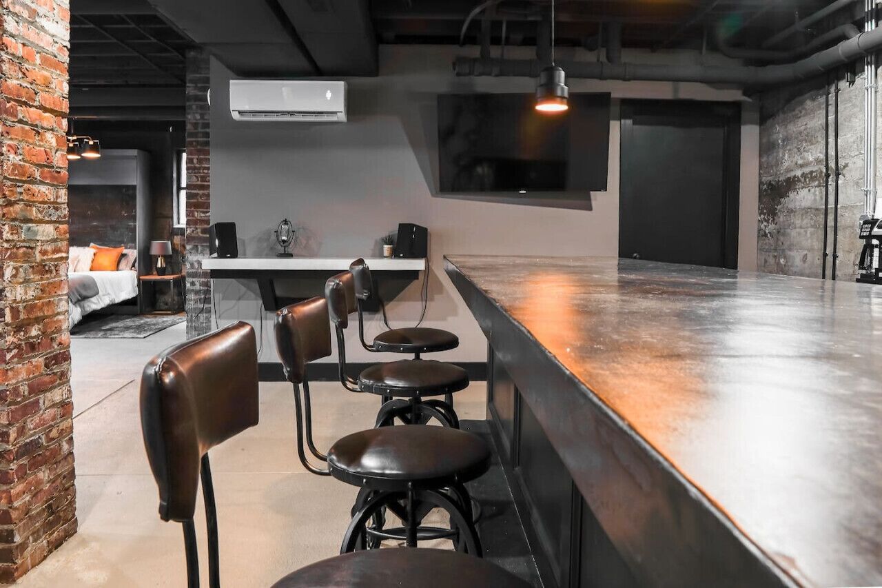 Unique Downtown Studio with an Industrial Vibe The Underground is a stylish and completely remodeled studio with a full bath that boasts an industrial vibe and is conveniently located on the lower-level of the Stables Workspace. With zero steps and attractive lighting, this rental is easily accessible and welcoming.Inside, guests will find a cozy and comfortable Queen Murphy Bed, as well as a bar...