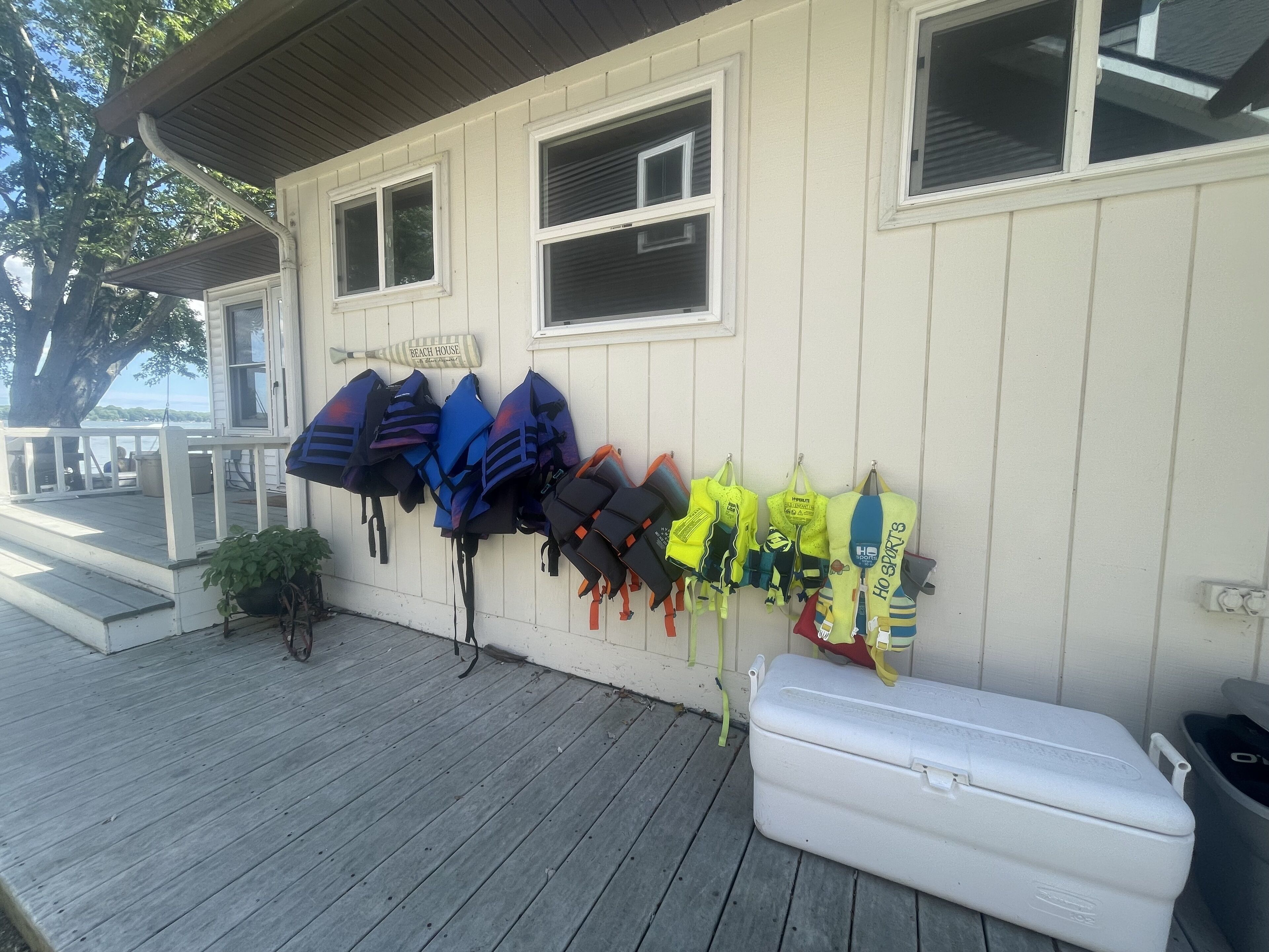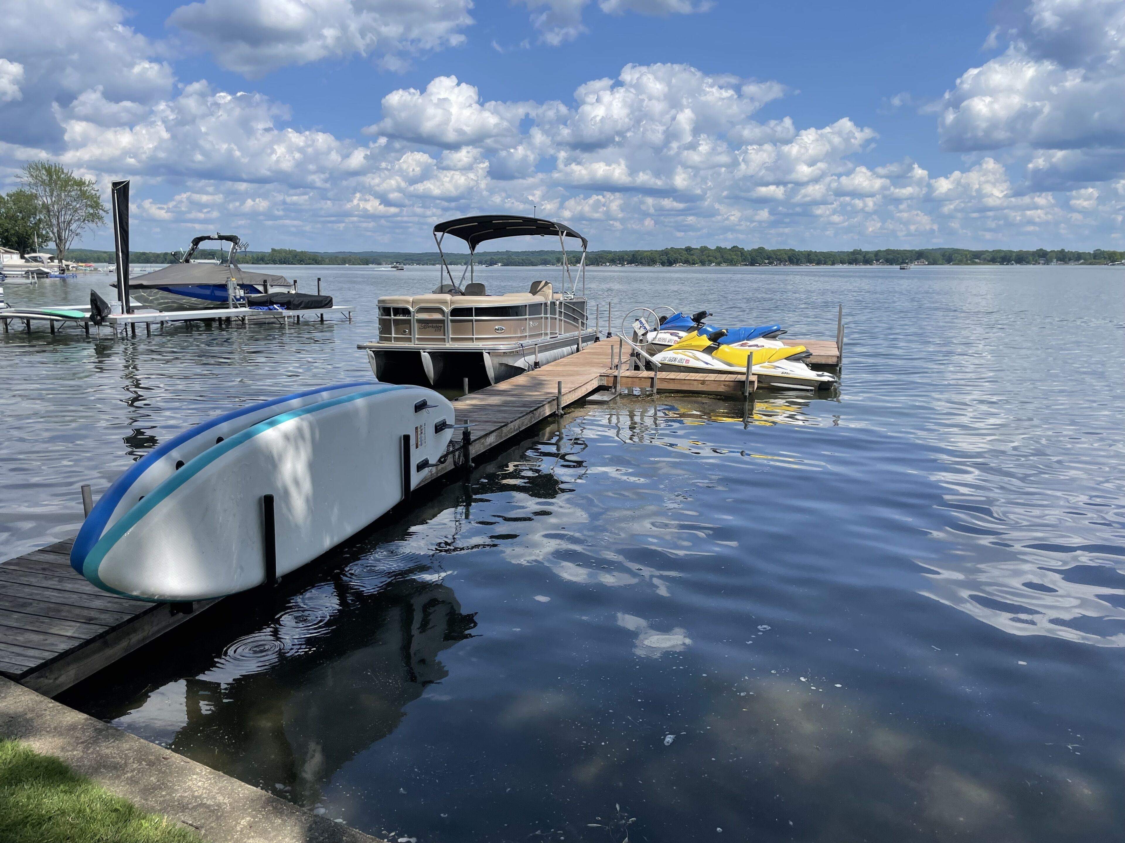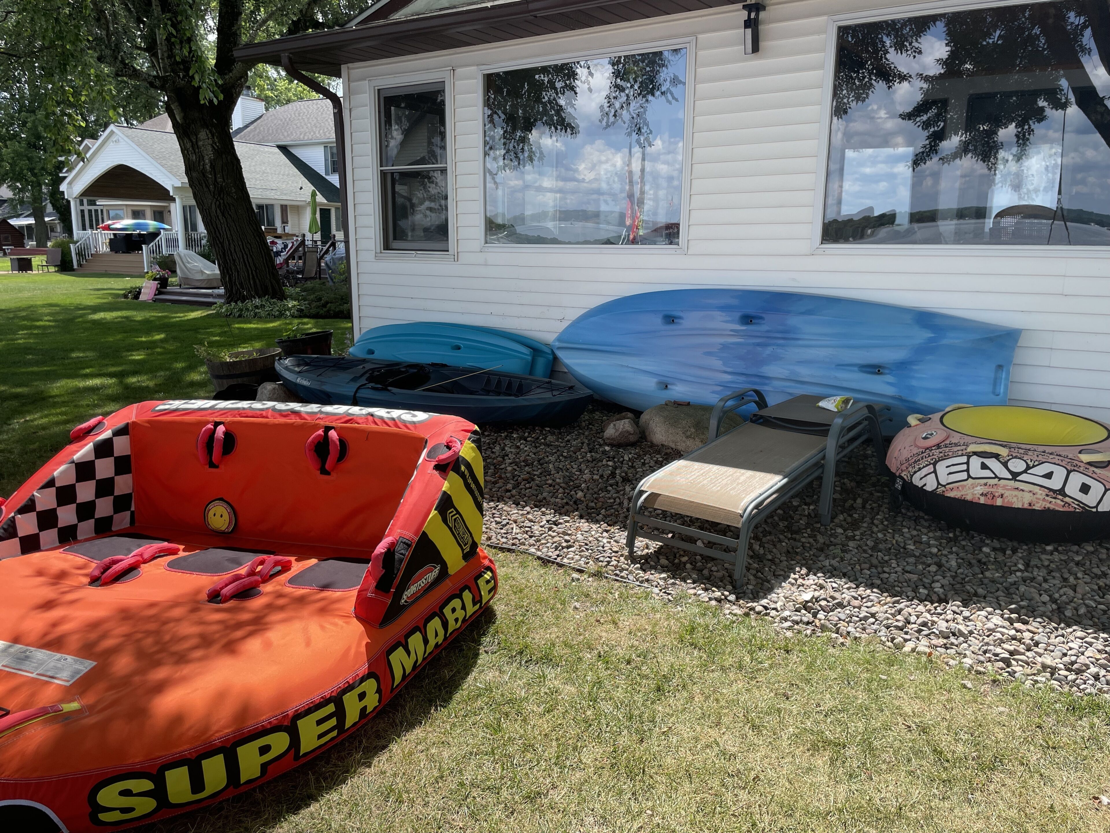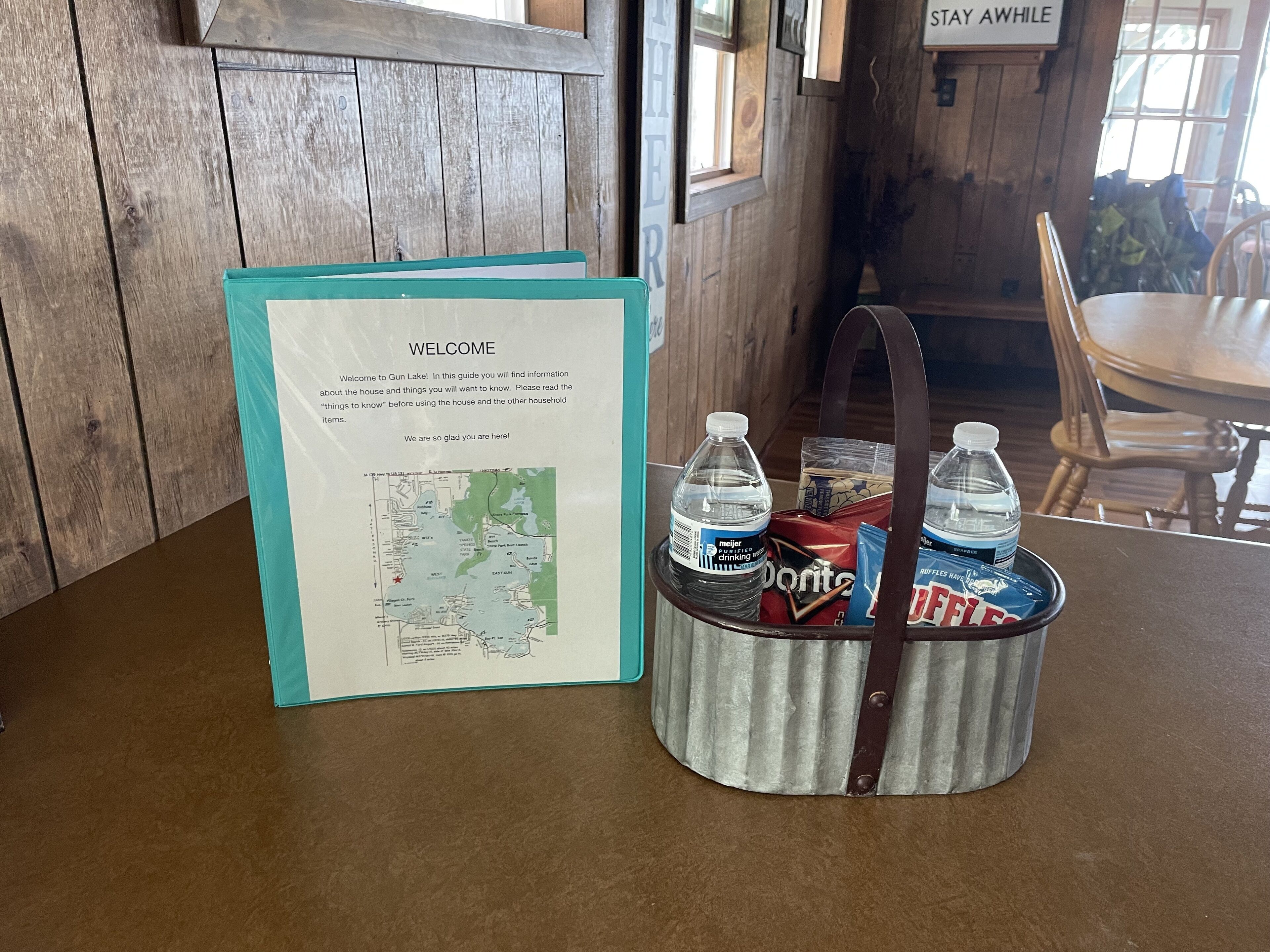 Lakefront home with 3 bedrooms, 2 baths, great for groups up to 10 Enjoy time with friends and family in this newly renovated, single story, 1800 sqft home directly on Gun Lake featuring 3 bedrooms and 2 full bathrooms which can comfortably sleep up to 10 people.Need more space? Ask about renting our property directly across the street for larger groups! We can accommodate groups of 15+ comfortably between the two houses. More info about the other property can be found here: https://www.vrbo.com/2536574This home features an open concept layout, with a well stocked kitchen, family room with smart TV, dining room and sunroom all open to the full-height windows giving you a great view of the lake all day long. Washer and Dryer are available for use on premises. Outside we have a tree swing for the kids that looks out onto the beautiful sandy bottomed swim area next to the dock. The water is only a 1-2 feet deep at the entrance, making it perfect for your little ones. Enjoy taking out our standup paddle boards (2), our kayaks (2 kids, 1 adult, 1 tandem), and experience great fishing right off of our dock.Dock features a sitting area at the end - perfect for a morning cup of coffee or evening drink while you enjoy watching the swan and heron who love to visit. Enjoy your evenings lakeside around the fire pit, hanging out at night and cooking s'mores, or use the large yard as a great place for yard games.Looking to enjoy time out on the water? Ask about renting our 25’ Tritoon and 2 jet skis during your stay! Great for exploring the lake or tubing with the kids.Parking is available for up to 3+ vehicles.Other amenities include Gun Lake Park a 2 minute drive away and the State Park only a 10 minute drive, or a 3 minute boat ride away which features a sandy beach, inflatable water slide, and an ice cream shop! Note: This home is NOT a party space. We ask that you be respectful of the neighbors, who live here year round.