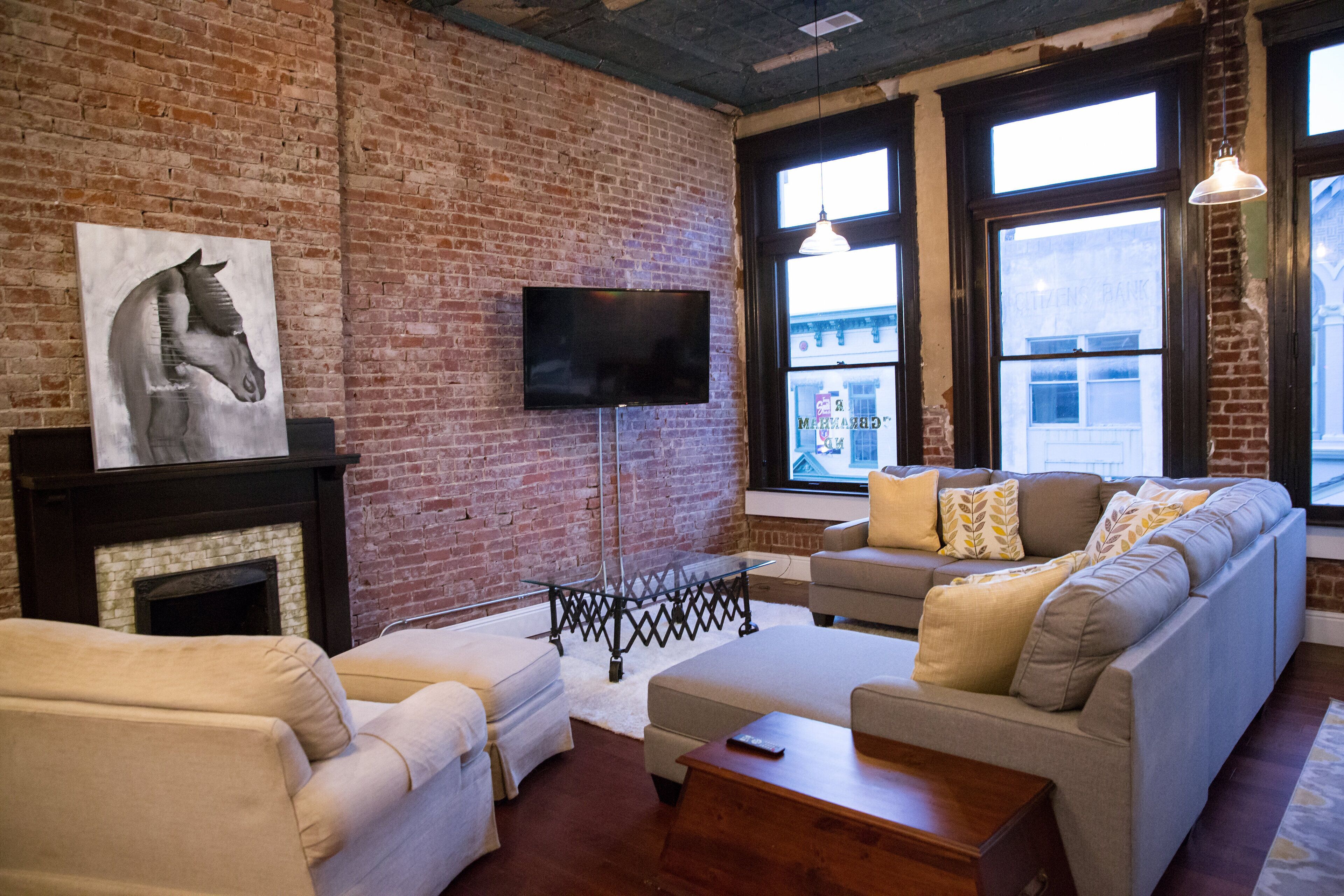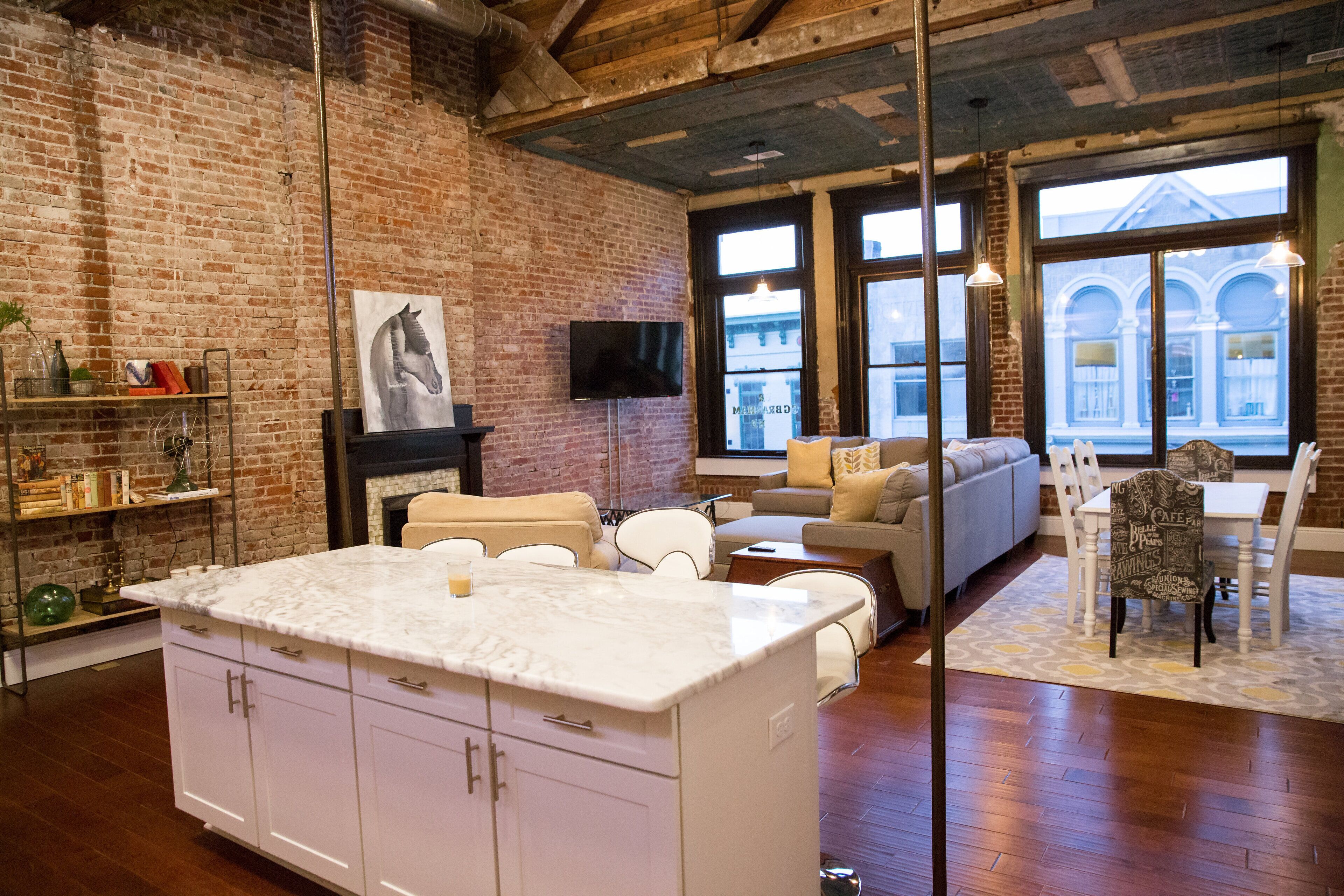 LeCoop Ultra Luxury 2 bed Loft on Bourbon Trail.Close to BuffaloTrace and others Ultra Luxury downtown 2 BR 2 Bath loft, spacious enough for 5 adults. Located in quaint Downtown Shelbyville, KY, you can experience it all while visiting: The Bourbon Trail, Churchill Downs, Keeneland, PGA or any weddings or events in the area. Close to coffee shops, restaurants and bars right on the same block. You can't go wrong with this unique loft for its decor and proximity to everything.You will be nestled in the center of a small town, but will have a hard time believing you're not in a big city with the unique urban vibe of Le Coop. The space was built in the late 1800s and details of its history can be told in the exposed trusses and brick and original decorative fireplace. The open concept living space features a sleek contemporary kitchen, ample plush seating for conversation or television, dining table for six and writer’s desk. Take in the views of Main Street from the expanse of windows that line the entirety of the front wall. Off the back of the loft, enjoy the screened in rooftop deck with seating for four.The Master Suite includes a gorgeous king-sized bed with elegant bedding and the en suite bathroom includes a tile shower and separate bathtub. The upstairs bedroom hosts a queen-sized bed and guests have a separate full bath downstairs with tub/shower combination.A La Carte options available such as private chef, personalize horse tours and chauffeured bourbon tours.CHAUFFEURED TRANSPORTATION:Let us navigate your perfect day and accommodate your transportation needs during your stay with us! Our experienced drivers have knowledge of the quickest and most beautiful ways to your distillery destinations plus the inside scoop on some local eateries. We’ll take the wheel while you enjoy the company of friends and family and arrive safely and in style.