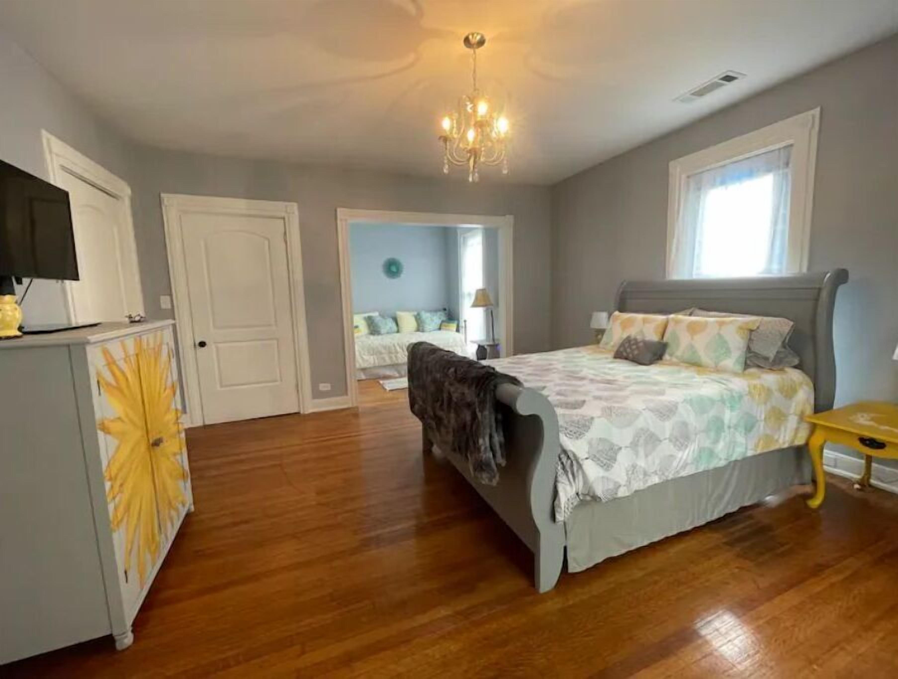 Parris on Main - Perfect for downtown Shelbyville, Bourbon Trail, and the Derby About this spaceParris on Main Street is the perfect location to enjoy the historic town of Shelbyville and, a few blocks walking distance to many antique shops, local coffee houses and great locations to grab a bite to eat.Newly renovated, built in 1942, this house is perfect for a family or group of friends wanting to experience the wonderful places Kentucky has to offer. Right in the middle the Bourbon Trail and about 30 minutes from Churchill DownsThe space - This house features 3 bedrooms, 2.5 bathrooms plus an additional sleep room off the sun-room in the second bedroom.The master bedroom is a dream! Complete with it's own private sun-room with seating and coffee maker in the back, plus a private bathroom with a brand new large walk-in shower.Guest accessFront door has keypad - guests will be sent code before arrival.The house is located right there in the heart of downtown on Main Street, with a private driveway and parking in the back of the house.Other things to note - While we have preserved the originality of the home including gorgeous hardwood throughout. We have added new modifications and modern appliances for a more comfortable stay.Also the house has an air mattress with sheets, as well as a pack n play.Please enjoy your stay. You have full access to the home and all the amenities! We appreciate privacy and want to make sure you have the same. However, we are a phone call away if there are any issues. Hulu is setup on the TV - Parris on Main Guest; please enjoyAny food/drink in the house is fair game - help yourself. Check out - we do not require any special cleaning as you pay for that luxury. If you would like to start the dishwasher or laundry on the way out, that would be great, but 100% optional.