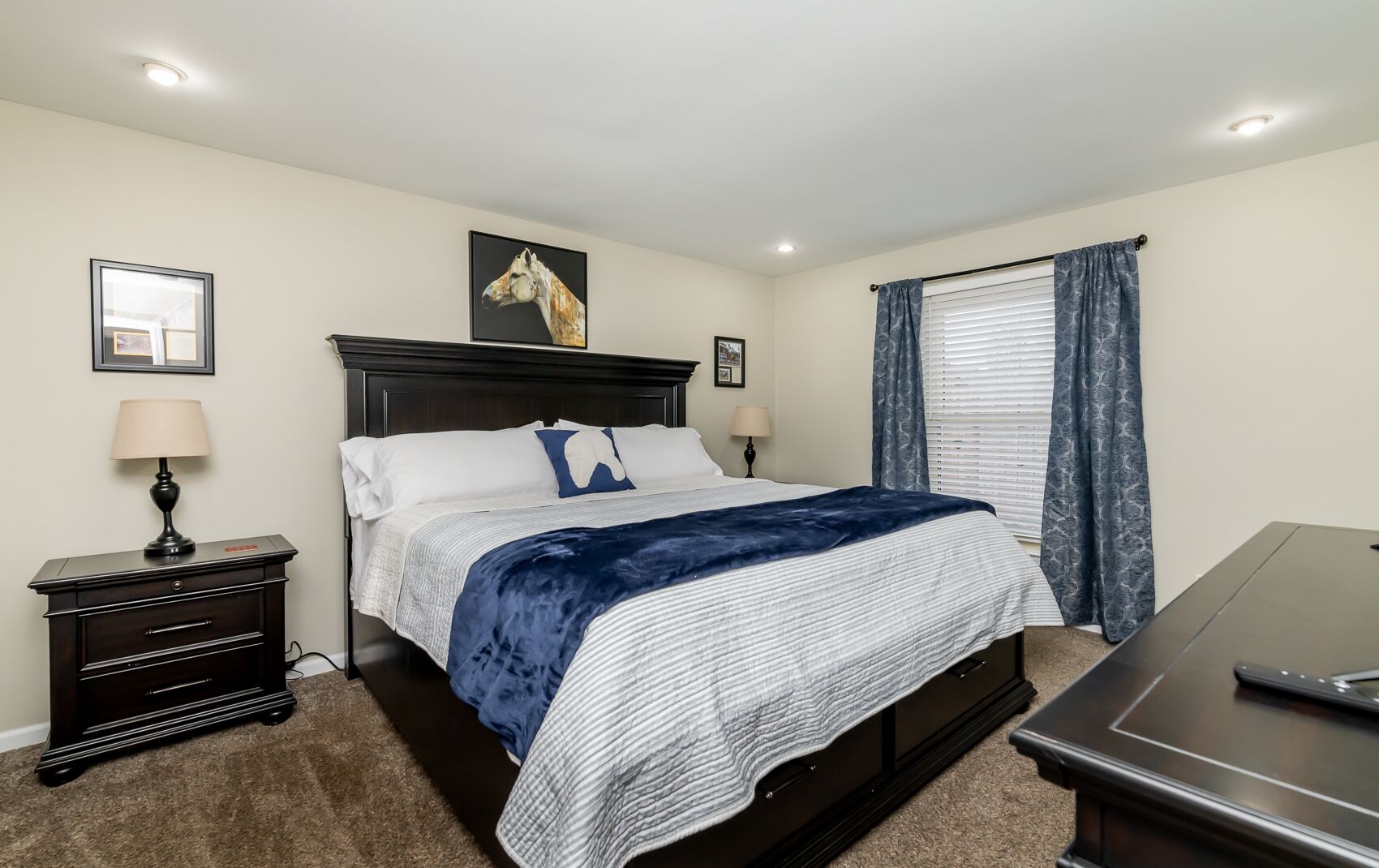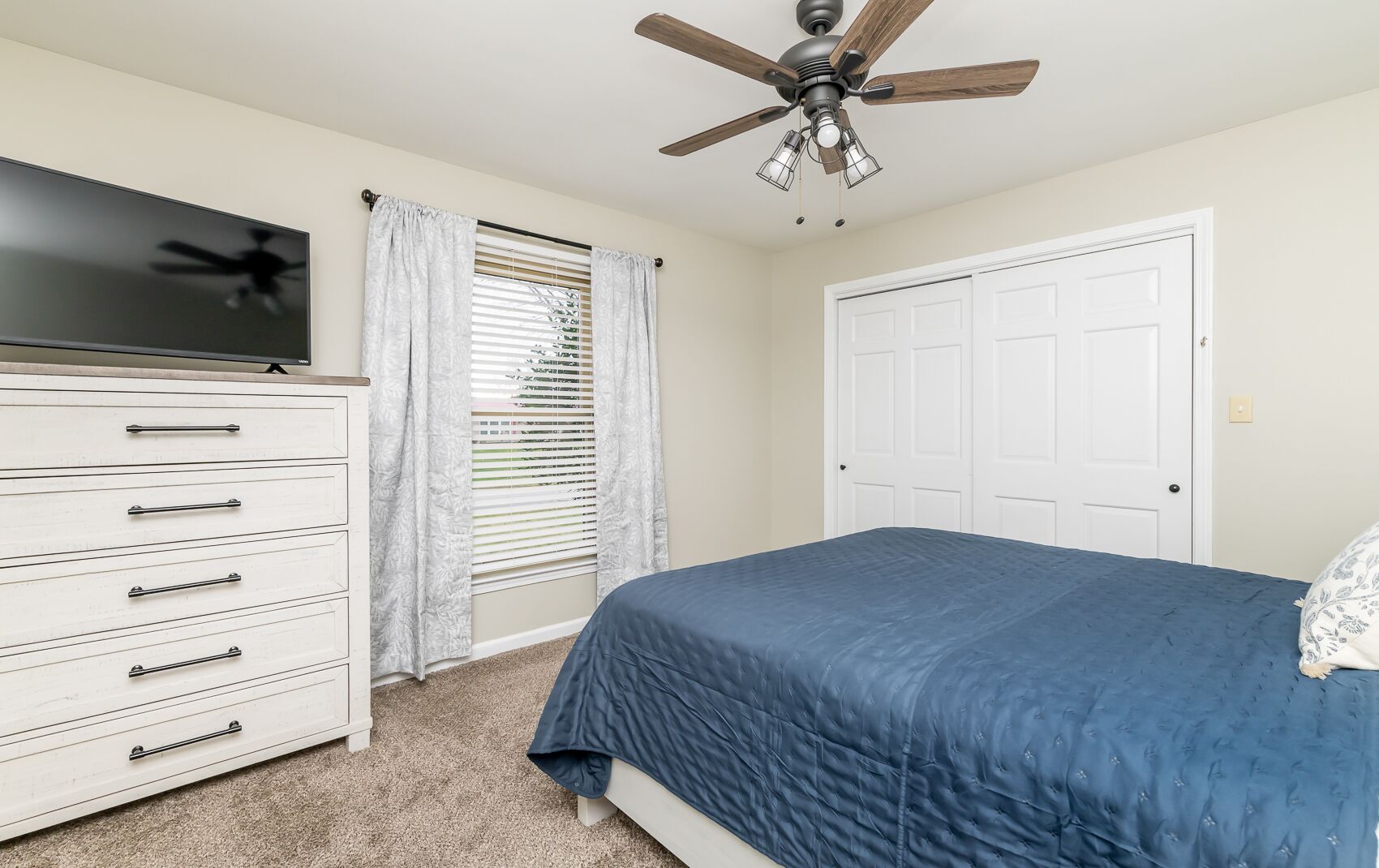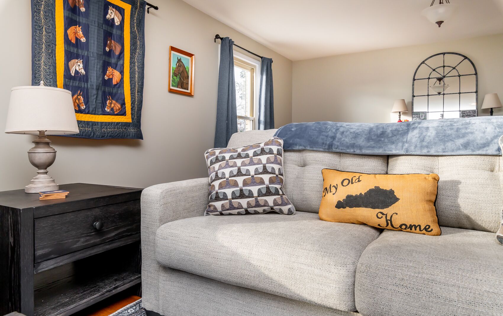 Spacious Home in the middle of horse and bourbon country! Sleeps 8, firepit!! You'll feel right at home in our Old Kentucky Home at The Knob! Tucked away in the middle of horse and bourbon country and minutes from historical downtown Shelbyville. This 3 bed/2 bath spacious home is the ideal location for everything Kentucky has to offer.Enter the driveway to ample parking for up to 5 cars and basketball goal. Once inside you are greeted with an open floor plan and steps to a chef’s dream kitchen with large island, new Whirlpool refrigerator, Keurig coffee station, teapot, toaster, blender, and lots of pots and pans. The dining table seats 6 and additional seating at the bar for 3 more. The buffet provides a place to mix perfect cocktails or enjoy a glass from the complementary bottle of Knob Creek 9 yr Bourbon. The living room has a cozy gas fireplace, 2 couches, including 1 couch with pull-out full size bed, large coffee table full of puzzles and games. Two leather swivel chairs provide the perfect place to watch tv or read a book next to bookcase. Just off the dining room and kitchen, step outside to the large new deck with comfortable seating, overhead string lights, and propane fire pit. Cook up some steaks on the new grill or play some corn hole in the large backyard. Down the hallway, you’ll find a laundry closet with washer and dryer and a closet with iron and ironing board. The first bedroom has a queen memory foam bed, nightstand, large closet, dresser, and 40” flat screen smart tv. The second bedroom has 2 matching memory foam twin beds with attached reading lamps, a 40” flat screen smart tv, a tall dresser with PlayStation 3 for those wanting to play video games and and a desk for those needing a space to do some work. Across the hall, you’ll find a bathroom with shower/tub combo and linen closet stocked with plenty of towels.And last but not least, feel like a king or queen in the memory foam king bed in the Kentucky Derby-themed Primary suite which comes with its own steps and en-suite bath with tiled shower, large walk-in closet, 55” flat screen smart tv, plenty of storage in the dresser and more room in the matching nightstands.Sleeps 8 in total.BOURBON!! Buffalo Trace, Woodford Reserve, Four Roses, Bulleit, Jeptha Creed, Heaven Hill, Angel's Envy, Evan Williams, and many others are 5 to 45 minutes away.SHOPPING:Downtown Shelbyville Antique and Boutique shops – 5 minOutlet Shoppes of the Bluegrass – HUGE Outlet Mall is only 15 min awayDowntown Simpsonville, Midway, and Frankfort shops are less than 45 minLess than 45 min to Louisville:Downtown attractions, restaurants, etc.Louisville (SDF) AirportUniversity of Louisville - Cardinal Stadium and KFC Yum CenterLess than 45 min to Horse Racing:Churchill Downs or KeenelandExperience your ideal extended weekend with horse racing at Churchill Downs or Keeneland, tour Buffalo Trace, Woodford Reserve, Four Roses or other famous distilleries, take in a concert or game at the KFC Yum Center, eat at the historical Bell House and Claudia Sanders Dinner House, then relax at the end of the day with a fire on the deck, an adult beverage, and fellowship with friends and family.If your passion is outdoors, look no further than Guist Creek Lake. This hidden gem is packed with wildlife and a nice marina to launch your fishing or ski boat and it’s right around the corner. We have plenty of room for the boat in the large driveway.Experience it all then come back often!