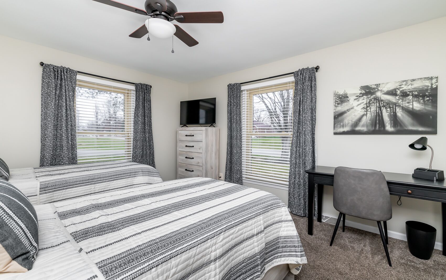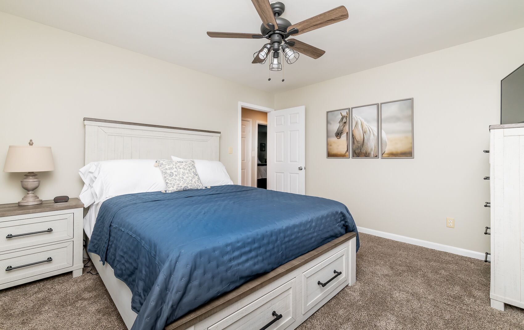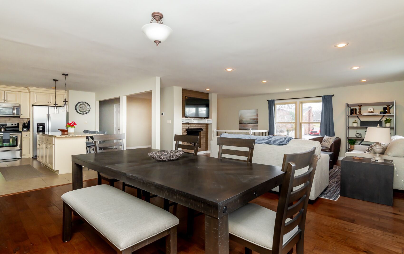 Spacious Home in the middle of horse and bourbon country! Sleeps 8, firepit!! You'll feel right at home in our Old Kentucky Home at The Knob! Tucked away in the middle of horse and bourbon country and minutes from historical downtown Shelbyville. This 3 bed/2 bath spacious home is the ideal location for everything Kentucky has to offer.Enter the driveway to ample parking for up to 5 cars and basketball goal. Once inside you are greeted with an open floor plan and steps to a chef’s dream kitchen with large island, new Whirlpool refrigerator, Keurig coffee station, teapot, toaster, blender, and lots of pots and pans. The dining table seats 6 and additional seating at the bar for 3 more. The buffet provides a place to mix perfect cocktails or enjoy a glass from the complementary bottle of Knob Creek 9 yr Bourbon. The living room has a cozy gas fireplace, 2 couches, including 1 couch with pull-out full size bed, large coffee table full of puzzles and games. Two leather swivel chairs provide the perfect place to watch tv or read a book next to bookcase. Just off the dining room and kitchen, step outside to the large new deck with comfortable seating, overhead string lights, and propane fire pit. Cook up some steaks on the new grill or play some corn hole in the large backyard. Down the hallway, you’ll find a laundry closet with washer and dryer and a closet with iron and ironing board. The first bedroom has a queen memory foam bed, nightstand, large closet, dresser, and 40” flat screen smart tv. The second bedroom has 2 matching memory foam twin beds with attached reading lamps, a 40” flat screen smart tv, a tall dresser with PlayStation 3 for those wanting to play video games and and a desk for those needing a space to do some work. Across the hall, you’ll find a bathroom with shower/tub combo and linen closet stocked with plenty of towels.And last but not least, feel like a king or queen in the memory foam king bed in the Kentucky Derby-themed Primary suite which comes with its own steps and en-suite bath with tiled shower, large walk-in closet, 55” flat screen smart tv, plenty of storage in the dresser and more room in the matching nightstands.Sleeps 8 in total.BOURBON!! Buffalo Trace, Woodford Reserve, Four Roses, Bulleit, Jeptha Creed, Heaven Hill, Angel's Envy, Evan Williams, and many others are 5 to 45 minutes away.SHOPPING:Downtown Shelbyville Antique and Boutique shops – 5 minOutlet Shoppes of the Bluegrass – HUGE Outlet Mall is only 15 min awayDowntown Simpsonville, Midway, and Frankfort shops are less than 45 minLess than 45 min to Louisville:Downtown attractions, restaurants, etc.Louisville (SDF) AirportUniversity of Louisville - Cardinal Stadium and KFC Yum CenterLess than 45 min to Horse Racing:Churchill Downs or KeenelandExperience your ideal extended weekend with horse racing at Churchill Downs or Keeneland, tour Buffalo Trace, Woodford Reserve, Four Roses or other famous distilleries, take in a concert or game at the KFC Yum Center, eat at the historical Bell House and Claudia Sanders Dinner House, then relax at the end of the day with a fire on the deck, an adult beverage, and fellowship with friends and family.If your passion is outdoors, look no further than Guist Creek Lake. This hidden gem is packed with wildlife and a nice marina to launch your fishing or ski boat and it’s right around the corner. We have plenty of room for the boat in the large driveway.Experience it all then come back often!