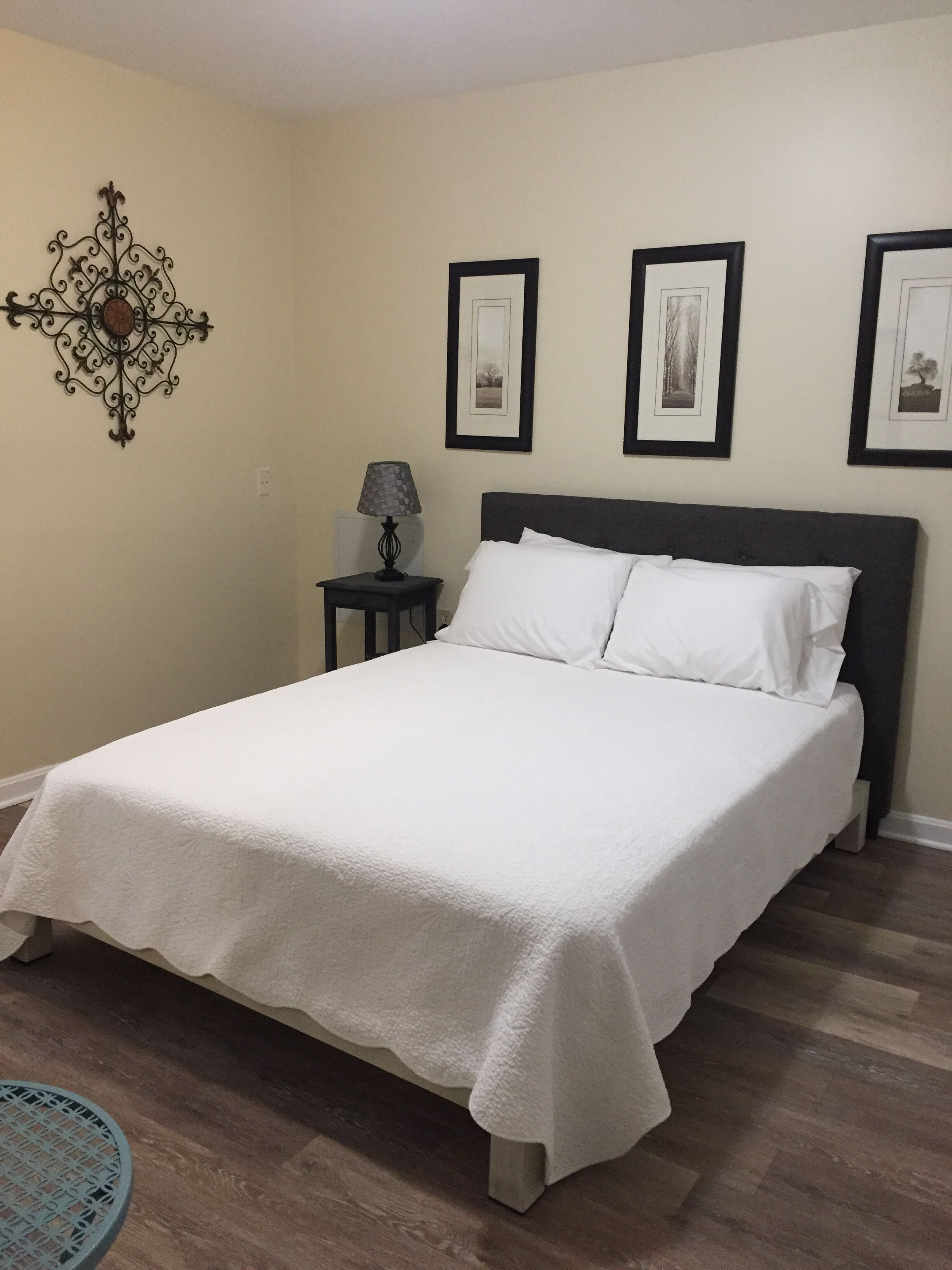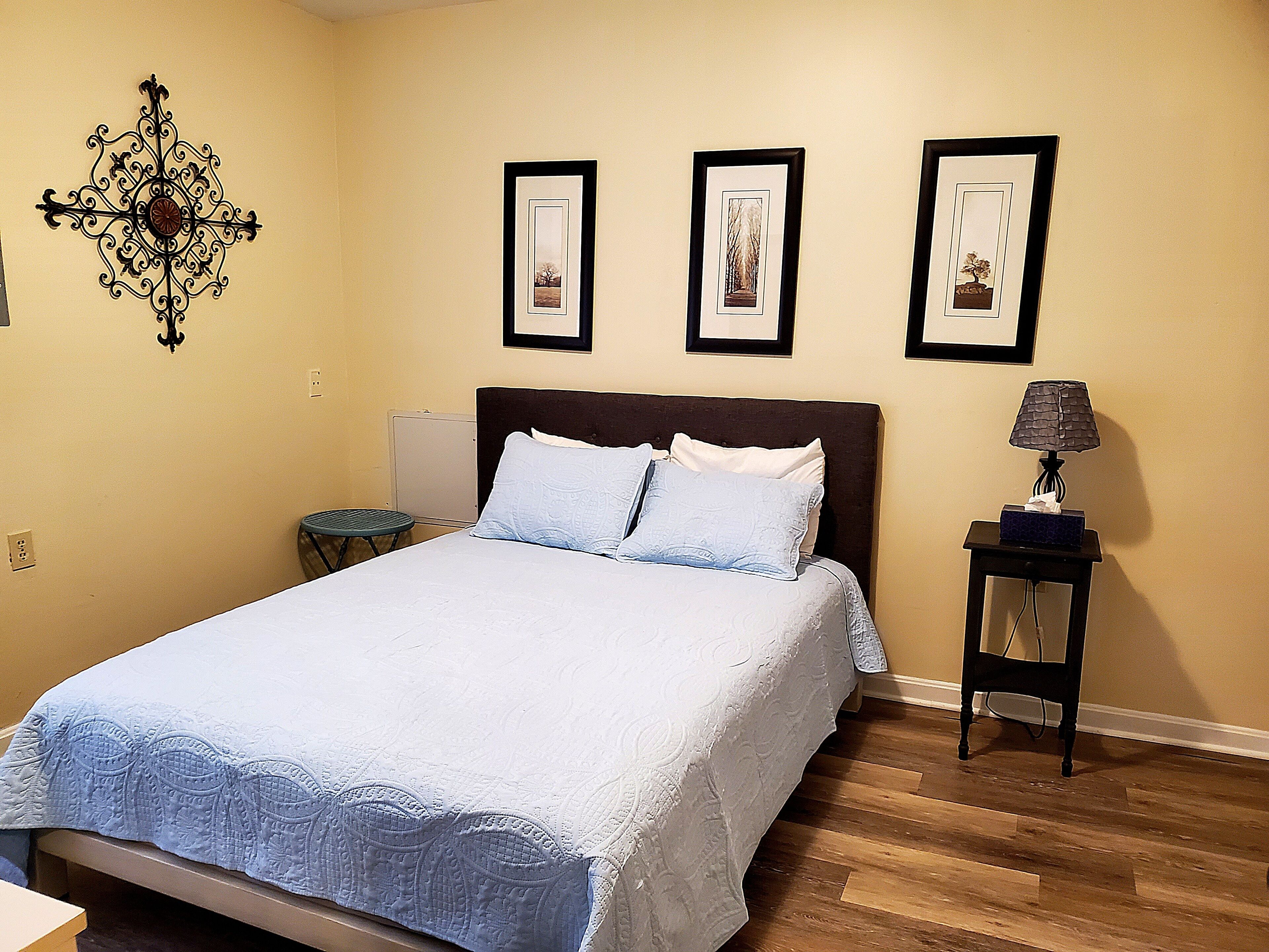 Your Kentucky Home Away From Home Our lovely Condo features 2 bedrooms and 2 full baths – is located in a quite area of Shelbyville. Close to shopping, highway, bourbon distilleries, horse farms and much more!! Perfect for work or play! Inquire about extended stays.. This Open Floor Plan has 1st Floor Entry, front-door parking and 36” doors, low curb shower, LVT flooring, making it easily accessible. This home is fully furnished throughout, including a full kitchen with all appliances, dishes, drinkware and silverware, granite counter tops, washer and dryer, a wall-mounted flat-screen television, tasteful art, linens, towels and more.Located in a small condo community, with only 2 condo units per building. Parking at your door!