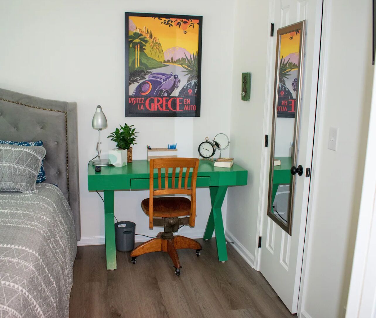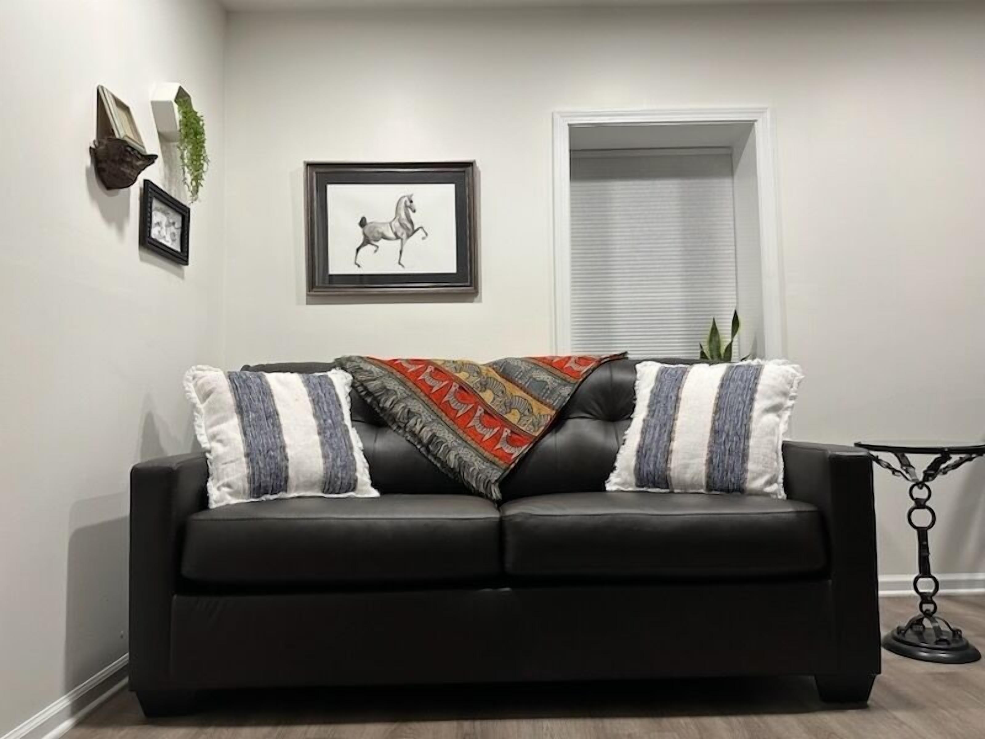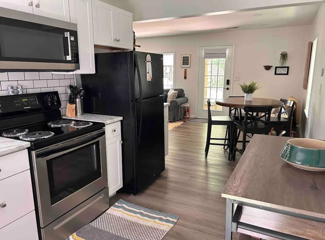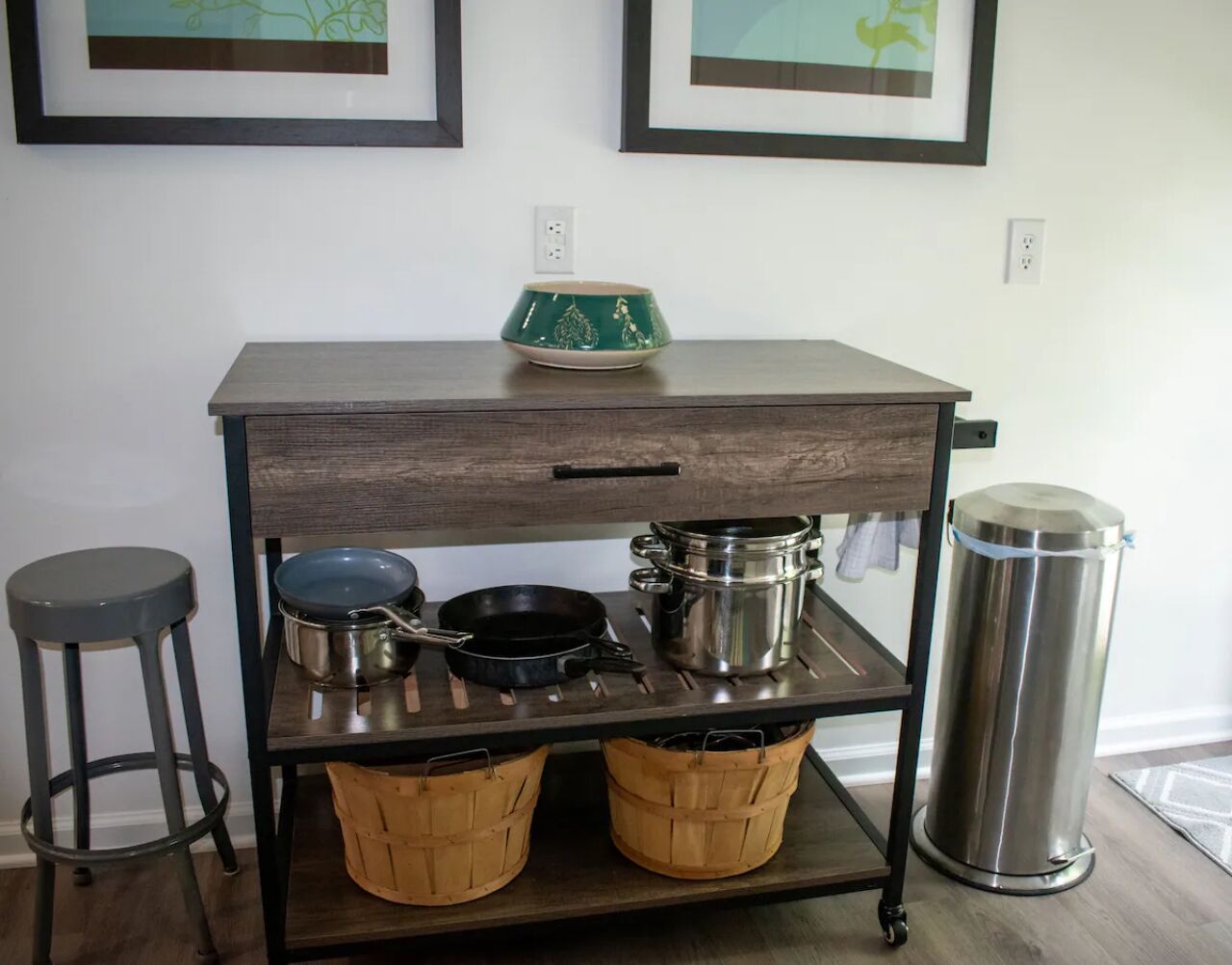 Horse Country Hideaway Located in the heart of Shelbyville, this adorable little hideaway is within walking distance from the Shelbyville Fairgrounds. A mere 5 minute drive to the Main St. boutiques, cafés and restaurants, this location features a fire area, and a propane grill. In addition to the cozy patio area, this Hideaway also offers a comfortable workspace and a Roku TV. The Hideaway is equipped with a full size kitchen and appliances, basic seasonings and oil, coffee pot, French press, Keurig, washer/dryer