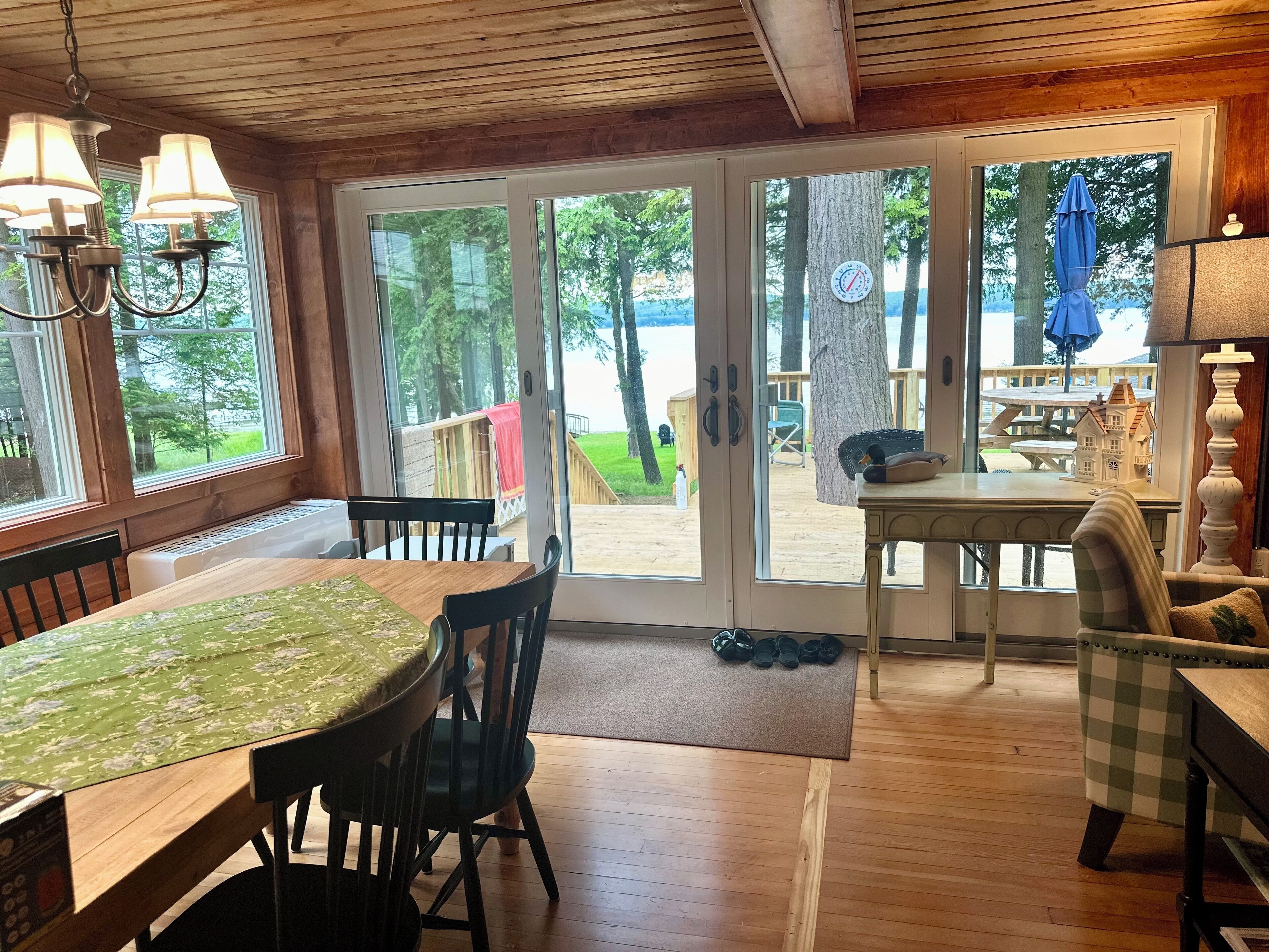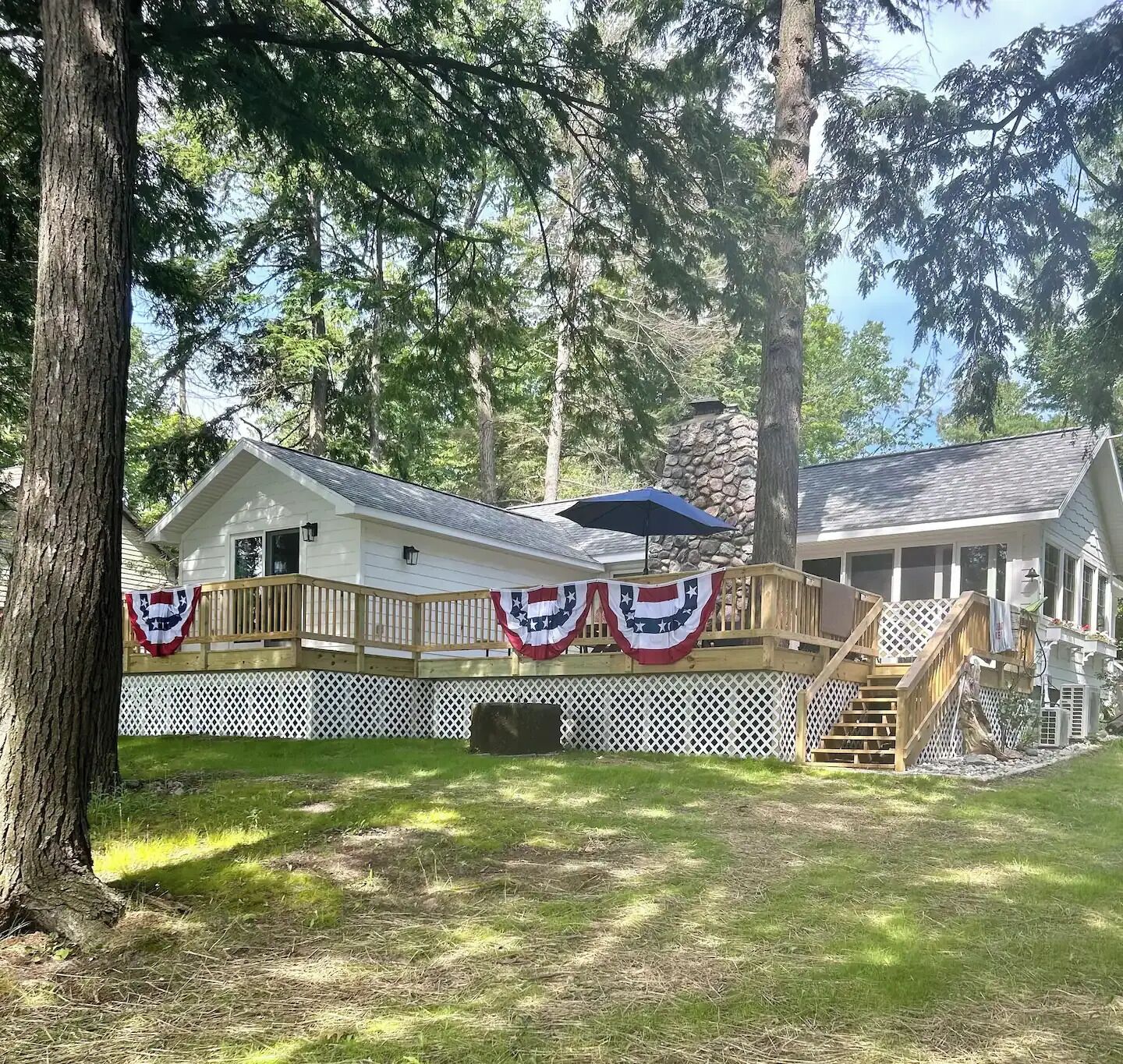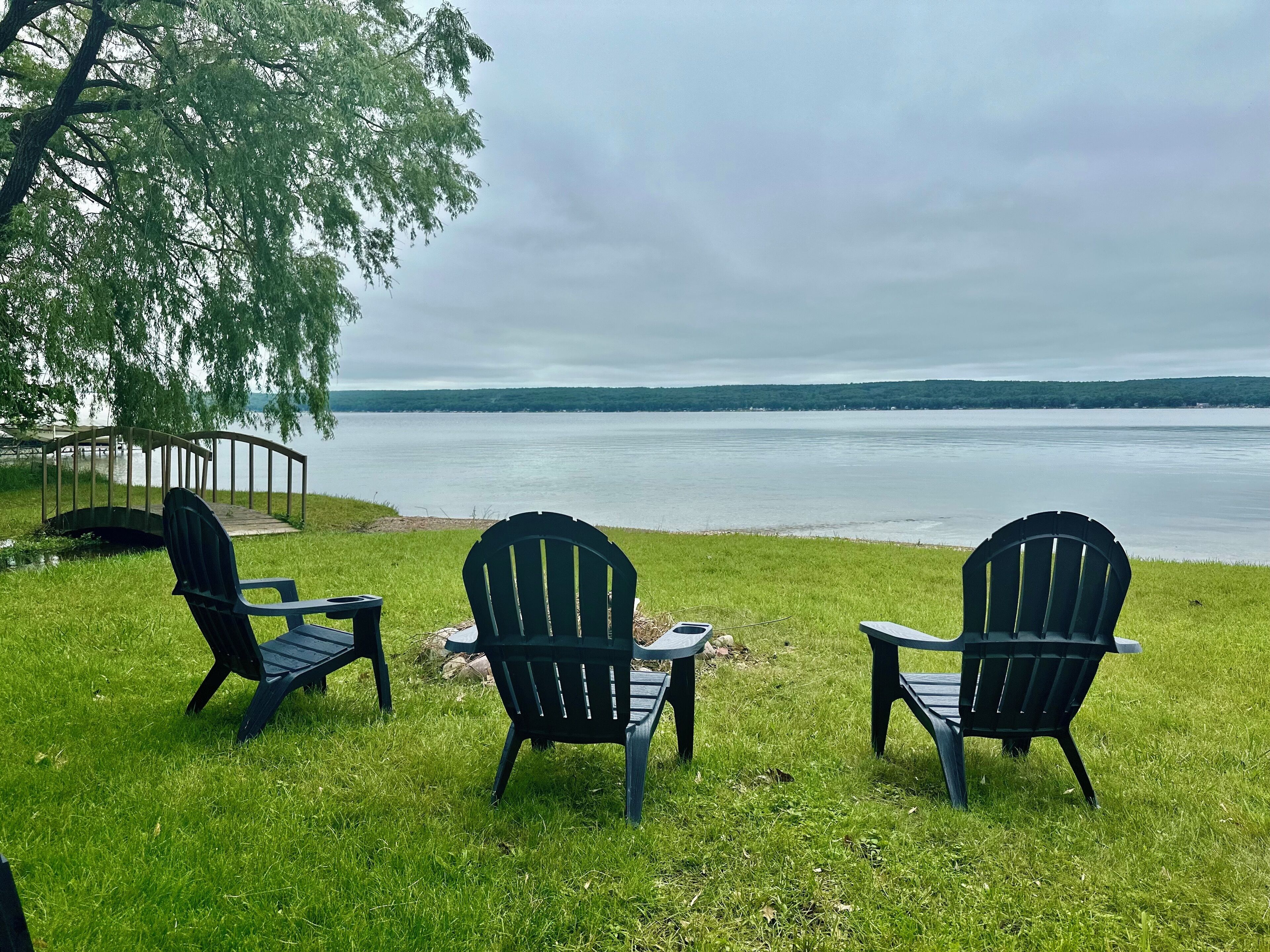 THE BEST spot on the Lake - capture last days of summer - creekside & lakeside! Something out of a storybook, two spring-fed creeks wind through the property, making it one of the most beautiful and unique spots on the lake. With over 140 feet of lakeshore, play in the water, enjoy games on the lawn and take in the sunsets from the bonfire or dock. This lakefront property is nestled on the North-east end of Hubbard Lake amid endless options for walking, biking, boating or...nothing at all.Step indoors to the gorgeous 3-bed, 2-bath newly renovated cottage, thoughtfully designed for comfort and conversation. It boasts a spacious kitchen and dining area with a lake view and an open living area that extends outdoors.The master bedroom has a queen-sized bed, private bath and deck overlooking the creek. 2 other bedrooms have full-size beds and twin bunk beds, offering flexible space for families. Deck or dock for lakeside sunsets. Cozy covered front porch for coffee with the birds. Have it all!