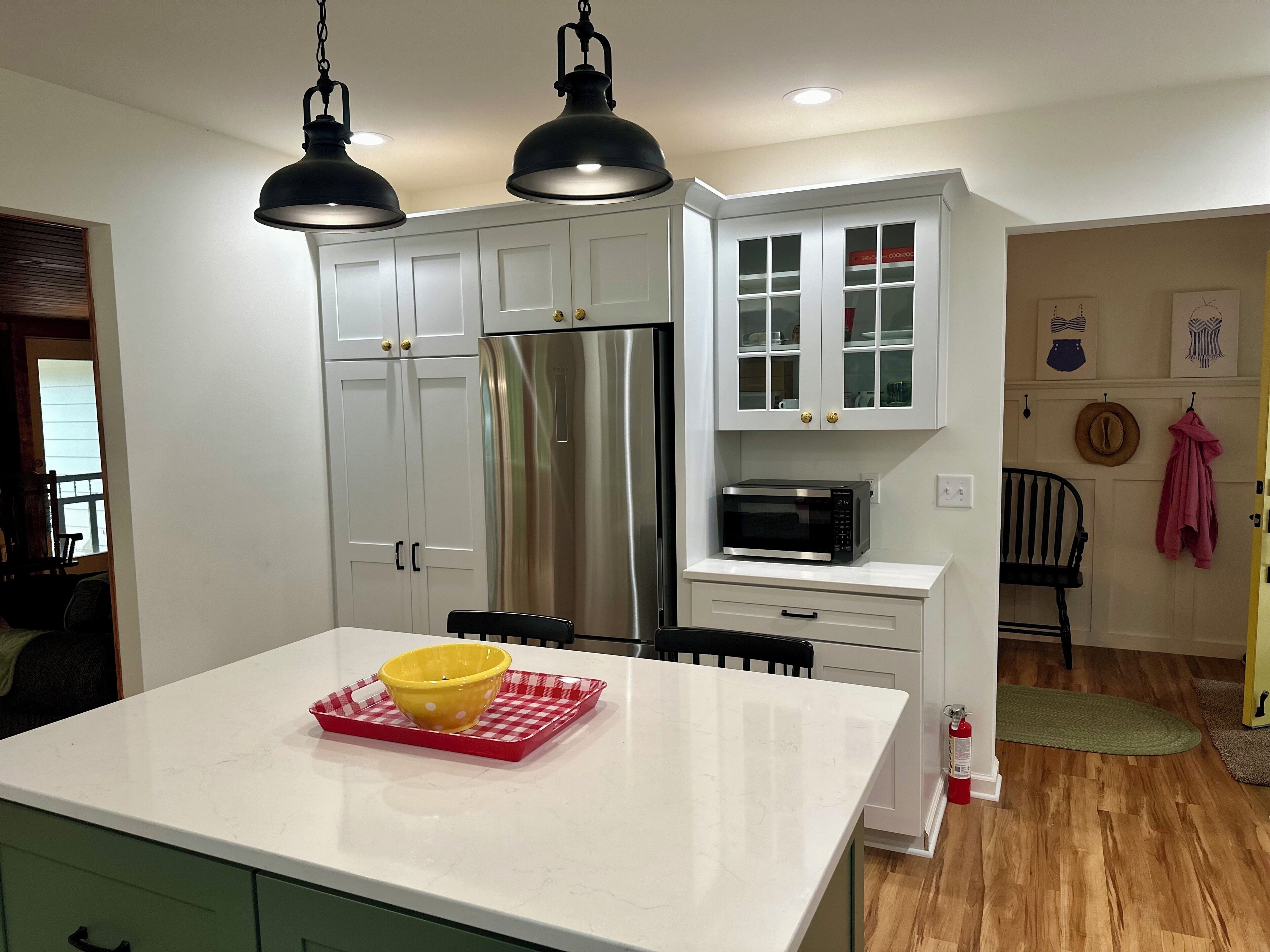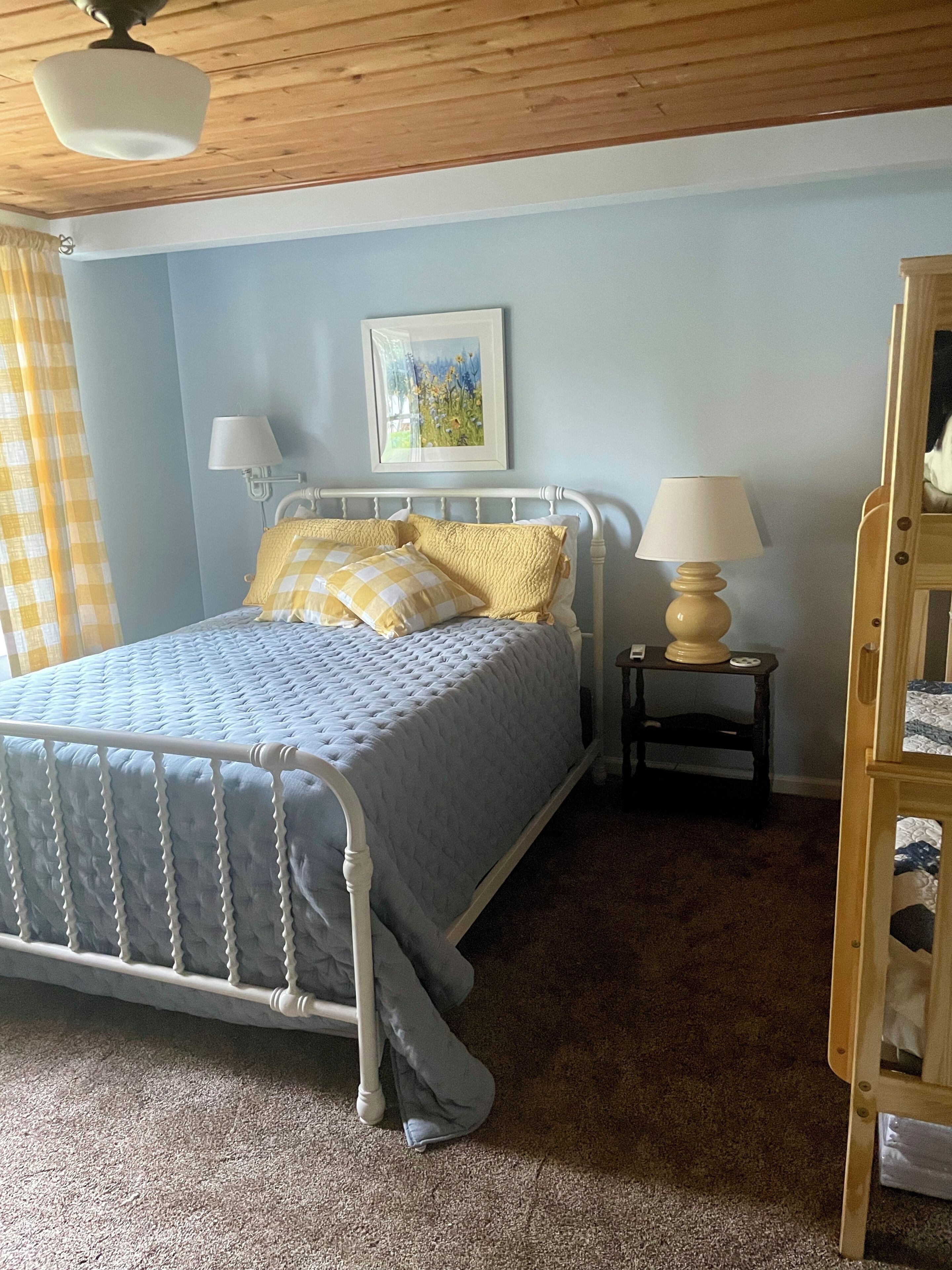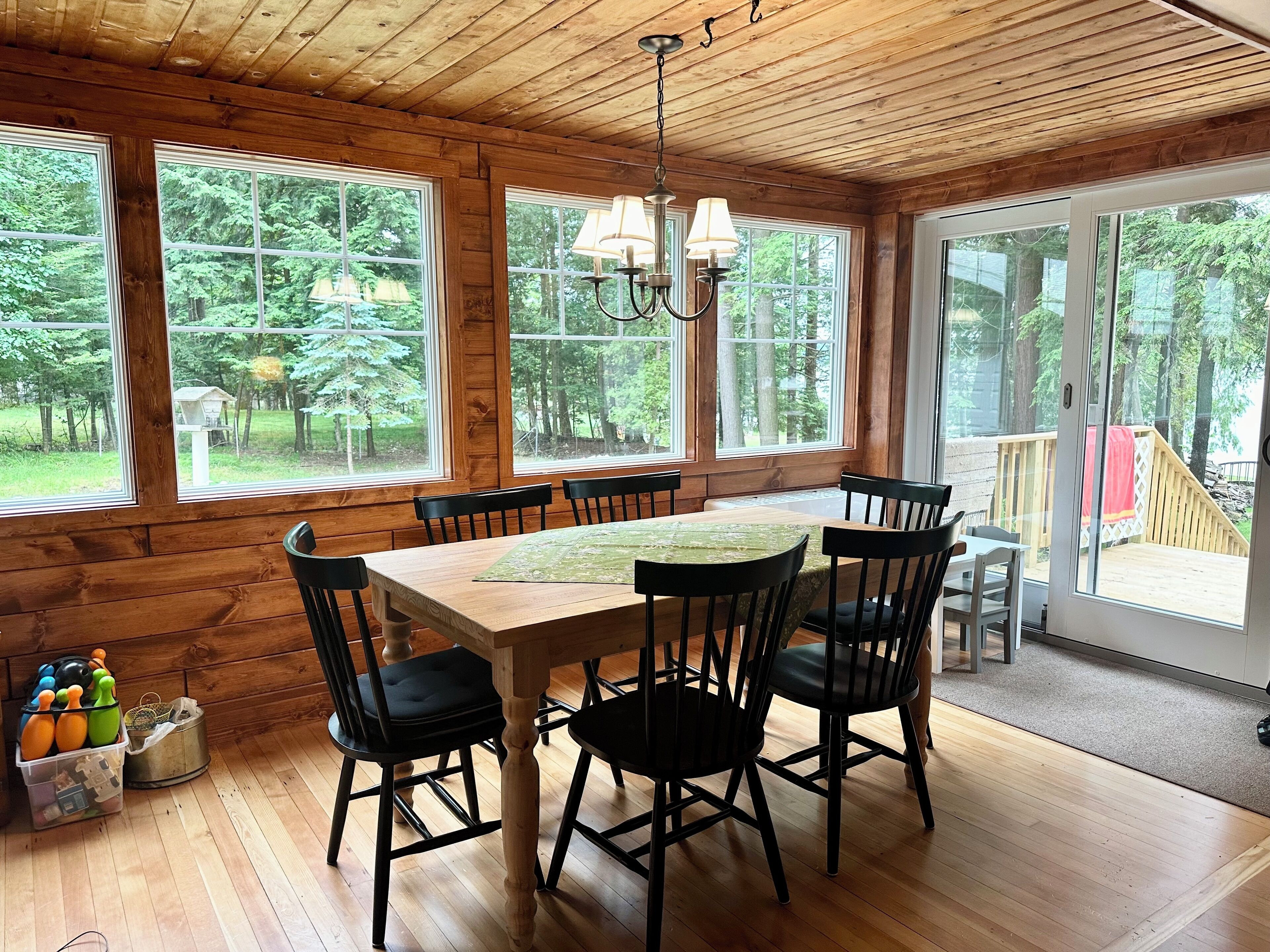 THE BEST spot on the Lake - capture last days of summer - creekside & lakeside! Something out of a storybook, two spring-fed creeks wind through the property, making it one of the most beautiful and unique spots on the lake. With over 140 feet of lakeshore, play in the water, enjoy games on the lawn and take in the sunsets from the bonfire or dock. This lakefront property is nestled on the North-east end of Hubbard Lake amid endless options for walking, biking, boating or...nothing at all.Step indoors to the gorgeous 3-bed, 2-bath newly renovated cottage, thoughtfully designed for comfort and conversation. It boasts a spacious kitchen and dining area with a lake view and an open living area that extends outdoors.The master bedroom has a queen-sized bed, private bath and deck overlooking the creek. 2 other bedrooms have full-size beds and twin bunk beds, offering flexible space for families. Deck or dock for lakeside sunsets. Cozy covered front porch for coffee with the birds. Have it all!