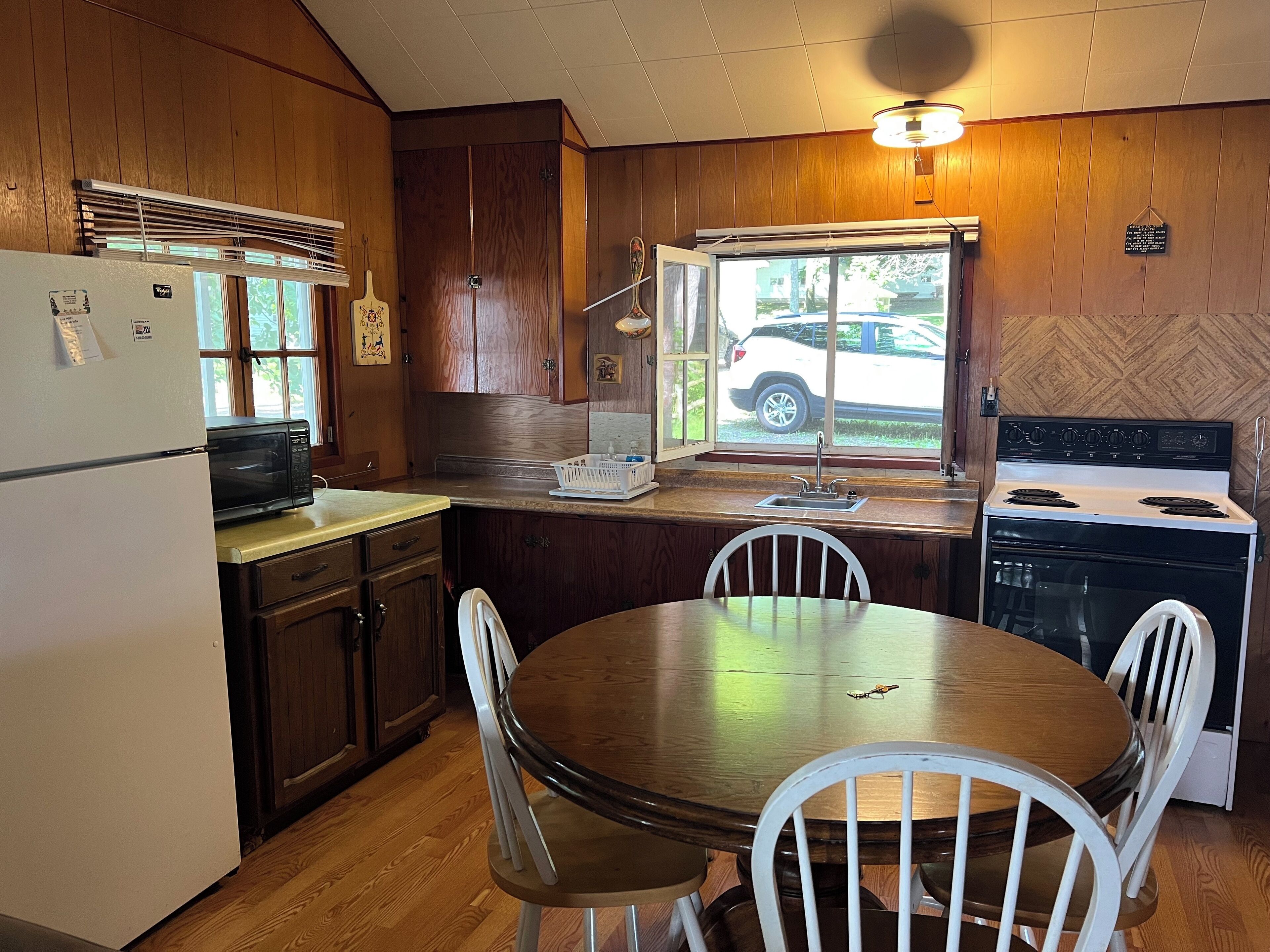 Rustic View Cabin The perfect destination for water-loving families! Our two-bedroom cozy cottage includes a full kitchen and bathroom, a small living/dining area, and a screened-in porch. Make dinner on the charcoal grill and enjoy s'mores for dinner by the campfire for dessert. If you're looking for activities to do on the water besides swim we offer pontoon, kayak, and paddle board rentals.