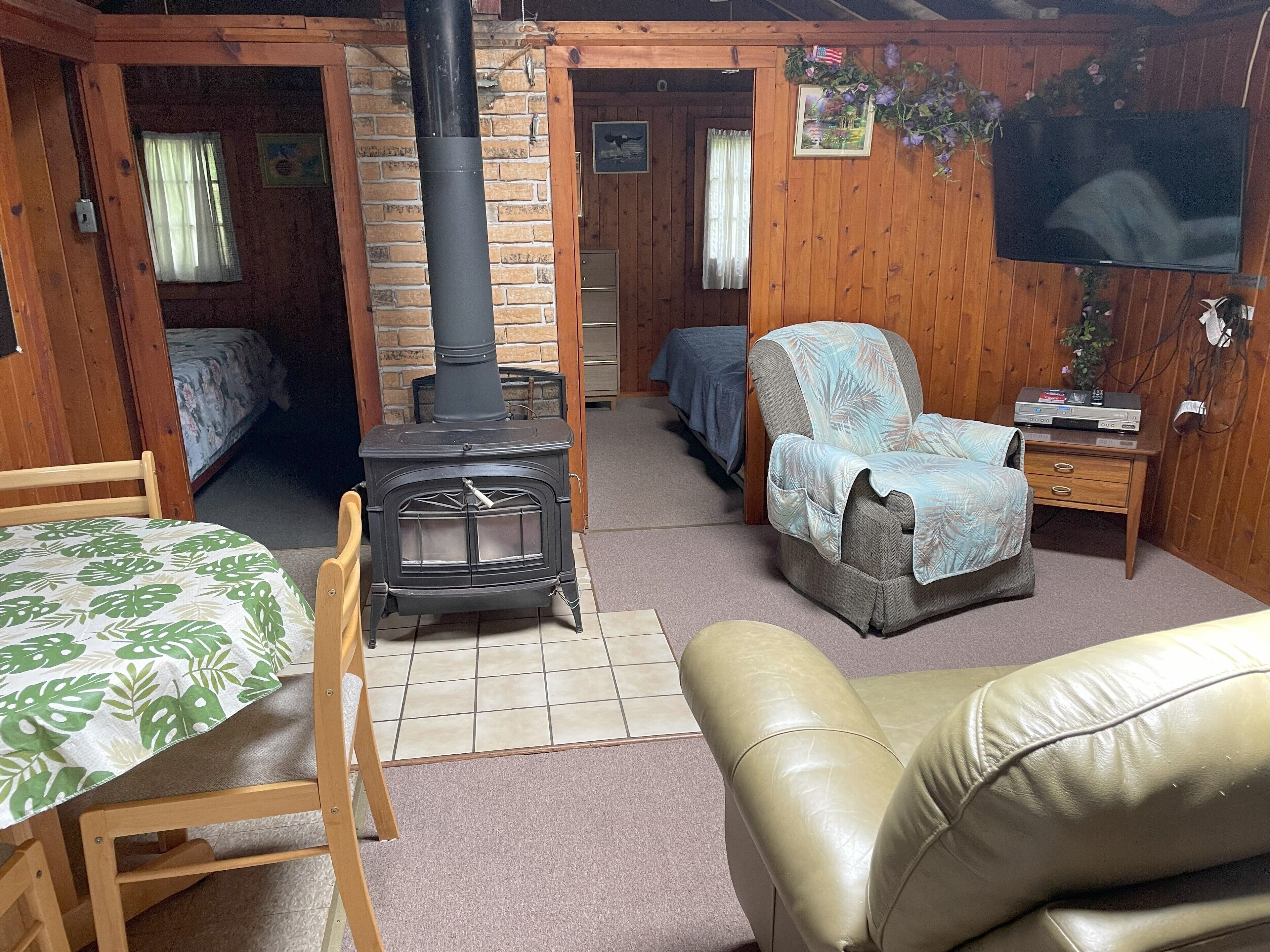 Beautiful Hubbard Lake, Lakefront Cottage West Wind Cottages, nestled on the picturesque Hubbard Lake, the largest inland body of water in Northeast Michigan, spans 8800 acres of deep, spring-fed waters perfect for swimming, boating, and fishing. Nature enthusiasts will be captivated by the scenic splendor of Alcona County's forests and hills. Hunters will find an abundance of deer, turkey, and small game in the vicinity. Golfers can test their skills on several challenging courses nearby. For stargazers, the night sky transforms into a celestial showcase, offering breathtaking views of the northern lights, Starlink satellites, and meteors when conditions permit.The cottages, crafted from cedar log quarters, exude a warm, rustic charm. Each cottage features a screened-in porch, skylights, and a ceiling fan, complemented by a wood-burning stove for the cooler evenings. The accommodations also include a fully-equipped kitchen, complete with a bathroom and shower.75 feet from your cottage: Excellent swimming (Crystal Clear water, no muck or weeds, sand/cobblestone mixture shoreline beach area turning into all sand lakefront bottom), boating, fishing (Walleye, perch, pike, trout, world class smallmouth)5-15 minute drive: Marina, gas station, parks, general stores, championship golf courses, restaurants, & bars20-30 minutes: Access to thousands of acres of public land, Reid & Hoist Lakes foot trails, City of Alpena a Maritime town, museums, shipwrecks, Harrisville boat harbor, Lake Huron, Sturgeon Point Lighthouse & Museum