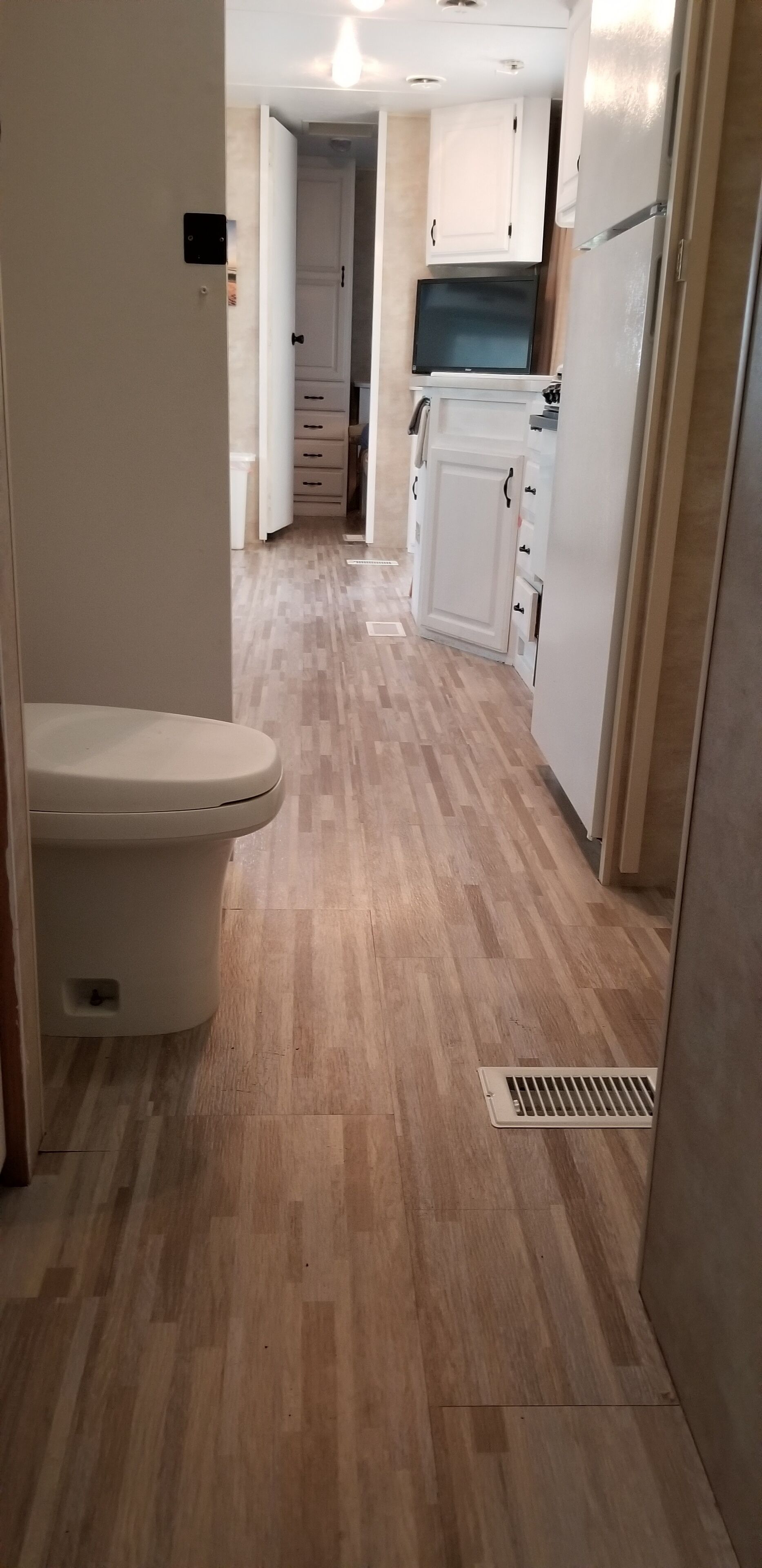 Crystal Camper - Large Two Bedroom Spacious RV w/Wooded Trail The Crystal Camper - 35ft RV Camper located down our trail a few hundred yards from our home. The camper has two bedrooms and sleeps 7. It is equipped with a stove, oven, refrigerator, dual kitchen sinks, Heater, AC, shower, small tub, toilet, TV, wifi, queen size bed, bunkbeds, table bed, hide a bed couch, dining table, chairs and stoo...