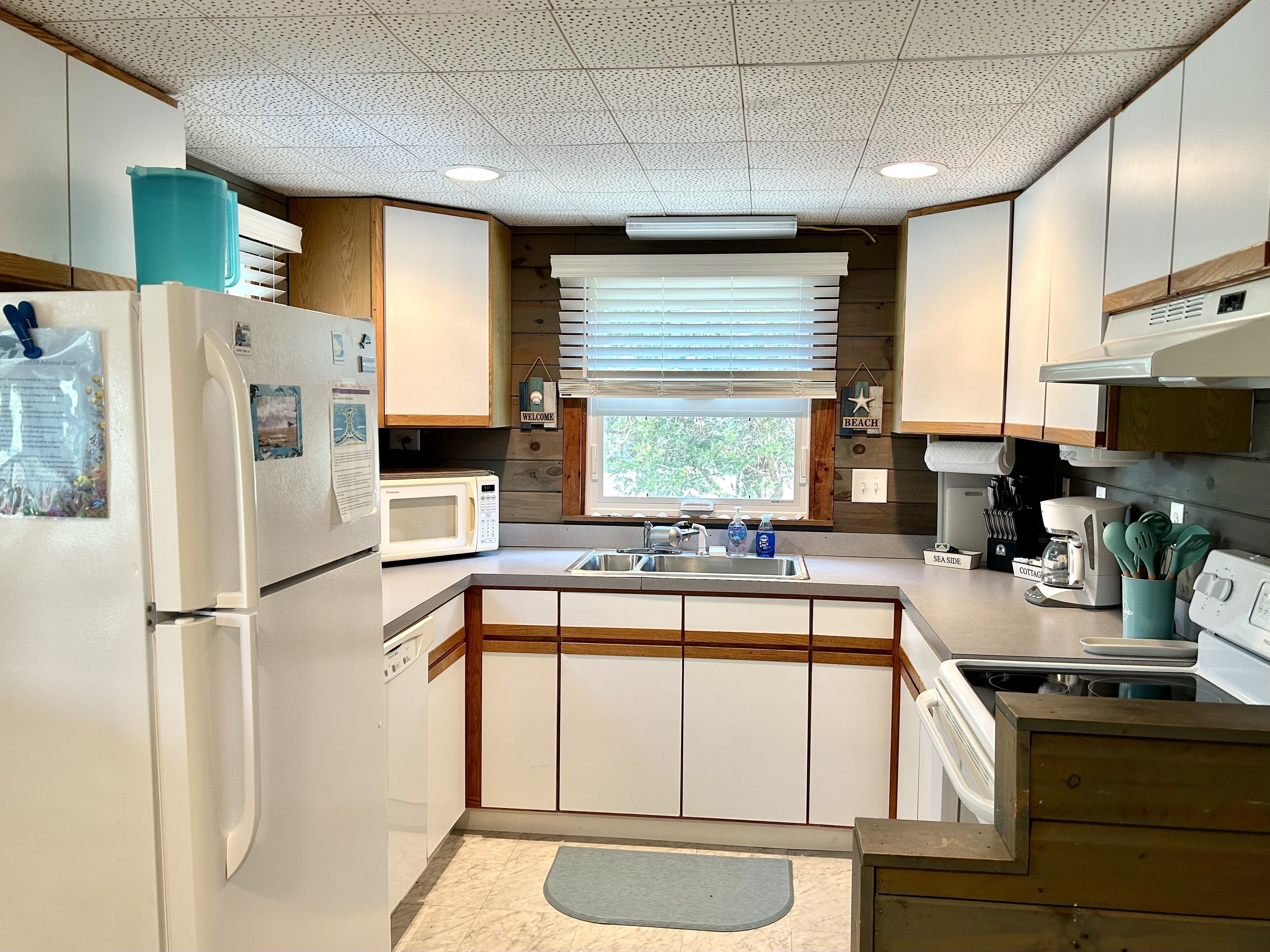 Single family home in small, private, family-friendly oceanside neighborhood Master bedroom with Nectar queen bed; 2nd bedroom with Dream Cloud full; 3rd bedroom with 2 twins. One NEW queen size sleeper sofa & one loveseat in living room; cottage sleeps up to 8. (Note: bed linens can now be rented - send a note if interested. Bath & bath towels supplied by guests.) New window a/c units in each bedroom & 1 in kitchen provide excellent house cooling. Secured wireless internet; washer, dryer, iron & ironing board; hair dryer, 2 cable tvs; dvd player; electric fireplace; picnic table; grill, clothes line; outdoor shower & foot-shower. Plenty of room to relax or play in the private back & front yards! Two screened porches, one open porch. Dishwasher, fridge/freezer, garbage disposal, oven, microwave, coffee maker, Keurig, toaster, blender, crock pot, Pur water filter, dishes, pots & pans, bakeware, utensils, etc. Guests are welcomed to use beach equipment, games, puzzles, books, etc.
