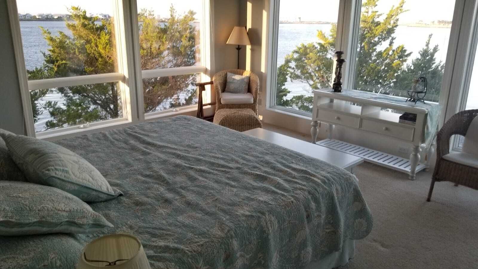 Breathtaking Sunrise-Sunset Views From Waterfront Home with Elevator Enjoy stunning sunrise and sunset views in this home that sits right on the water in a gated community with an associated marina, community pool (open Memorial Day through Labor Day), and tennis court. The guarded beach is a 2 min drive or ~10 min walk along a waterside path that leads directly to a family friendly stretch of shore. Teens can safely walk to the beach and get a head start on soaking up the sun without crossing a road. Water views from practically every room! Bedrooms are spacious with generous windows and water views. King size beds in 4 rooms make for extra comfortable sleeping arrangements. No tossing and turning on uncomfortable mattresses - these are premium mattresses. This house was not previously rented and is truly a home away from home. Sitting in the open living room and kitchen, you can watch the boats and the serenity of the river as it spills into the ocean. The essentially panoramic windows and waterfront location give the impression of being on a cruise ship (without the sea sickness). All new appliances in the kitchen and an elevator can help you bring groceries up or provide access for those with mobility issues. Spacious deck for grilling and enjoying waterfront meals. The 4 burner grill is great for cooking up burgers. Smart TVs in living room and 2 other bedrooms. Bunk bed room has a small fridge and a sleeper sofa that offers queen size mattress. Rinse off the sand with a private, outdoor shower. We've provided some beach toys, chairs, and gear for your convenience. The beach is walkable distance (eat at Big Chill Beach Club) though folks with beach gear will likely want to drive. There's public parking there for small daily fee. Outdoor shower to wash off the sand. Sit on the rocks in the backyard and fish for dinner. The neighborhood is quiet but just a few minutes away from the Bethany Beach boardwalk with shops and restaurants or go north to Rehoboth.There's a community pool and tennis court just a few hundred feet from the house. Explore Delaware Seashore State Park (on either side of the Indian River inlet) for fishing, amazing views, boat charters, kayaking. https://bigchillbeachclub.com/experience/delaware-seashore-state-park/Upstairs - Kitchen, Living Room, King bedroomMiddle Floor- 3 king bedrooms, 1 Queen Bedroom, 1 twin bunk bed room, laundry roomLower - EntryPlease note, linens are not included but the house comes with blankets/pillows.