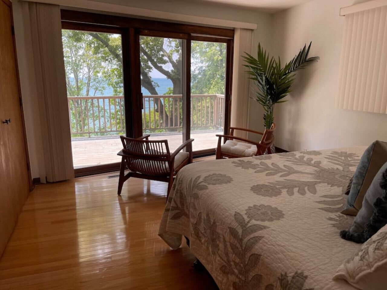 Don't Worry, Beach Happy! Blue water views from every room, open layout, accessible options...perfect for your family vacation or the next trip with your friends.Wonderful beach community with private beach for home owners and guests only. Close to all attractions, casinos, shopping, wineries, breweries, restaurants, water sports. Take a walk, run, or bike ride along Lakeshore Drive right out front of the house.There is an extra long driveway for guest to park. We also have 2 spots to part at in front of the house before driving up to the home on the hill overlooking The Lake.The minimum age to rent is 25. Guest agrees to abide by the Rental Rules at all times while at the property and shall cause all members of the rental party and anyone else guest permits on the property to abide by the following rules which are the sole responsibility of the guest. 2. Maximum Occupancy: The Maximum number of guests in the home is limited to 13 Persons unless approved by the owner. 3. Additional overnight guests are not allowed without the expressed written agreement of owners and may be subject to an additional per-person rental fee. 4. Please be aware that this is not a “PARTY HOUSE.” Please enjoy yourself, create beautiful memories, and take care of the home we love. 5. SMOKING/VAPING allowed outside only. Please dispose of all cigarette butts. 6. Keep the property and all furnishings in good order. If you should move anything around please put it back where it was. RESPECTFULLY WHEN MOVING ANY FURNITURE PLEASE LIFT THE FURNITURE SO THAT IT DOES NOT SCRATCH THE FLOORS. 7. We make every effort to maintain an immaculate home for you to enjoy. To keep the carpets and floors clean and free from tons of sand we ask that you remove your shoes before entering. 8. Please be respectful of our neighbor’s peace and quiet. 9. Everything in the home and garage is available for your use. Please take care of our fun things to enjoy and return them where they belong before you leave. 10. The home is privately owned; the homeowners are not responsible for any accidents, injuries, or illness that occurs while on the premises or its facilities. By accepting this reservation, it is agreed that all guests are expressly assuming the risk of any harm arising from their use of the premises or others whom they invite
