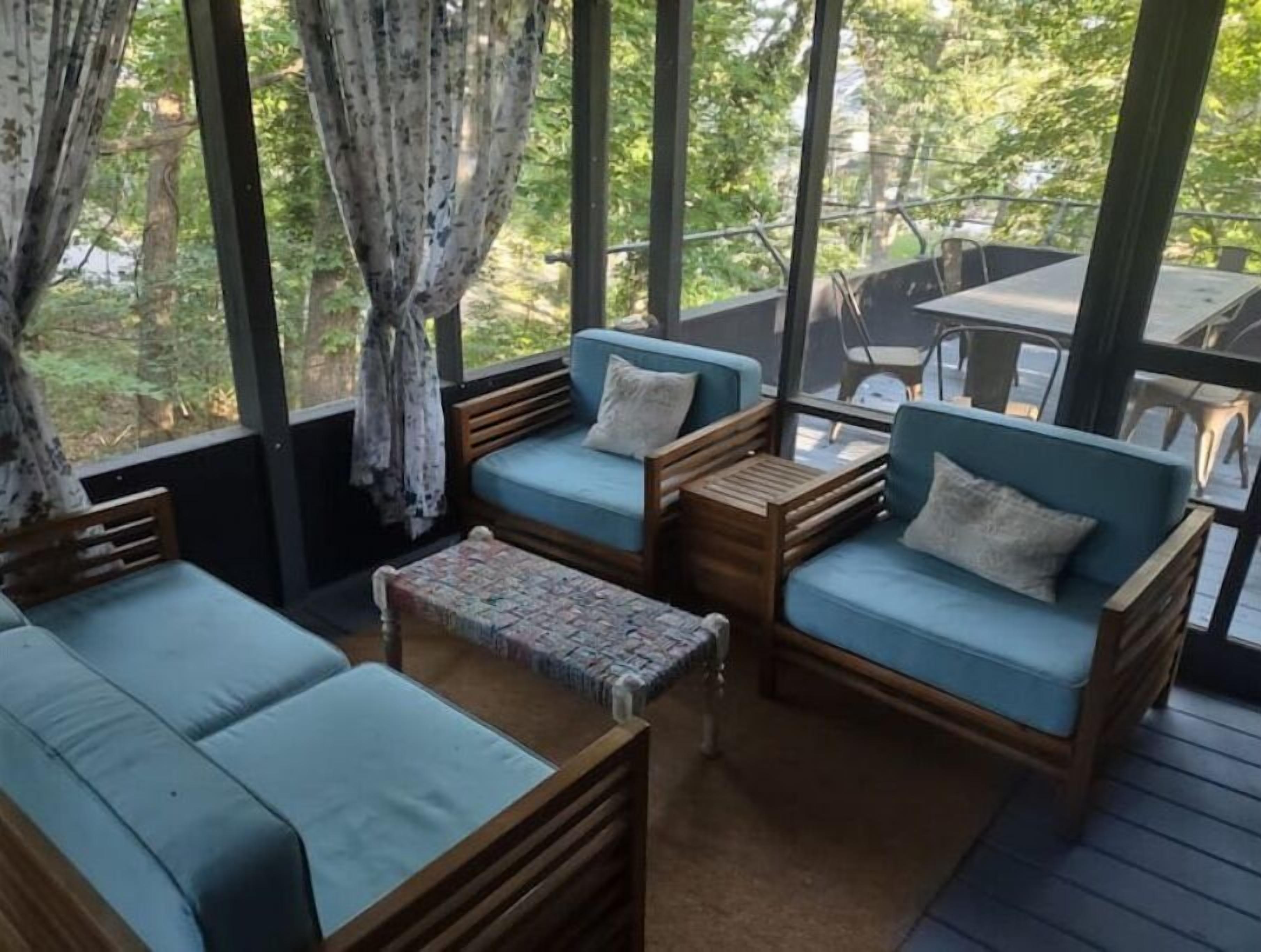 Michiana Living - One Block to Beach The house is one block to the beach stop 41 1/2 and is located in the quaint Village of Michiana. This mid century modern home with floor to ceiling windows in the living and dining room creates a spectacular panoramic view. The open floor plan allows for families to gather in the Kitchen, Living and Dining rooms with ample space and also enjoy the screened in porch and huge open deck area. Our home has a fireplace and smart TV in the great room and a game room/tv room on the lower level. Spend the day relaxing at the beach then come back for dinner and relax by the outdoor fire pit. The spaceOur house sits on a dune and has an amazing views of the neighborhood and peek a boo views of the lake which is easily accessible. Many times you can hear the waves crashing on the shore when you walk outside.We love sitting in the big open living room and kitchen and looking at the trees through the huge windows. We have a gourmet chef's kitchen with a huge island for entertaining with a pantry full of spices for your cooking enjoyment. At night it gets really dark and the sky fills with stars.We love going to the beach at night, laying on a blanket in the summer and staring at the stars. There are millions in the sky!Guest accessThe entire home is available to our guests.Other things to noteIn order to rent our home, The Village of Michiana requires that all guests document who will be at the home as well as acknowledge the Village of Michiana rules and regulations. After booking, I will ask for your email address and send the document to your for signature acknowledging who will be staying as well as the rules.