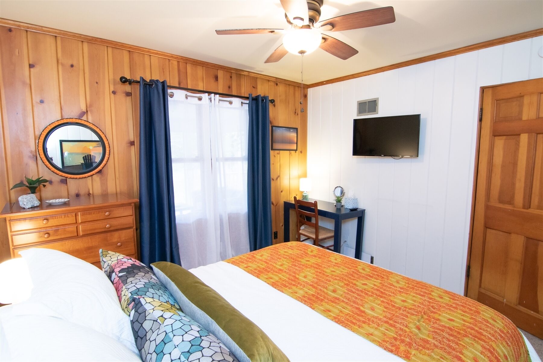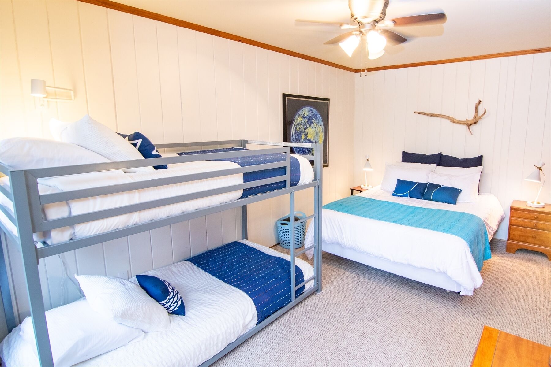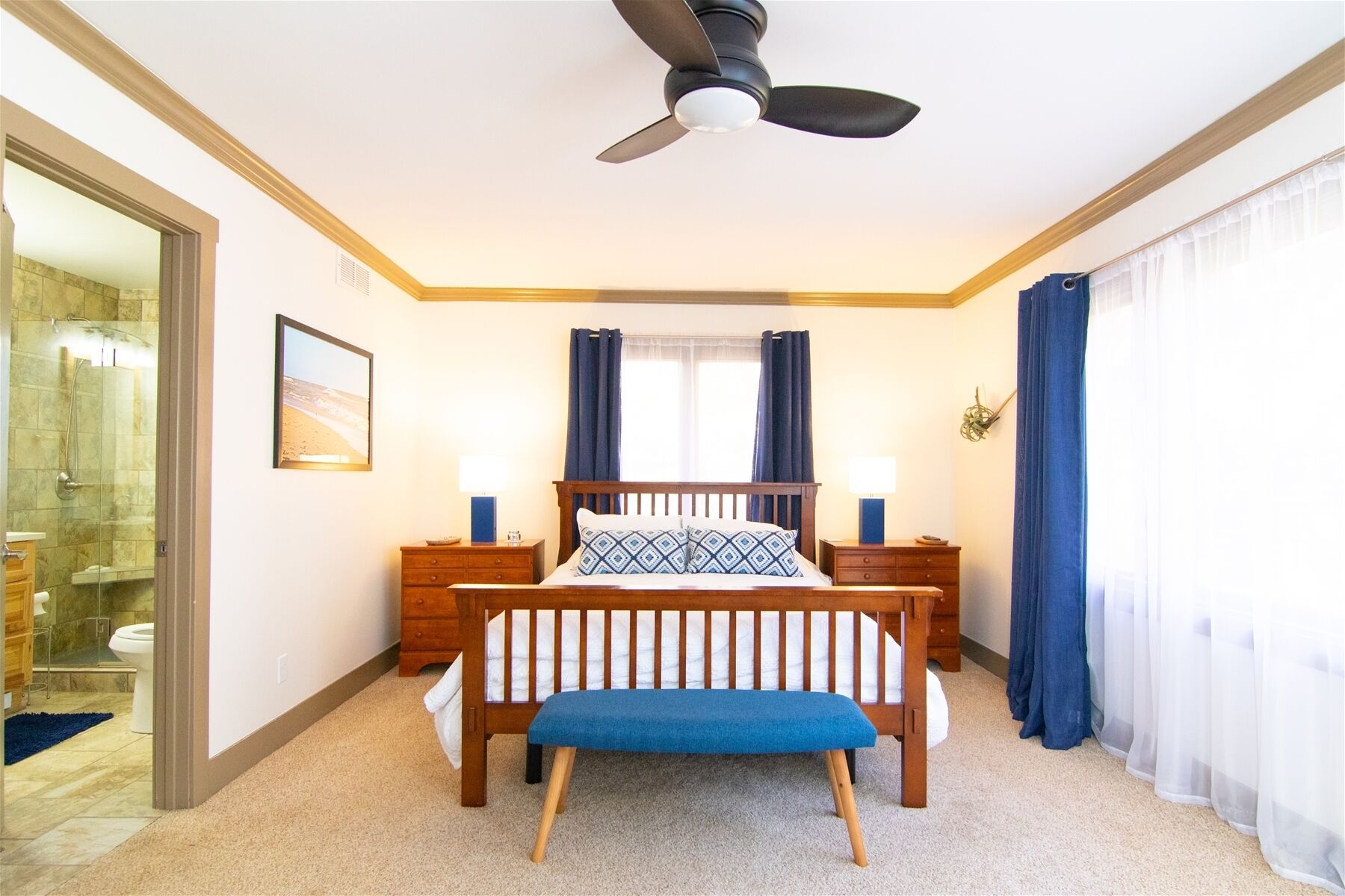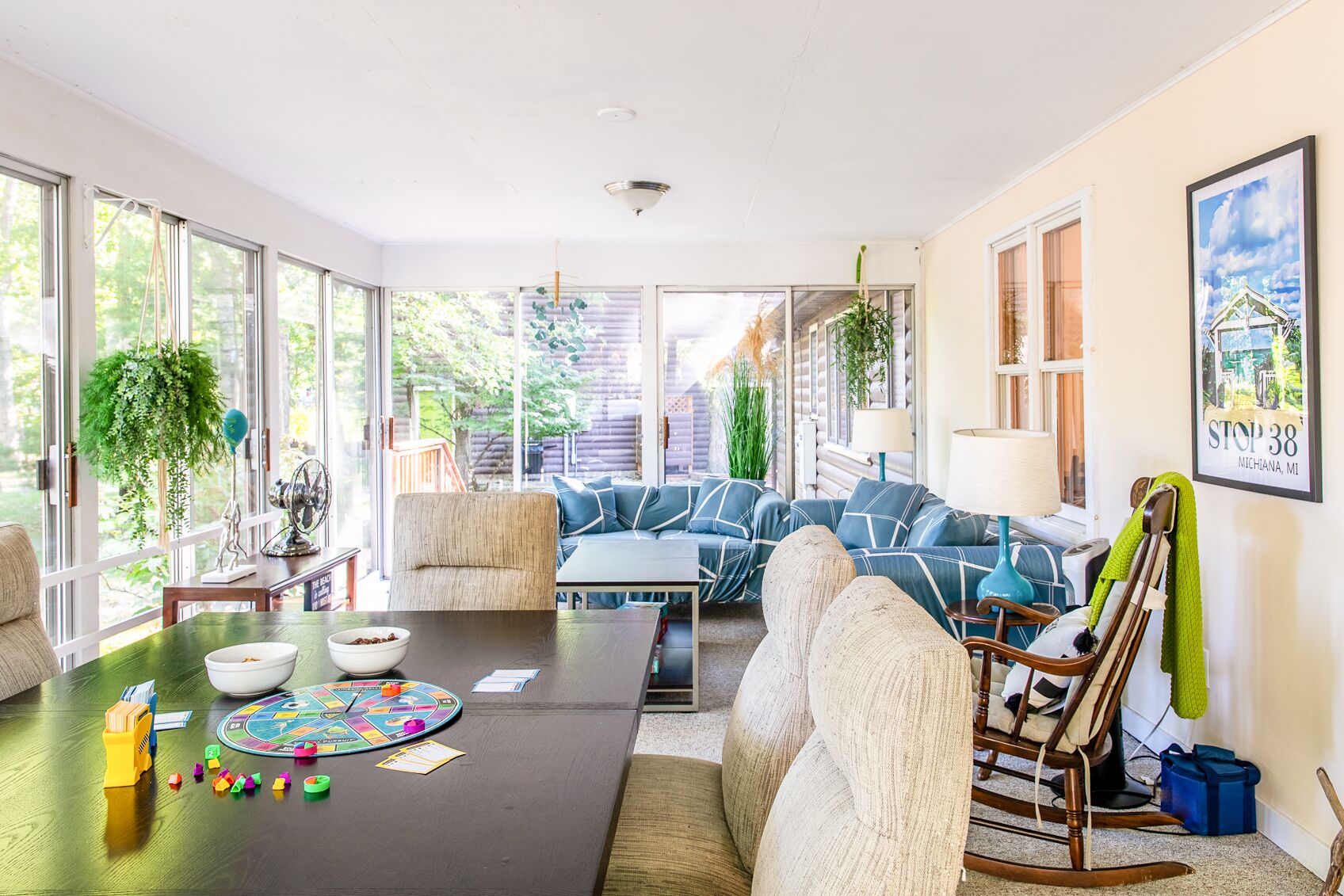 Home with Carriage House: 550 Ft from Beach, Ping Pong, Pets Allowed! Welcome to Wade's Cabin & Lookout, a unique property with 2 units, offered by Third Coast Vacations, Harbor Country and Michiana's favorite local vacation rental company. Unit One: Wade's CabinAs you pull up to Wade's Cabin you'll hear the Lake Michigan waves lapping on the beach just steps from the home. Enter this 3 bedroom, 3 bathroom, 2,200 sf. ranch home through the front door off the spacious front deck and you're on vacation!To your right is the master bedroom with a Queen bed and En Suite bathroom, featuring a two-person/dual showe!. To your left you'll find a large work space with a dual workstation and 2 monitors a vinyl record player ( with vintage vinyl collection!) and cozy seating.A few more steps to your right, is a hallway that leads to the home's remaining two bedrooms. The first has a Queen bed with a Smart TV, and the other features twin bunk beds and an additional Queen bed.Between the two bedrooms is the newly renovated main bathroom for the first floor of the home. Move further into the home into a cozy living space, dining area, and a large and modern kitchen with prep space, new appliances, and bar top seating. Just off the kitchen is an oversized, three seasons room with cozy sofas and a large table perfect for board games. Head downstairs and check out the cozy entertainment area, perfect for movie nights or a young adult hang out space. The entertainment area features a 65” SmartTV with a Wii system, and a putting game! The basement also features a newly renovated bathroom with shower and a full-size washer & dryer. Accessible from the basement is a garage gameroom conversion complete with with a ping pong table perfect for some great rainy-day fun!Wade’s Cabin also delivers outdoor fun with a second deck located off of the three-seasons room with an oversized, gourmet gas grill; an outdoor seating area with an outdoor dining table and oversized firepit. A large outdoor storage bin holds beach chairs, beach wagon, cornhole game and bocci ball for extra vacation fun. Finally, 4 cruiser bikes are available for quiet rides along the lakefrom or the tree lined streets of Michiana.Additional Wade’s Cabin amenities include high-speed internet, whole house air purifier and a wholehouse generator. Unit Two: Wade's LookoutJust a few feet away from the main house is Wade's Lookout, a modern, eclectic, 3 bedroom, 3 bathroom, 2-story vacation rental. When you enter through the main door on the side of the home, you’ll be on the ground level of the vacation home. On the ground floor is a cozy bedroom with a Queen bed, off to your left are the stairs to the second floor and the door the garage game room, which features an indoor Ping Pong table, seating and a bunch of yard games for you to use. The ground level bathroom is only accessible via the garage game room and features a shower and stackable washer and dryer. If you head upstairs, you’ll be in the main living space of Wade’s Lookout which includes playful, color decor and an open plan living space with kitchen, dining, and entertainment area. Off of this main living area is a full bathroom and two bedrooms. The master bedroom boasts an ensuite bathroom and a balcony with a view of the backyard and outdoor fireplace. The other second floor bedroom includes a Queen size bed and a Full size loft bed. Open the window and hear the crash of Lake Michigan waves!Wade’s lookout also includes high-speed wifi and a whole house air purifier. The beautiful Outdoor living spaces for the Lookout include an oversized, outdoor fireplace, picnic table, basketball hoop and an outdoor shower, all available to the guests of this property. Wade’s Cabin & Lookout are a quick 550 ft walk to the gorgeous beach at Stop 38, and 1000 ft walk to the beach at Stop 37.Also nearby, less than a mile away, is the newly renovated Michiana Village park and clubhouse. The park boasts a bocci ball court, basketball court, pickle ball courts, and a brand new playground! Check out the Village of Michiana website for photos and details!This listing is for those looking to rent Wade’s Cabin and Wade’s Lookout for a total of 6 bedrooms, 6 bathrooms and occupancy up to 16. Wade’s Cabin and Wade’s Lookout are also available for rent separately during select periods throughout the year. Plenty of parking between the two units! Parking for up to 6 cars in 2 parking pads located along Michiana Drive; and parking for up to 4 cars located in the driveway for Wade’s Lookout on Ponchartrain Drive.Want to learn more about this home and the area? Check out the aerial / walkthrough video footage for this home. For more videos of the home (search by property name), beaches in the area, and other local attractions and events, please visit our Third Coast Vacations Youtube Channel, If the link doesn't work, just search Youtube for Third Coast Vacations.