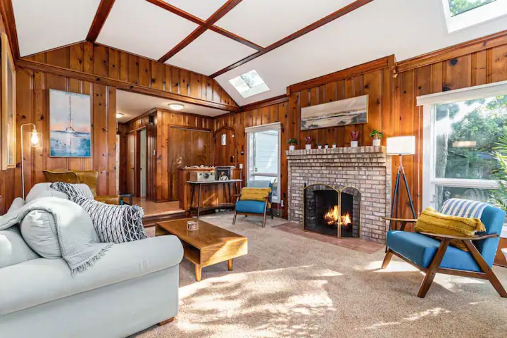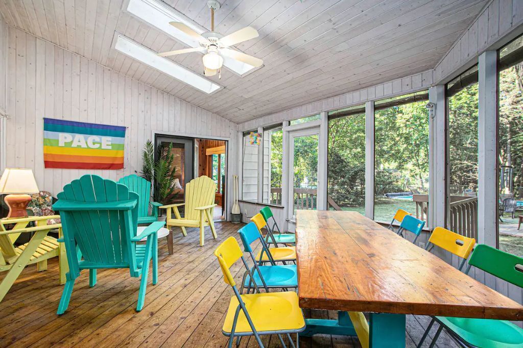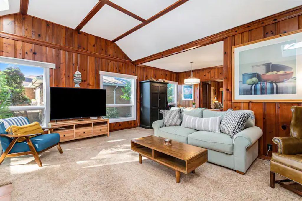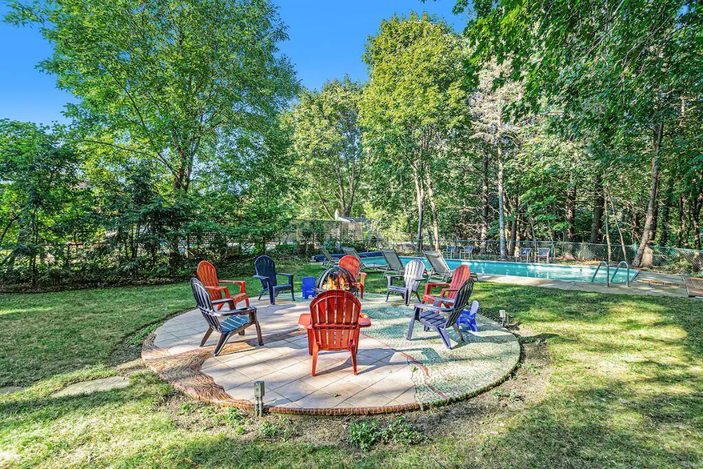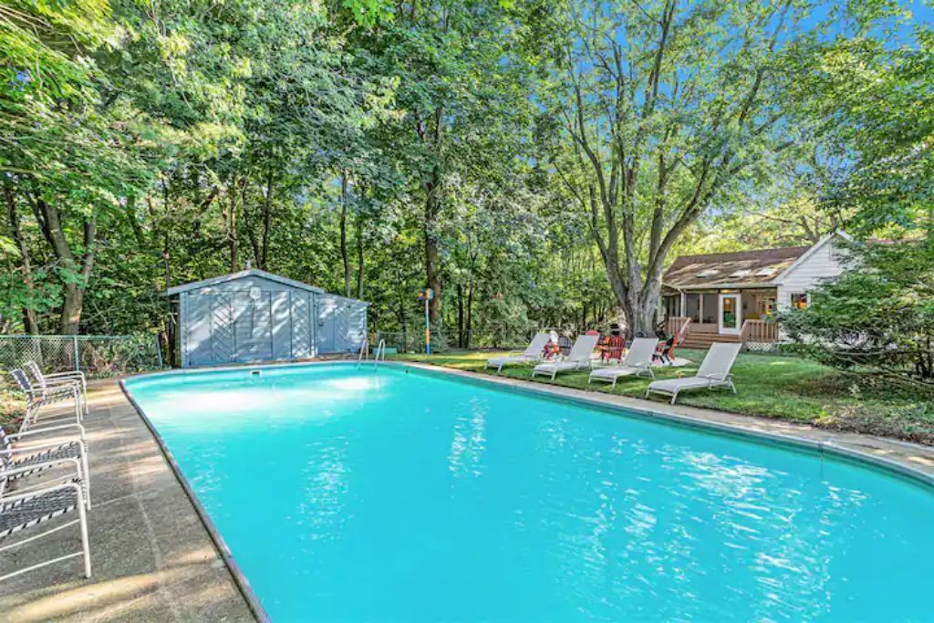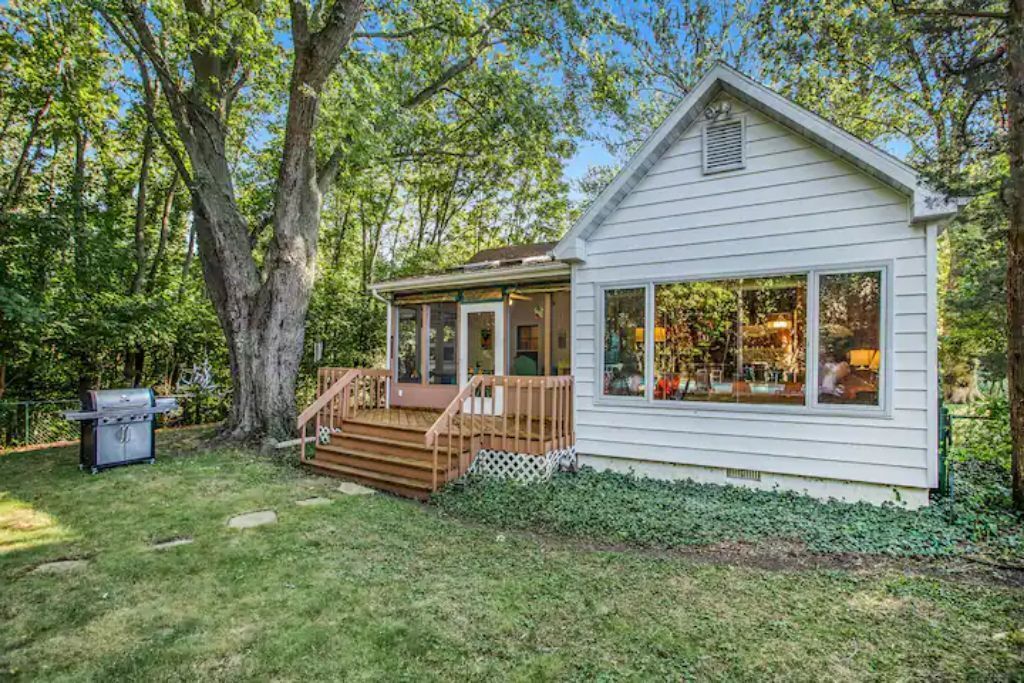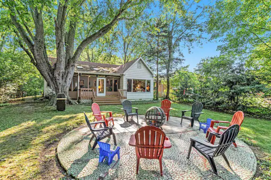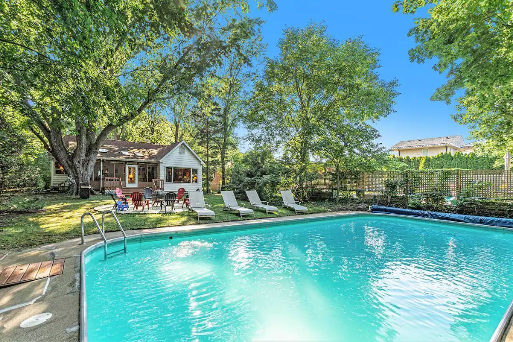 Comfy Cottage- NEW! Heated Pool, 1 Block to Beach! Lot's of space with 13 beds! ***POOL IS OPEN AND HEATED NOW THROUGH MID-OCTOBER!Instantly feel at home in this quintessential Classic Lake Cottage with heated pool! So close to the lake you’ll catch glimpses of it from the front porch. Bring your family and friends as there’s plenty of space with 9 beds, kids area, extra family/TV room, and amazing screened in porch in the back overlooking the lush yard, pool, & fire pit. Imagine kids in the pool, days at the beach, sunsets over the lake, grilling on the BBQ, and S’mores & laughs around the fire.The spaceWelcome to our Comfy Cottage! This is a warm, welcoming home built for easy, comfortable stays.THE COMMON AREASAn adorable picnic table and views of Lake Michigan welcome you as you make your way up the stairs to the front porch. Enjoy a meal or a book here, catching glimpses of the lake and hearing the soft sound of the waves. Head to the front door and feel instantly at home as you enter. The vibe is mid-century-modern meets classic lake cottage.The main floor living area is bright with windows everywhere and an open living room that flows into the dining area and kitchen. Enjoy a movie on the new 65” smart TV, listen to a record on the retro sound system (or stream from your phone), or enjoy one of our many family board games around the table.The kitchen comes fully stocked with everything you need to create a delicious meal together. Take advantage of the Coffee & Tea Station, Cocktail Station, and small library of classic cookbooks.The main level has two bathrooms- one full bath with bathtub and one half bath.Out back just off the kitchen you find a perfect three season hangout spot in the screened-in porch. There’s additional dining space here for 10 or more and Adirondack chairs for lounging. The space overlooks the back yard with it’s beautiful towering trees, artistic fire ring area, gas grill, and of course that beautiful pool!The heated pool opens during April each year and remains open at least until the start of October, and depending on the weather sometimes as late as mid-October.There’s more spots for lounging and playing in the bright, daylit downstairs area. In the downstairs family room you’ll find a large sofa and TV with smart box. Located opposite is the Kids Corner with play area, craft table, and lots of toys, activities, & books for little ones. There’s also a lending library for adults and tons of board games for the whole family. A second full bath with shower and the spacious, clean laundry room are located just around the corner.THE SLEEPING AREASThere are three bedrooms on the main floor, one on the bottom level, and one located in a detached building just steps away from the main house.Bedroom 1 features windows all around with beautiful views of the back yard, a king size bed, chest of drawers, and closet, plus an en-suite half-bath.Bedroom 2 has a queen size bed, large dresser, and 2 closets. The full bathroom with tub is located just next to Bedrooms 2 and 3.Bedroom 3 also has a queen size bed, dresser, and closet. The full bathroom with tub is located just next to Bedrooms 2 and 3.Bedroom 4 Is located downstairs and features a large day lit window, two sets of twin bunk beds (4 beds total), drawers, and closet. The large downstairs full bath is just around the corner.Bedroom 5 – “The Treehouse”. This unique bedroom is detached from the main house, located amidst the trees above the garage. The Treehouse is on the same elevation as the main floor of the main house. The room features 6 twin beds, a desk, drawers, and ample floor space. There is an adorable and effective electronic fireplace (no flame) that heats the space in the cold months. There is not central air conditioning in this room, however, due to it being well shaded and well insulated and having a ceiling fan and many opening screened windows, the room stays cool and comfortable all summer long. The nearest bathroom is located just a few steps away in the main house.The Village of Michiana requires all guests to fill out and sign two brief forms before staying at any rental in the village. We have made this as easy as possible for our guests! After your confirmation we will send you a link where you can instantly e-sign the forms online.Guest accessYou have full access to the entire property, including the front and back yards and the detached garage. Exceptions are a locked owner's closet and the workshop in the basement. Also, currently one of the garage spaces is being used for storage and one is available to park a vehicle.Other things to noteOur place is very family friendly with toys and a play area for younger kids and lots of board games, books, and outdoor space for kids & adults of all ages. And if you have little ones, we also have a high chair and Pack n' Play available for your use.
