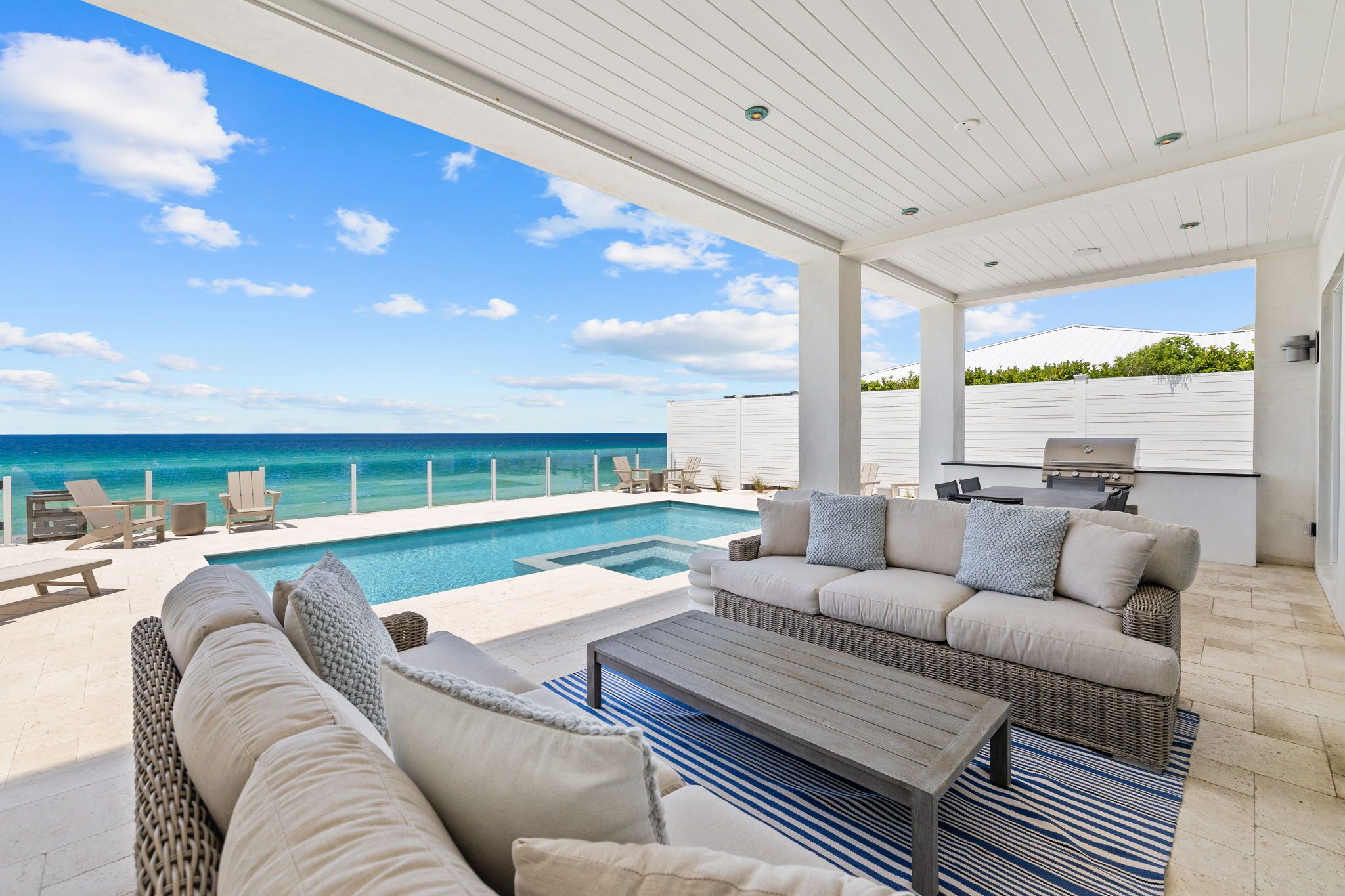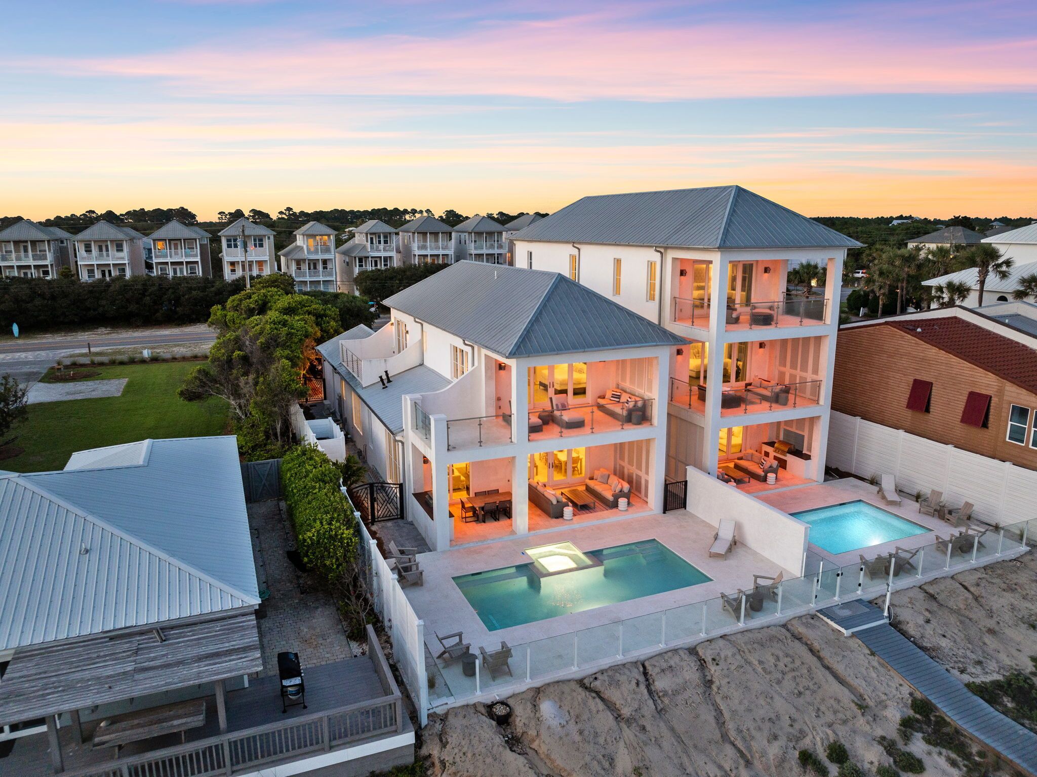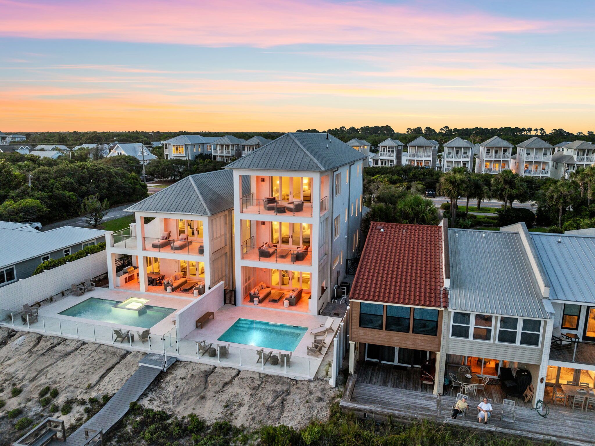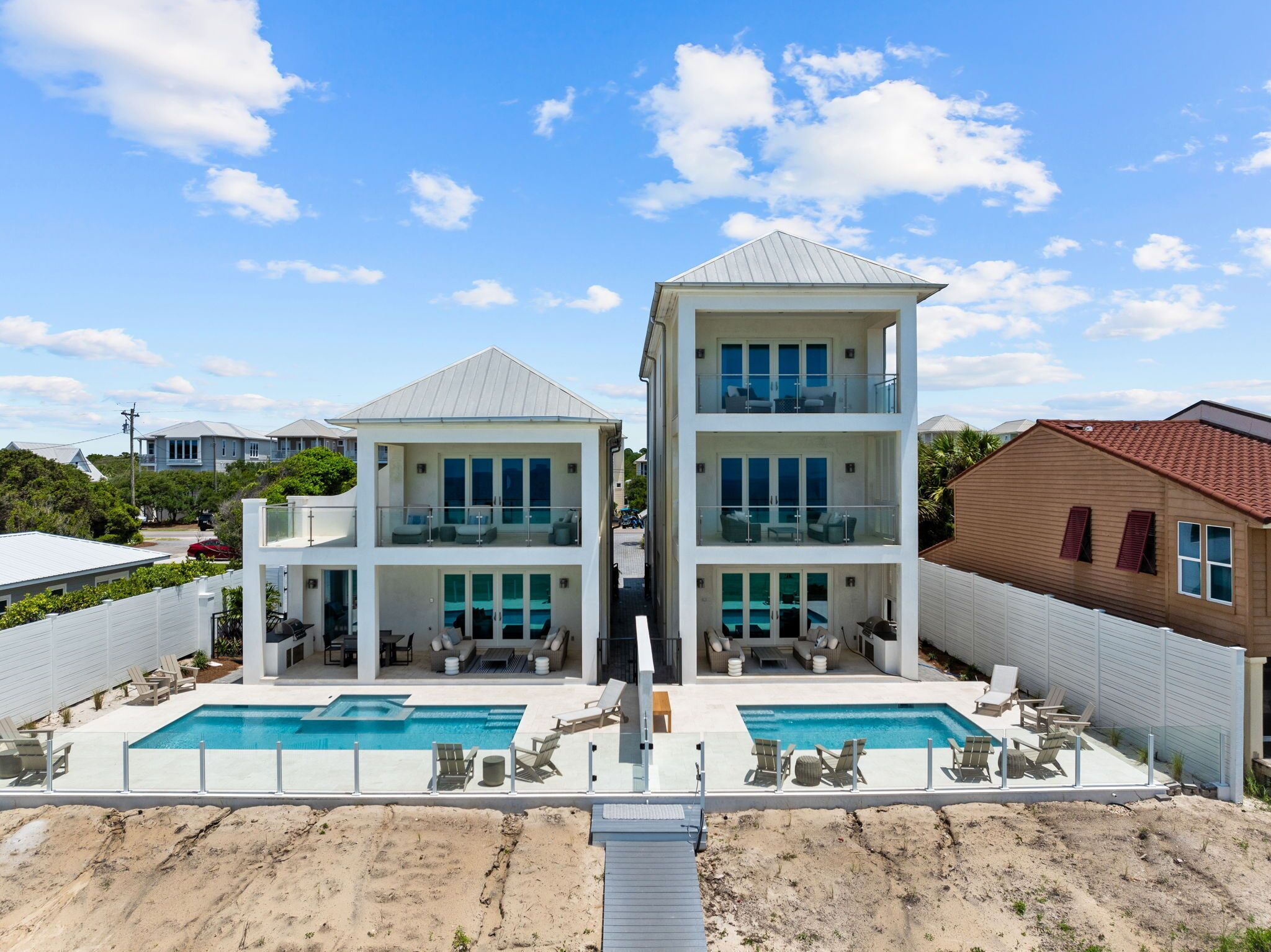 Book Now for a Fall Visit! Gulf Front with Panoramic Views! Sleeps 35! Golf Cart and Bikes! HOME HIGHLIGHTS:- Gulf front- Private Pool & Sitting Spa *Pool heating is available from October 1st through May 1st for an additional fee of $100 per day.- 180 Degree Gulf Views from All 3 Floors- Private Beach Walkover- Complimentary beach setups each morning include 8 beach chairs and 4 umbrellas (Service provided March 1 - October 31, 2024)- Elevator Between All Three Floors *(30A Ocean Beachfront only)- Sonos Sound System & HDTVs- Outdoor Natural Gas Grill- 12 Adult bikes- 2 6-Seater Golf carts- Peloton bikes- Complete Clean Linen Participant - All linens, including comforter covers, are laundered upon every checkoutDETAILS: Delight in an idyllic Gulf-front getaway at 30A Ocean Beachfront and 30A Sandy Beachfront. Nestled in the dunes of Seacrest Beach, spend blissful days basking in the sun on white-sand beaches and relishing the tantalizing cuisine of local eateries. With sublime views of the tranquil Gulf waters from the private pool and a private walkover leading to the beach behind both homes, guests are set to experience the vacation of a lifetime.Discover immaculate interiors infused with chic beach accents and polished Travertine tile floors in the open-concept great rooms of both homes. Sliding glass doors with delightful views of the shimmering Gulf create an ethereal backdrop as guests entertain. Luxury Thermador appliances in the spacious, fully equipped kitchens tempt cooks of every level to craft a delectable meal. Both homes feature 8-person dining tables and seating at the kitchen breakfast bar. Plush, double sofas in the living area invite guests to unwind, and the 65” Smart TV and Sonos soundbar set the stage for unlimited entertainment. Outside, an enchanting oasis with 2 natural gas grills, comfortable seating areas, alfresco dining tables, and private pools offer the ultimate spot to savor the sun and salt-tinged air.Perfect for large families and groups, the beach homes collectively provide exceptional accommodations for 34 guests with a total of 11 bedrooms and 8 full bathrooms. A mix of pleasant bunk rooms, elegant guest bedrooms, distinguished primary bedrooms, and patios with Gulf views are on each of the levels.Revel in the captivating Gulf-front beauty of 30A Ocean Beachfront and 30A Sandy Beachfront. Private parking is available in the driveway, plus 12 complimentary adult bikes and 6-passenger golf carts. A private beach walkover leads to a public beach off the back patios. Book these phenomenal beach homes today!30A Ocean Beachfront:SLEEPING ARRANGEMENTS: (SLEEPS 18):FIRST FLOOR:- Guest Bedroom: Two Twin BedsSECOND FLOOR:- Guest Bedroom: King Bed and Queen Sleeper Sofa, Private Bathroom with Shower Only- Guest Bedroom: King Bed, Shared Bathroom with Shower/Tub Combo- Guest Bedroom: Twin-over-Twin Bunk Bed, Shared Bathroom with Shower/Tub ComboTHIRD FLOOR:- Primary Bedroom: King Bed and Queen Sleeper Sofa, Private Bathroom with Shower/Tub Separate- Guest Bedroom: King Bed, Private Bathroom with Shower Only- Guest Bedroom: Twin-over-Twin Bunk Bed30A Sandy Beachfront:SLEEPING ARRANGEMENTS: (SLEEPS 17):FIRST FLOOR:- Guest Bedroom: One Twin-over-Twin Bunk Bed, Two Full-over-Queen Bunk Beds, and a Twin Sleeper Sofa, Private Bathroom with Shower Only- Guest Bedroom: King Bed, Private Bathroom with Shower OnlySECOND FLOOR:- Primary Bedroom: King Bed, Private Bathroom with Shower/Tub Separate- Guest Bedroom: King Bed, Private Bathroom with Shower Only*Please note that Gulf-front bonfires are not permitted at this location per Walton County regulations.*The beach before 30A Ocean Beachfront and 30A Sandy Beachfront is not privately owned.
