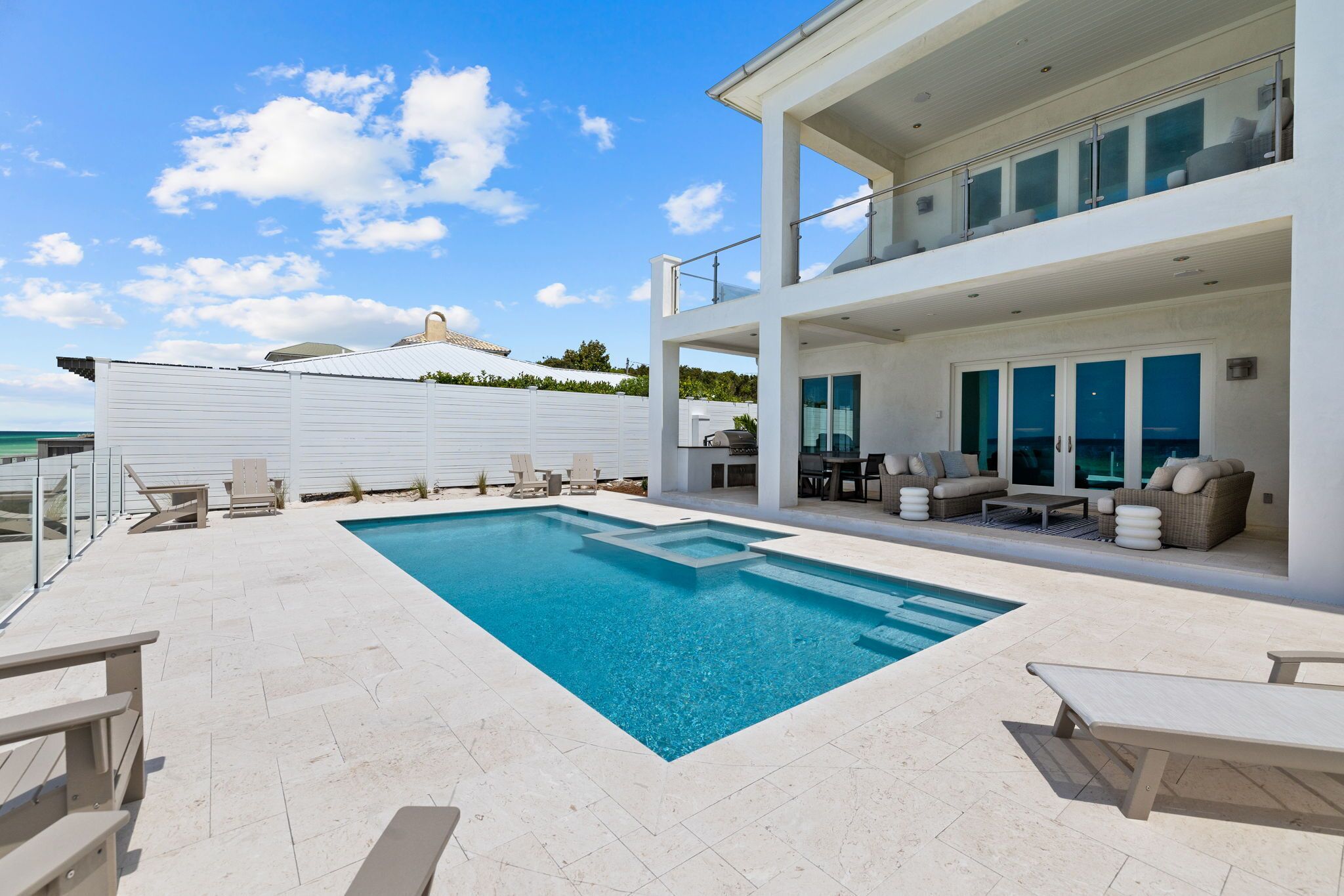 Book Now for a Fall Visit! Gulf Front with Panoramic Views! Sleeps 35! Golf Cart and Bikes! HOME HIGHLIGHTS:- Gulf front- Private Pool & Sitting Spa *Pool heating is available from October 1st through May 1st for an additional fee of $100 per day.- 180 Degree Gulf Views from All 3 Floors- Private Beach Walkover- Complimentary beach setups each morning include 8 beach chairs and 4 umbrellas (Servic...