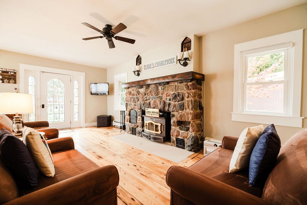 This house is a 3 bedroom(s), 4 bathrooms, located in East Jordan, MI. Welcome to Escape by the Lake, the perfect home to create everlasting memories! Enjoy you own private 117 feet of lake front with dock and mooring on the glistening shores of Lake Charlevoix's South Arm. Paddle boards, kayaks and a hot tub added too. This lovely, updated home sleeps 10 comfortably and comes fully equipped with everything you need. We are conveniently located near the Boathouse (.9 miles) and Castle Farms (10 miles) for weddings or events!! Boyne Mountain only 13 miles away!All guests must complete a Guest Rental Agreement, ID verification, and Security Deposit in order to receive Arrival Instructions. Details of the Guest Rental Agreement can be found in the House Rules.We live locally and are available in person for any emergencies. Otherwise we are only a text or phone call away with any questions you have.Located on beautiful Lake Charlevoix. 2 minutes to downtown East Jordan. 12 minutes to Castle Farms15 minutes to Downtown Charelvoix20 minutes to Boyne Mountain Ski and GolfGuests have access to the whole home. The pole barn on the property is not available for use.Escape on the Lake ensures just that... you are directly on the waters of Lake Charlevoix. No road to cross. Outdoor amenities: • Hot tub• 3 kayaks• SUP Stand Up Paddle Board• Life Jackets• Cornhole• Gas firepit• Comfortable sectional sofa• Grill• Adirondack chairs• Lush grass for playing around• Dock • Mooring for tying up your boat• Sandy bottom of Lake Charlevoix • Great for swimmingIndoors: Private Upstairs: You will be surrounded by luxury in the private master suite offering a steam shower, heated floors, two closets and spectacular infinity views from your cozy bed. Stream on the TV using your own log in information. Secondary upstairs: Off of the kitchen you will find a set of stairs leading to two more large bedrooms, 1 King the other 2 queens and a full bath.Main floor: The chef's kitchen comes equipped with a subzero fridge, high end gas range, granite counters, tons of storage and more amazing views! This home has tons of space for a large family offering a living room, family room (with 3 pull out twin sofas), sitting room, two full baths, laundry room and game room on the main level. We look forward to hosting you, SUN or SNOW, and helping you build special memories with your family and friends!Central to many locations: Downtown East Jordan 1/4 mileCharlevoix 18 minutesCastle Farms 13 minutesBoyne Mountain 20 minutesTraverse City 1 hour