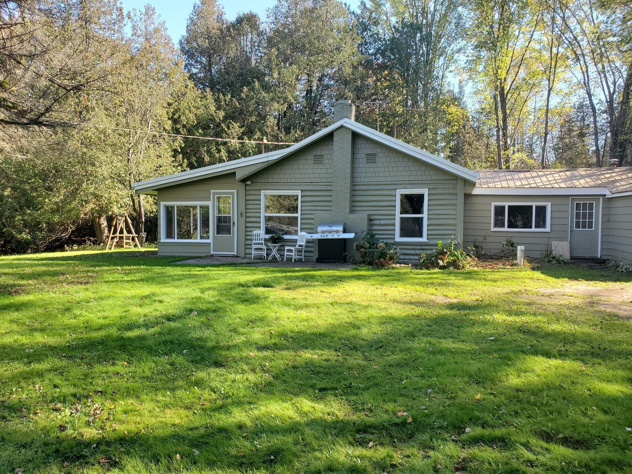 Cabin on Jordan River! Take it easy at this unique and tranquil getaway located right on the Jordan River where you can canoe, kayak, and fish for Trout, right out your front door. Private setting on 1,500 feet of frontage. Lake Charlevoix boat ramp is two miles away. You can canoe/kayak right to Lake Charlevoix from your front door. Boyne Mountain is less than 15 minutes away for skiing and golfi...