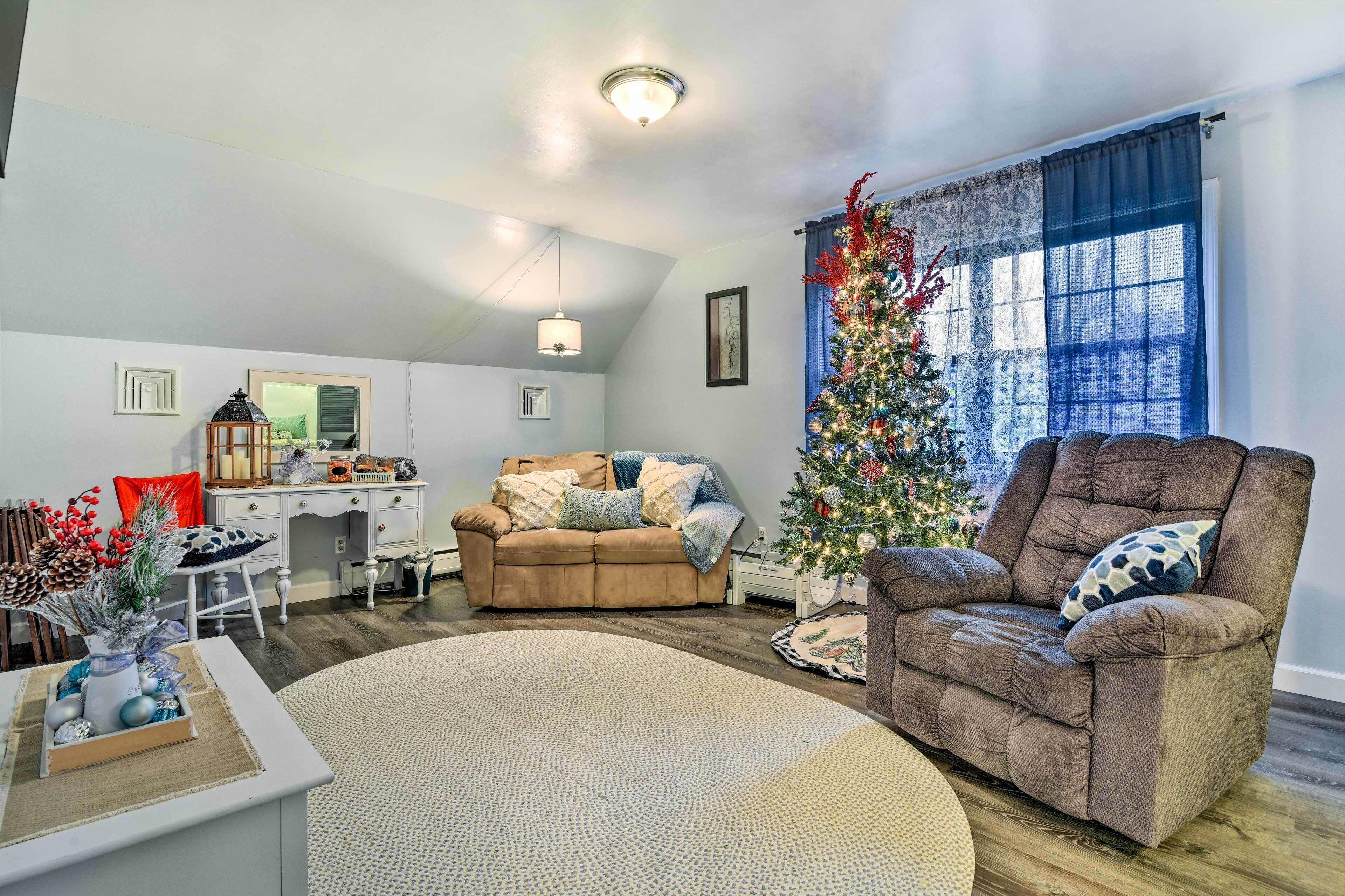 Clio Apt on 3 Acres, 14 Mi to Frankenmuth! Prepare for a relaxing stay at this 1-bedroom, 1-bathroom apartment in Clio. Whether you’re booking a solo getaway or a couple’s retreat, this home has everything for a laid-back trip. The vacation rental is on 3 acres and offers a well-appointed kitchenette, Smart TVs, and a reading nook. There are activities for all seasons nearby, like biking on the Clio Bike Trail, swimming at Bluebell Beach, and winter sports at Mt Holly Ski & Snowboard Resort. Downtown Flint is just a short drive away too!-- THE PROPERTY --Dog Friendly (Dogs Only) | 2 Smart TVs | Board Games | Covered Porch w/ Seating | Bedroom: King Bed | Reading Nook: Full Bed | Additional Sleeping: Twin Rollaway BedMAIN FEATURES: High-top dining table, books, 3-acre property (shared)KITCHENETTE: Refrigerator, hot plate, microwave, toaster, Crockpot, drip coffee maker, electric kettle, cooking basics, dishware & flatware, spices, trash bags & paper towels GENERAL: Free WiFi, central A/C & heating, complimentary toiletries, linens & towels, hair dryer, hangers, iron & board, keyless entry, baby crib, 2 mid-size dog kennelsFAQ: Stairs required for access, 2nd-floor unit, other rental on-site (lower-level unit)PARKING: Driveway (5 vehicles)-- THE LOCATION --LOCAL ATTRACTIONS: Clio Bike Trail (0.9 miles), Clio Bowling Arcade (1 mile), Clio City Park (2 miles), Auto City Speedway (4 miles), Vienna Greens Golf Course (5 miles), Crossroads Village & Huckleberry Railroad (9 miles), Frankenmuth (12 miles)OPT OUTSIDE: Bluebell Beach - C S Mott Lake (10 miles), Riverview Trail (13 miles), Holloway Reservoir (18.5 miles), Ferguson Bayou Trail (23 miles), Mt Holly Ski & Snowboard Resort (30 miles), Saginaw Rail Trail (32 miles)DOWNTOWN FLINT (~14 miles): Flint Farmers' Market, Sloan Museum of Discovery, University of Michigan-Flint, restaurants, breweries & bars, parks, riverfront activities AIRPORTS: Bishop International Airport (17 miles), Detroit Metropolitan Wayne County Airport (91 miles)-- REST EASY WITH US --Evolve makes it easy to find and book properties you’ll never want to leave. You can relax knowing that our properties will always be ready for you and that we’ll answer the phone 24/7. Even better, if anything is off about your stay, we’ll make it right. You can count on our homes and our people to make you feel welcome--because we know what vacation means to you.-- POLICIES --- No smoking indoors (only in designated outdoor area)- Dog friendly (dogs only)- No events, parties, or large gatherings- Firm policy must be at least 25 years old to book- Additional fees and taxes may apply- Photo ID may be required upon check-in- NOTE: This property is located on the 2nd floor and requires stairs for access- NOTE: There is another rental on-site (lower-level unit); other travelers may be present during your stay