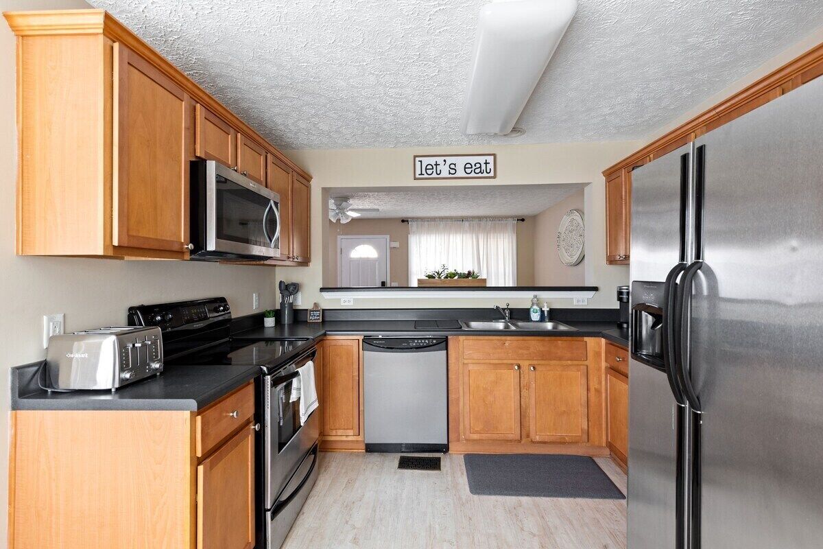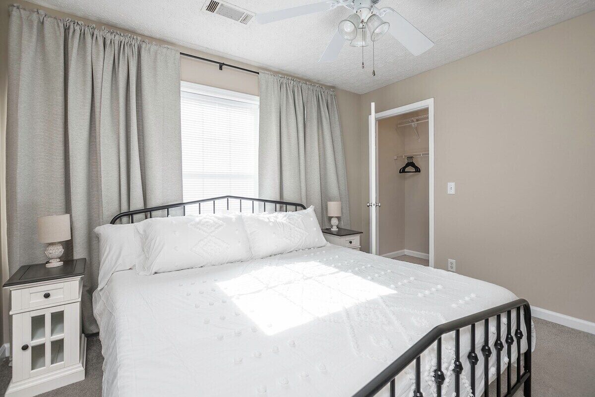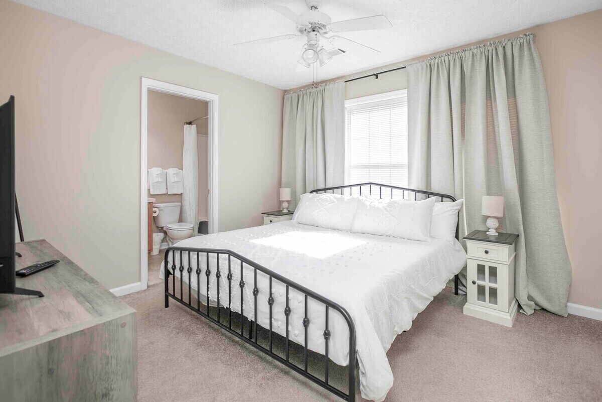Cheerful 3 bed 2.5 bath townhome in Prattville! This townhome offers: spacious living room w/65in Smart TV. Living is open to the fully stocked kitchen w/: Keurig, toaster, blender, bakeware, wine & beer glasses, children’s dishes, grill set for the charcoal grill out back & more. Upstairs are the bedrooms w/King and Queen Nova foam mattresses & two 40” Smart TVs. Pillows are hotel quality! Coffee...