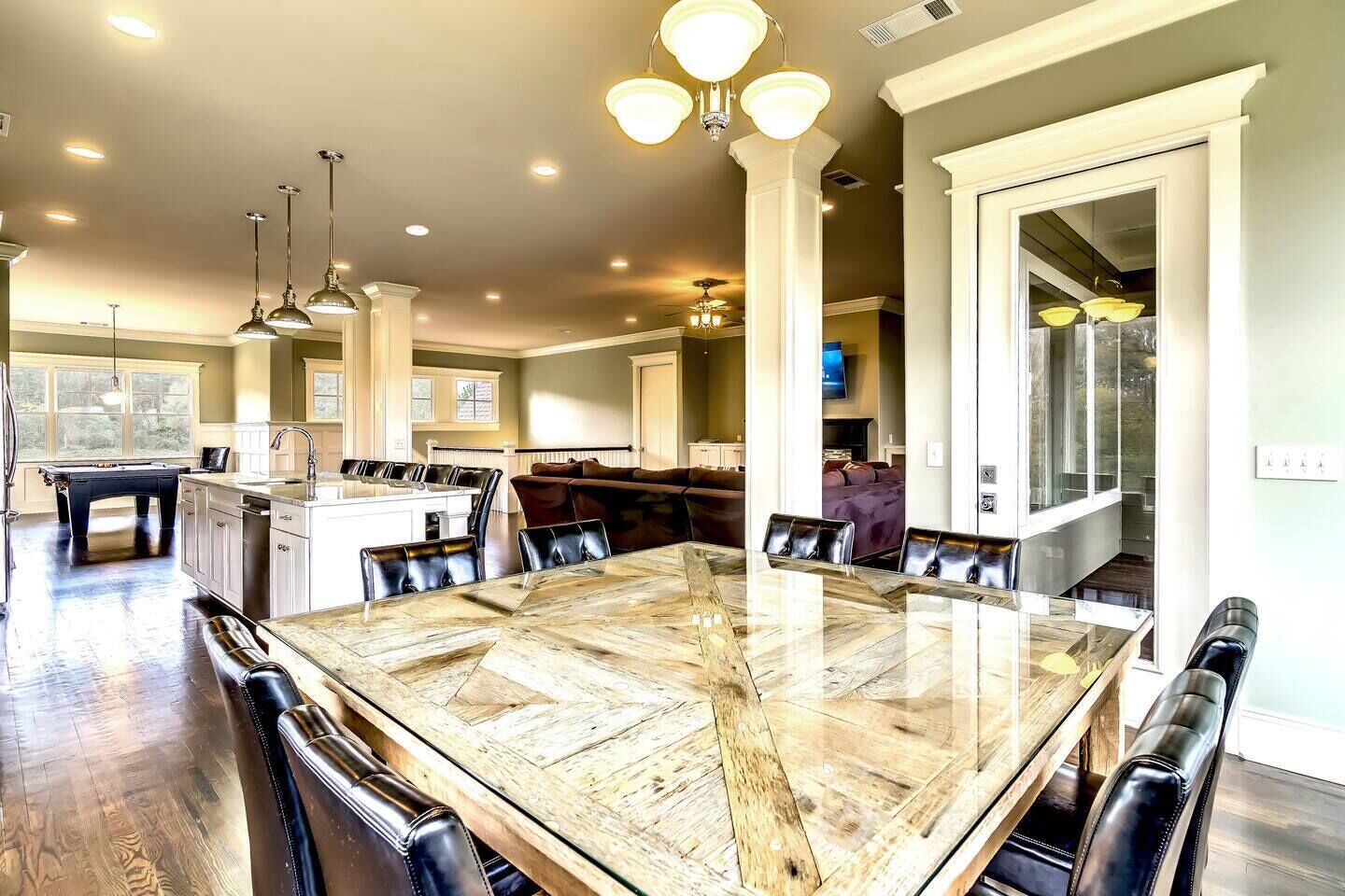 House Built For Groups - 4 Suites, 8 Beds, 5 TV's! Our home was designed and built specifically for groups. The wide open floor-plan allows everyone to be together and socialize. Relax on the sofa, play pool, or enjoy the view with your favorite beverage! The location is very private, right outside the golf course entrance gate, but only 2 miles from shops and restaurants. Amenities include 4 Mast...