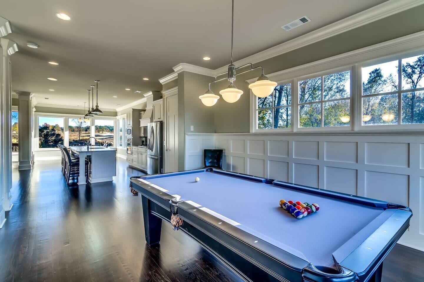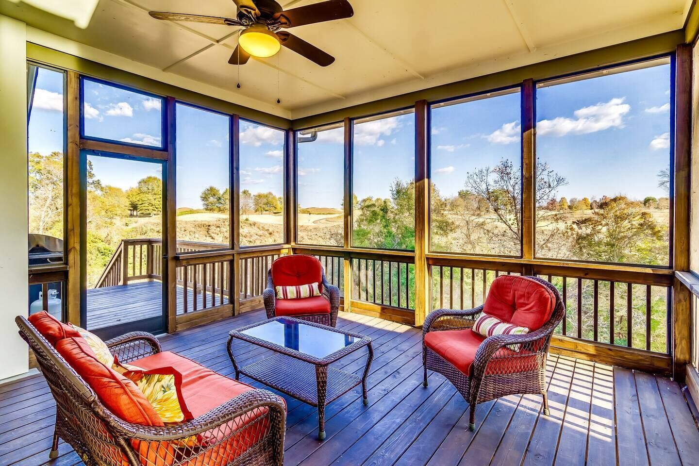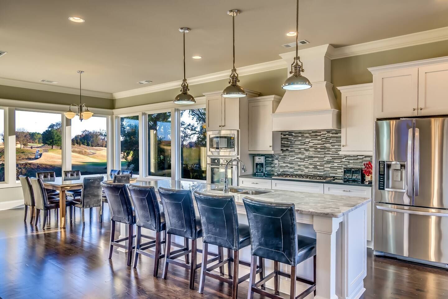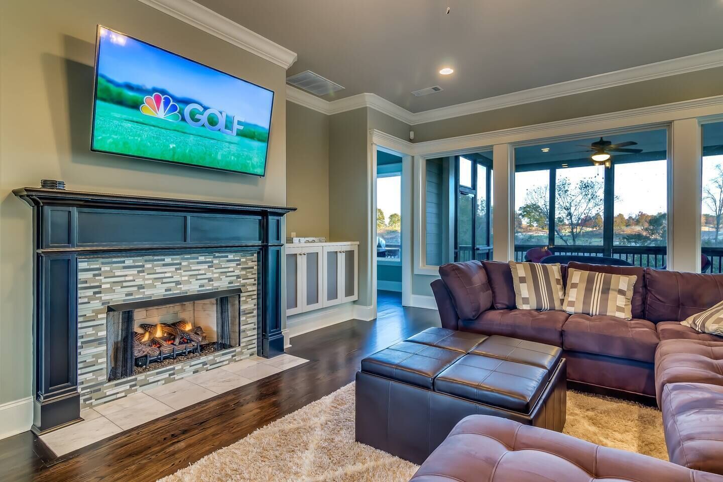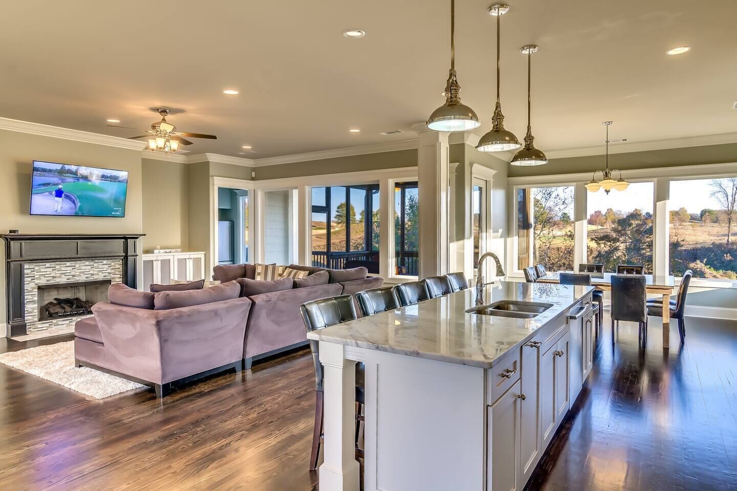 House Built For Groups - 4 Suites, 8 Beds, 5 TV's! Our home was designed and built specifically for groups. The wide open floor-plan allows everyone to be together and socialize. Relax on the sofa, play pool, or enjoy the view with your favorite beverage! The location is very private, right outside the golf course entrance gate, but only 2 miles from shops and restaurants. Amenities include 4 Master Suites (8 queen beds), 4.5 Baths, HUGE "Great Room", Pool Table, 5 HDTV's and Concierge Services. The views from our screened porch are spectacular! Our 2 Oster Golf Houses are side by side with a putting green between them, and have a total of 16 queen beds. The Nicklaus pricing is based on 8 guests, but we allow up to 12. Each additional guest is $125 plus tax, per night. (Note: the fireplace is inoperable)