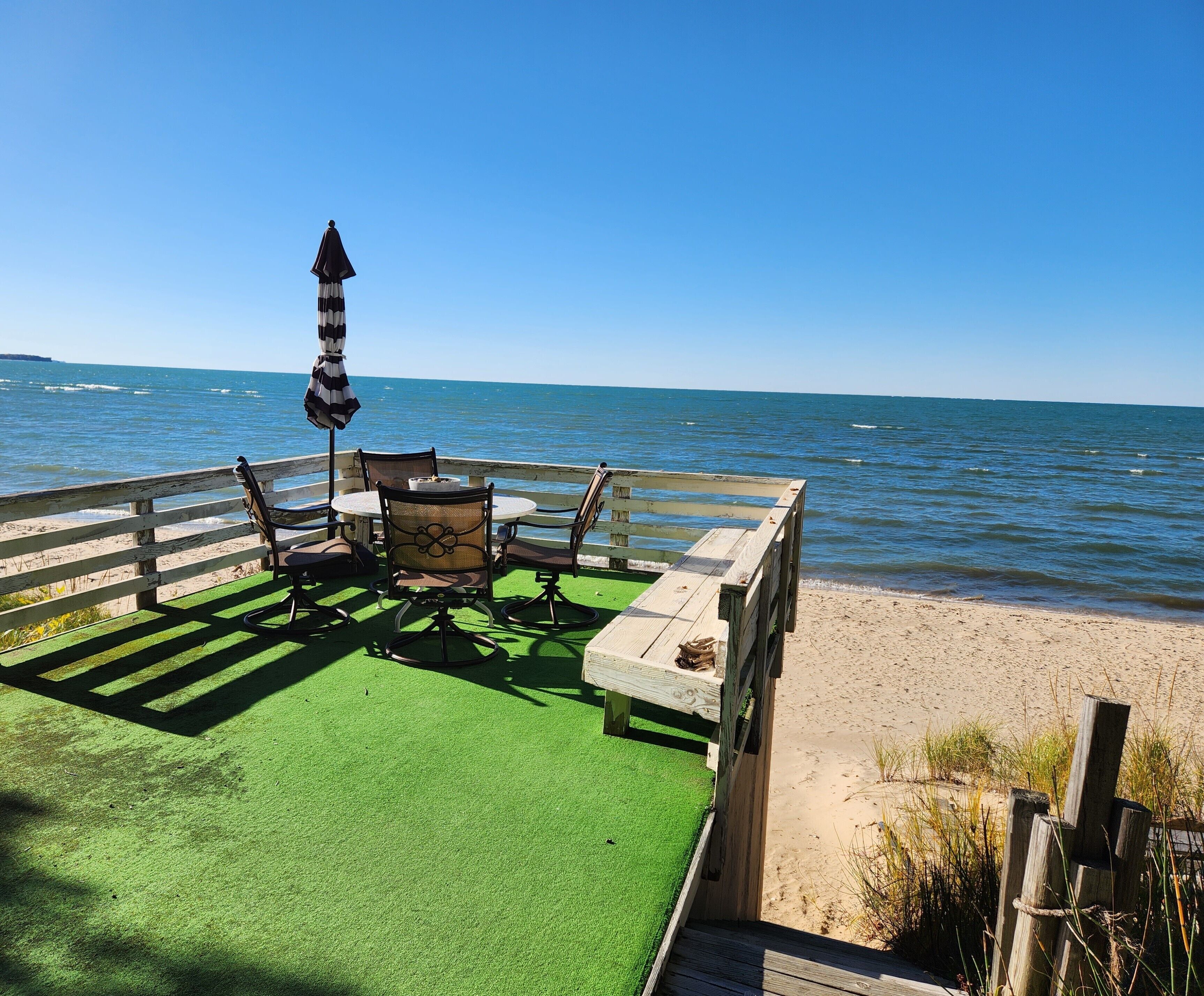 Private Beach Cottage - Family fun environment just 5 minutes from Port Austin New to the market, this family cottage sit's on Saginaw Bay. Just a few steps down the hill, you'll enjoy a spacious private beach where you can play in the water all day, enjoy a front row seat to beautiful sunsets in the evening, and gaze at the stars around the fire pit at night. The cottage has plenty of indoor and outdoor spaces to keep you in comfort while you gather with loved ones and make a lifetime of memories. The following is a listing of the amenities: 5 Bedrooms - sleeps 10Two Bath (towels provided)Fully equipped kitchen with refrigerator, stove & microwaveNo air conditioning but plenty of fans are provided Spacious outdoor dining and seating areas, including a boathouse deckSpacious private beach (Towels and beach umbrellas provide)Access to boathouse where you'll find toys, seating, and a cooler.Fire pit on the beachOne GrillsRoku TVWIFIPortable Bluetooth SpeakerLaundry Keyless entryTWO Security Camera located outside the front door and water side of the housePlenty of parking around the tree lined drive What's nearby:*One of Michigan's best Farmer's Market10 min walk to the Fireside Inn*Kooky Golf*Pak's Bike Rental*Kayak rentals and boat tours of Turnip Rock*Port Austin's Splashpad*Blue Moon Ice Cream Shoppe*The Port Austin Market*Canoe rental and hiking trails at Port Crescent *Bird Creek GolfHouse Rules6 Night minimum during summer months3 Night minimum during the fall - send message for availabilityFire in firepit onlyNo PetsNo more than 10 people per stayNo parties, or events