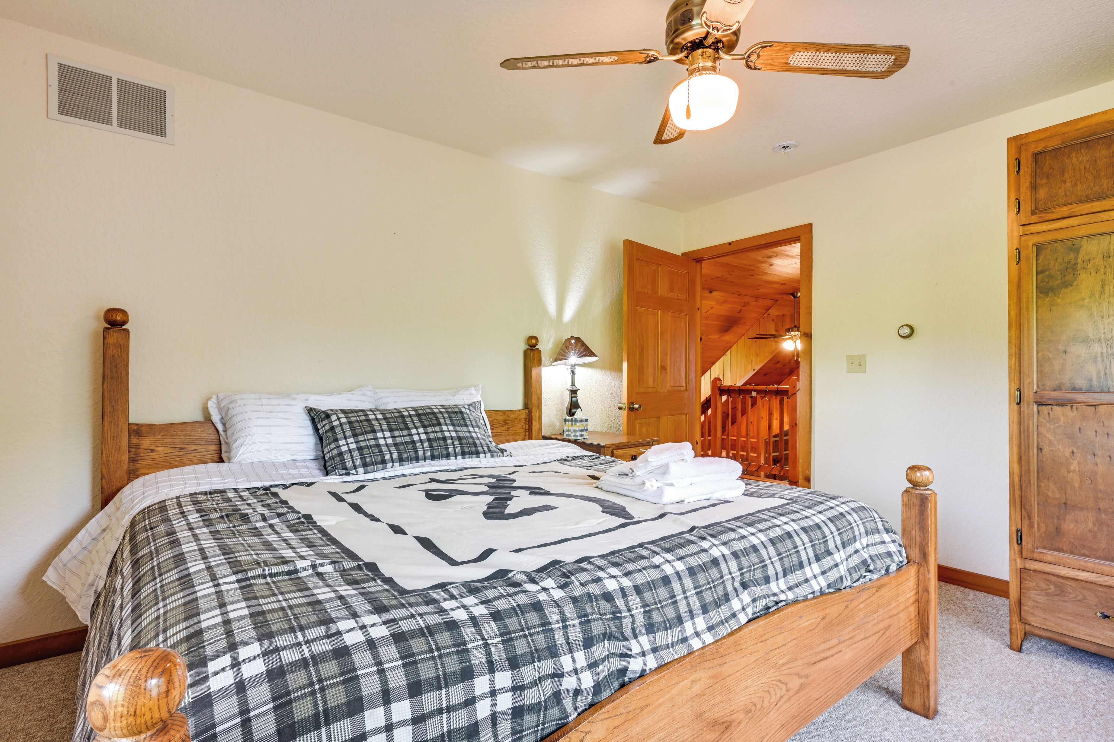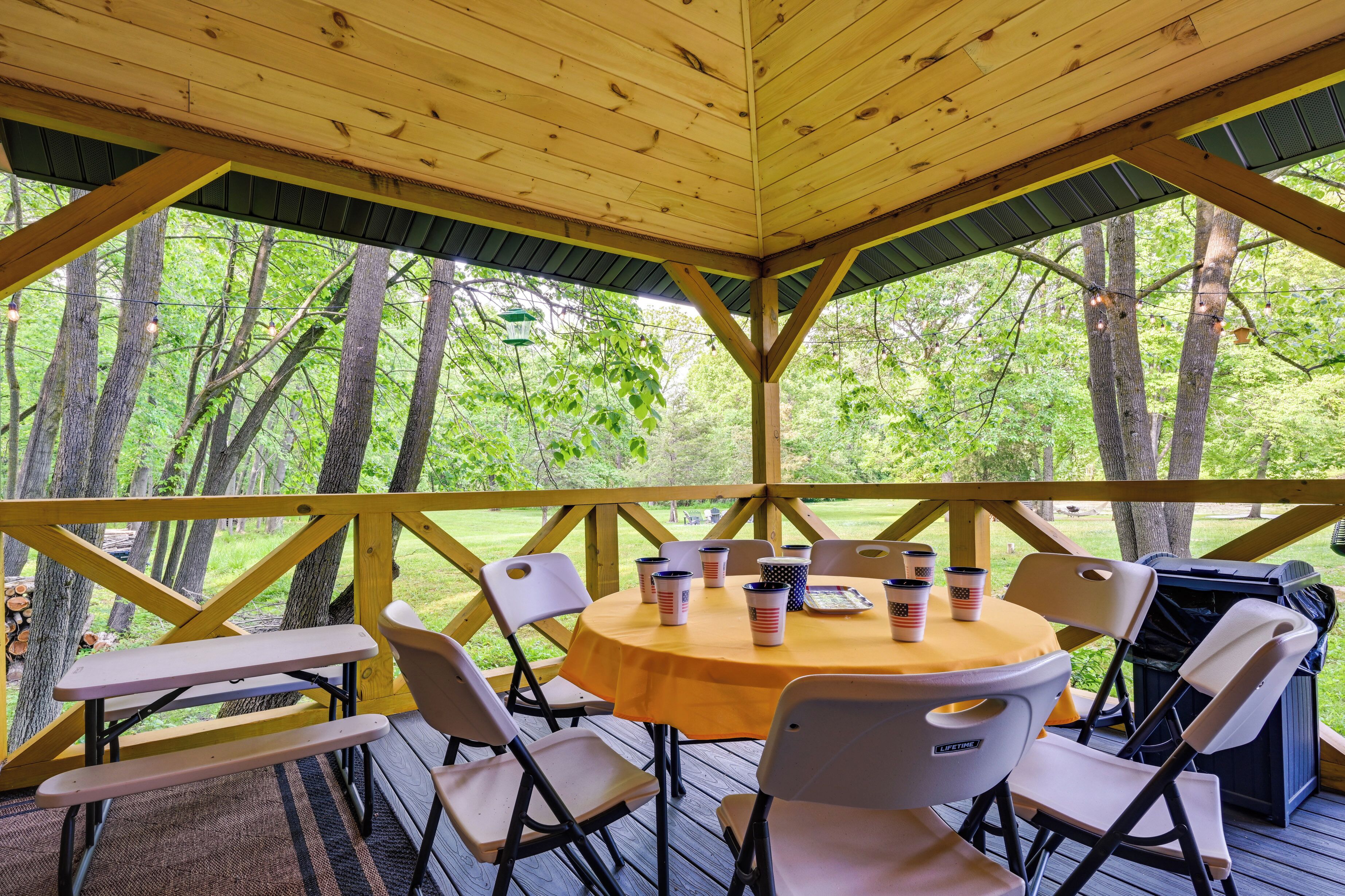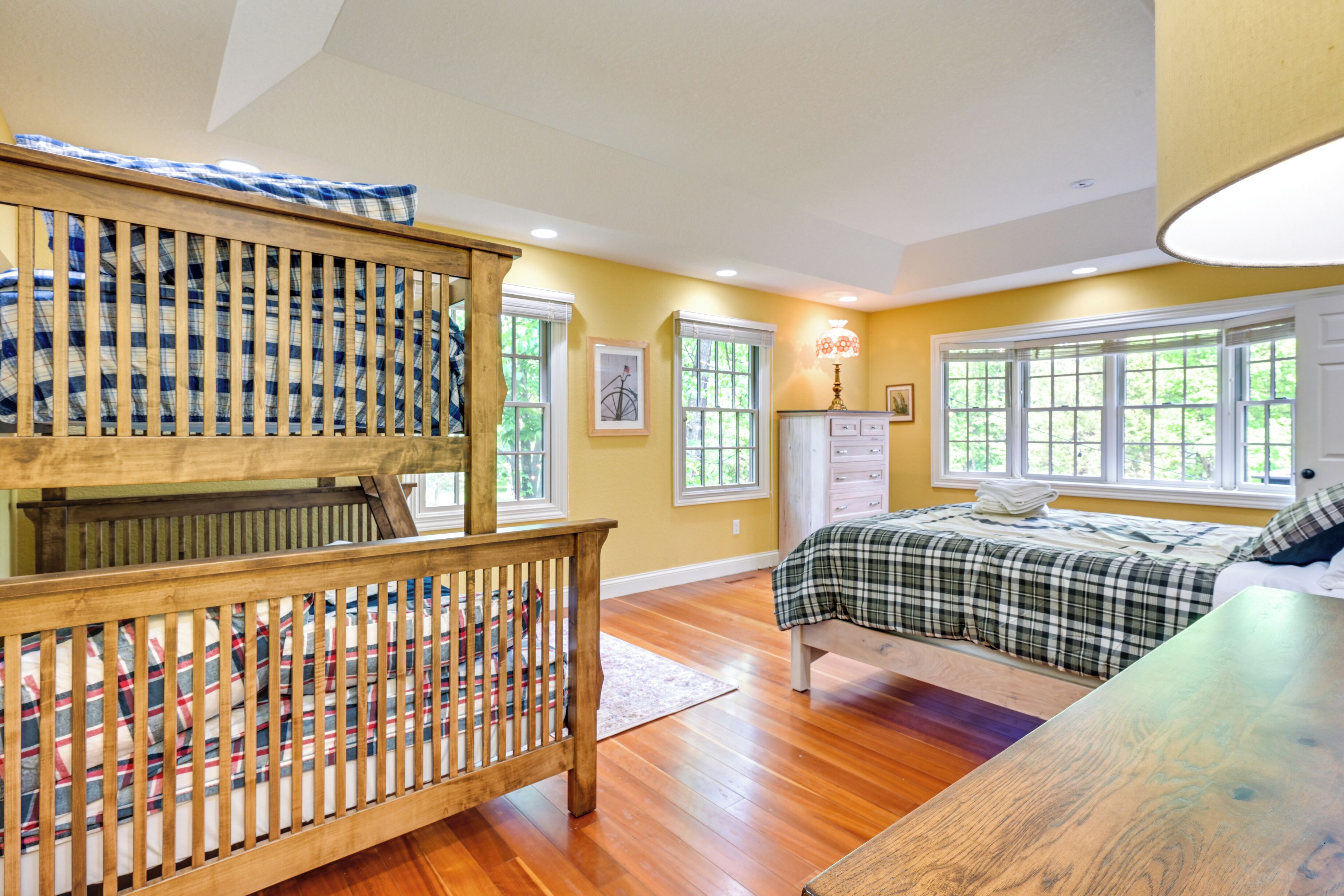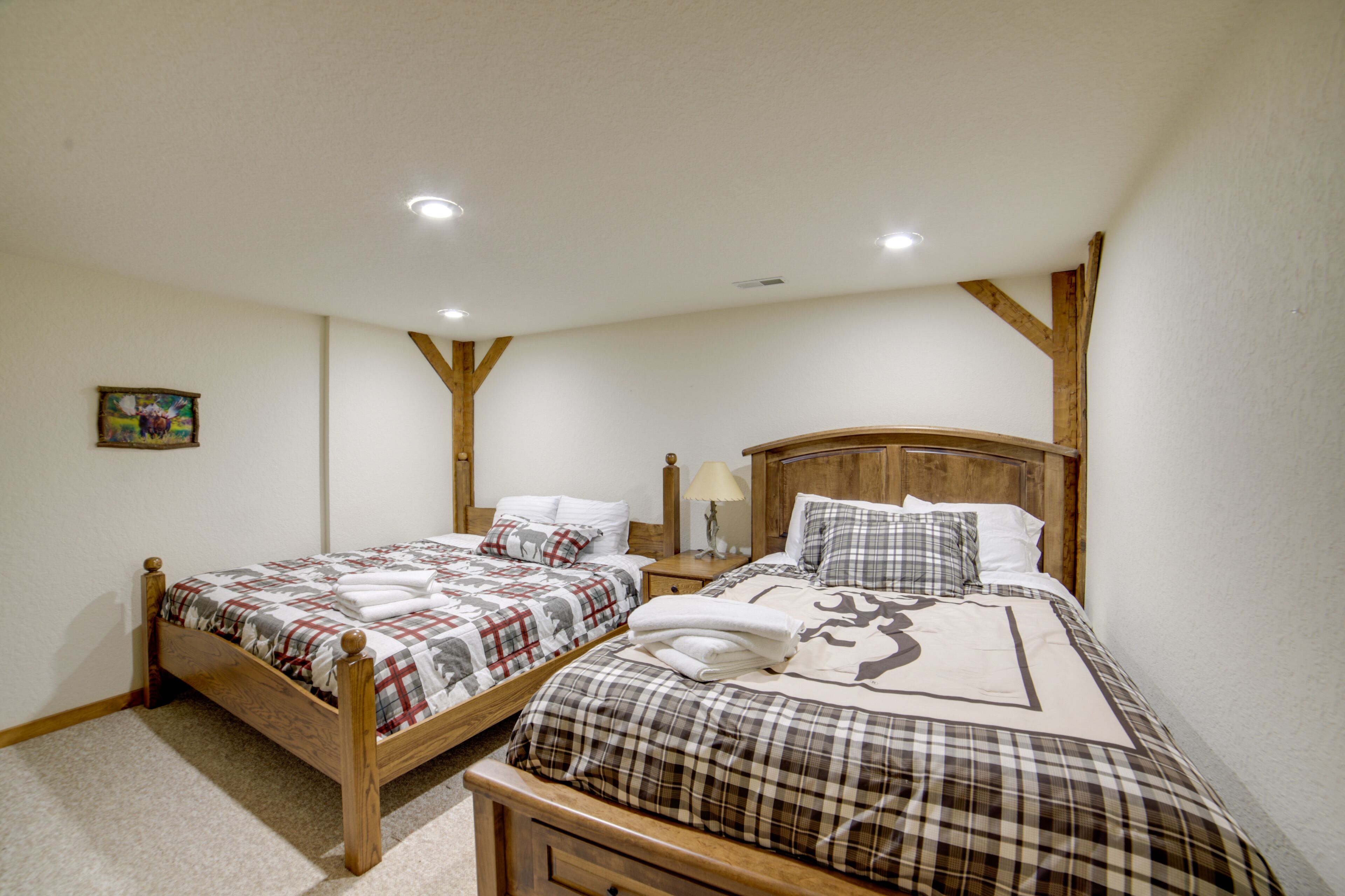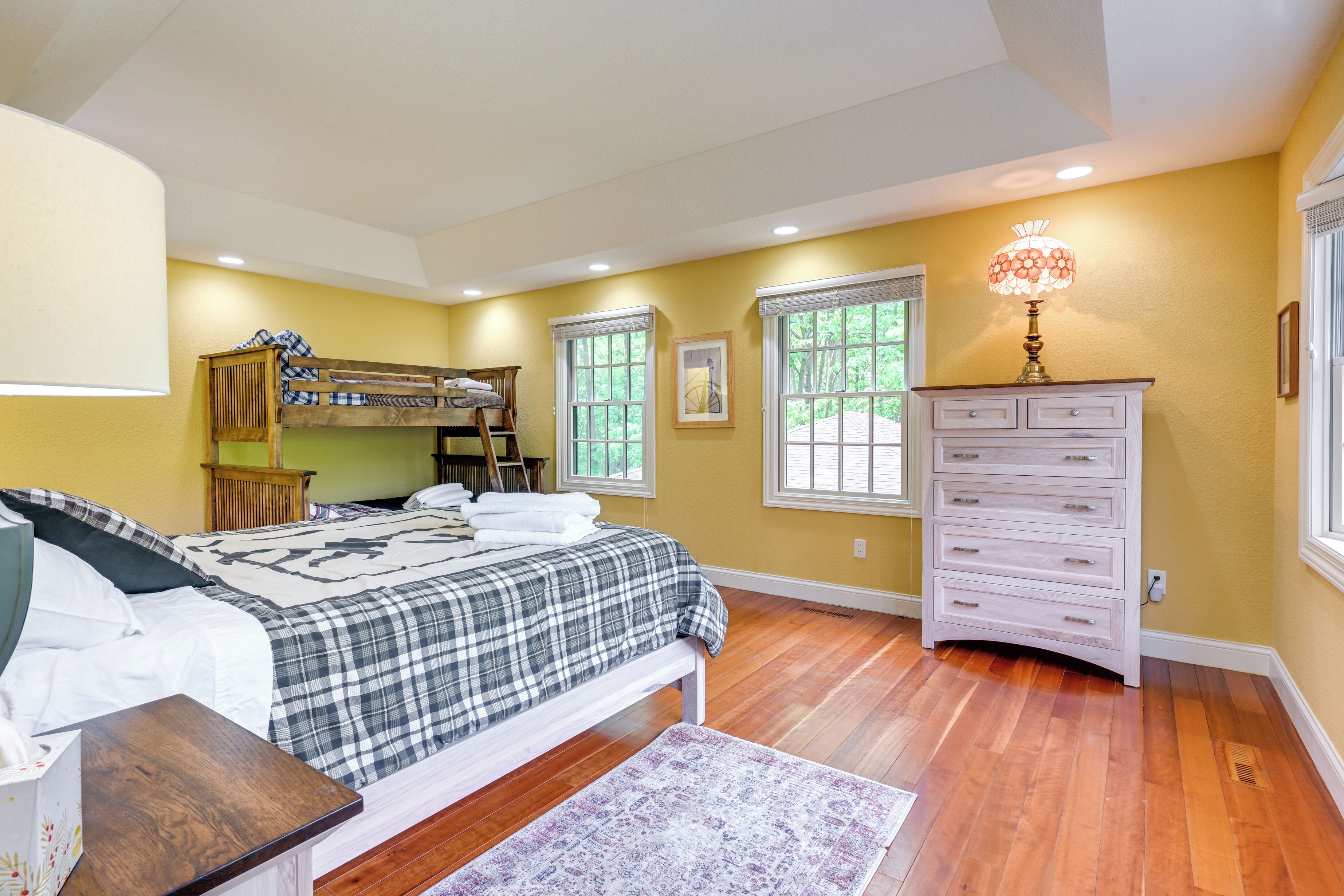 Custom-Built Clarklake Cabin: Sauna & Cold Plunge! Lovingly built with family stays in mind, this Clarklake vacation rental stands ready to host you with ease! The 7-bedroom, 4-bath cabin boasts 2 full kitchens, a game room, and over 12 acres hosting a pond and fire pit. Make the half-mile trip to Clark Lake, then head home to walk the trails, relax by the pond, soak in the hot tub, or enjoy the deck. With easy access to outdoor adventure and this luxurious retreat serving as a destination of its own, you're sure to have a memorable stay!-- THE PROPERTY --3,730 Sq Ft | 12.9 Private Acres w/ Pond | Private Hot Tub | Game RoomFilled with upscale amenities and spacious enough for everyone - pets included - this retreat ensures that your next Michigan getaway is one for the books!Bedroom 1: Queen Bed, Twin/Full Bunk Bed | Bedroom 2: King Bed | Bedroom 3: King Bed | Bedroom 4: King Bed | Bedroom 5: King Bed | Bedroom 6: King Bed | Bedroom 7: King Bed, Queen Bed | Main Living Room: 2 Sleeper Sofas | Lower Living Room: 4 Futons | Additional Sleeping: CribOUTDOORS: Deck, sauna, cold plungeINDOORS: Smart TVs, gas fireplace, 20-person dining table, ping pong, football, air hockey, arcade gamesMAIN KITCHEN: Fully equipped, stainless steel appliances, 8-person island, granite counters, drip coffee maker, cooking basics, dishware & flatwareSECONDARY KITCHEN: Fully equipped, granite counters, 2-person breakfast bar, drip coffee makerGENERAL: Free WiFi, linens/towels, washer & dryerFAQ: Pet fee (paid pre-trip), stairs required to access, flexible maximum occupancy. no elevator accessPARKING: Driveway (6 vehicles), RVs/trailers/boats permitted, no garage access-- THE LOCATION --AREA ATTRACTIONS: Ella Sharp Museum (9.9 miles), Imagine Planet (10.5 miles), The Cascades (11.5 miles)LOCAL EATS: The Beach Bar (2.6 miles), Lucero's Mexican Bar & Grill (3.3 miles), Poppa's Place (6.4 miles), Steaks Eatery (6.6 miles), Klavon's Pizzeria & Pub (6.7 miles), Bone Island Grill (8.0 miles)OUTDOOR FUN: McCourtie Park (8.5 miles), Ella Sharp Park (10.1 miles), Hayes State Park (13.6 miles), Hidden Lake Gardens (17.3 miles)AIRPORT: Detroit Metropolitan Wayne County Airport (69.6 miles)-- REST EASY WITH US --Evolve makes it easy to find and book properties you’ll never want to leave. You can relax knowing that our properties will always be ready for you and that we’ll answer the phone 24/7. Even better, if anything is off about your stay, we’ll make it right. You can count on our homes and our people to make you feel welcome--because we know what vacation means to you.-- POLICIES --- No smoking- Pet friendly w/ $100 fee (+ fees & taxes)- No events, parties, or large gatherings- Please observe quiet hours 11 PM - 8 AM- Must be at least 25 years old to book- Additional fees and taxes may apply- Photo ID may be required upon check-in- NOTE: The property requires stairs and may be difficult for guests with limited mobility- NOTE: Clark Lake is nearby. Guests can feel free to bring jet skis, a boat, or an RV that can be parked near the house- NOTE: The garage, which is located on the west side of the house, and the elevator which is located in the house, cannot be usedand it is closed to guest use