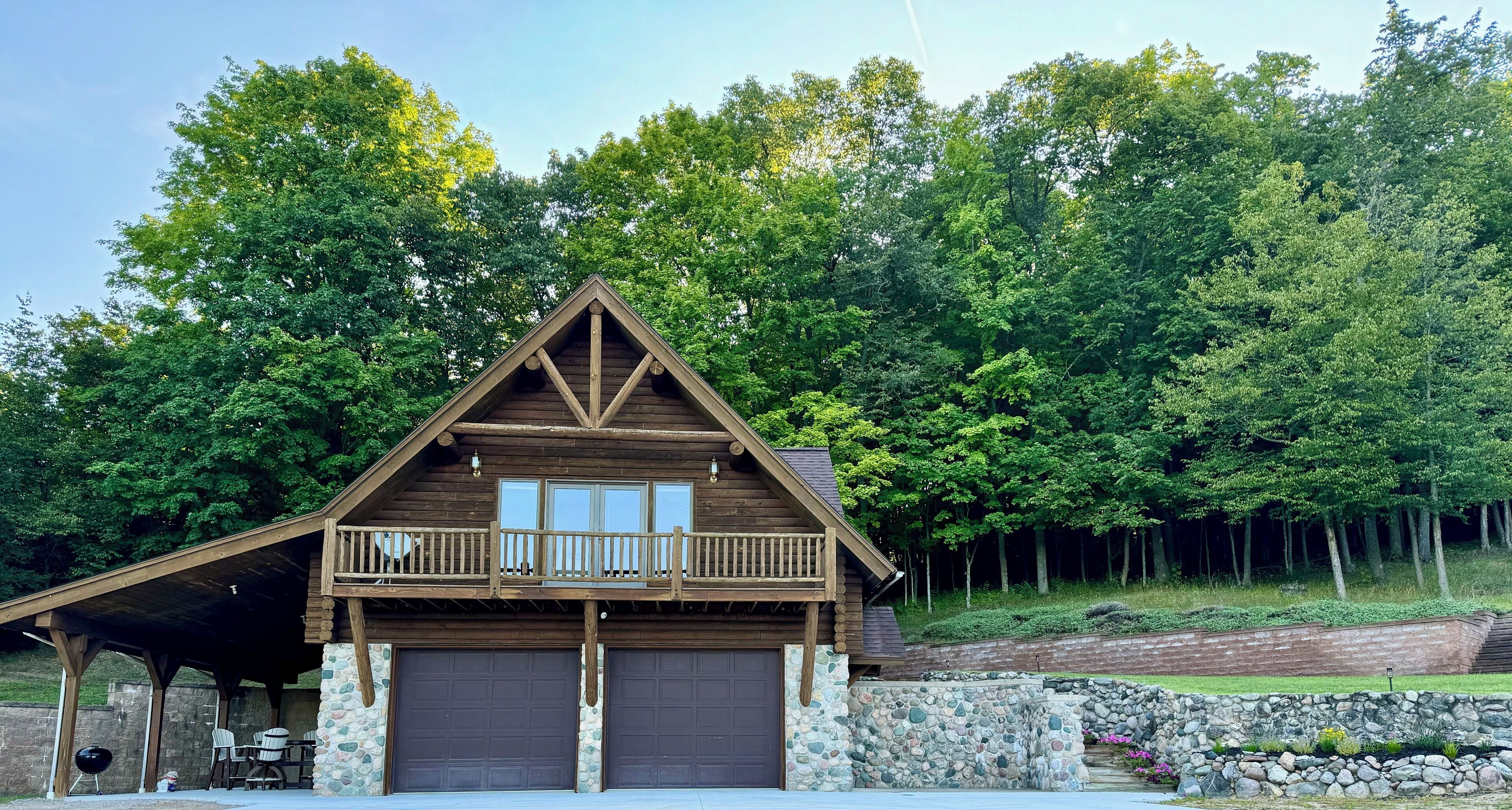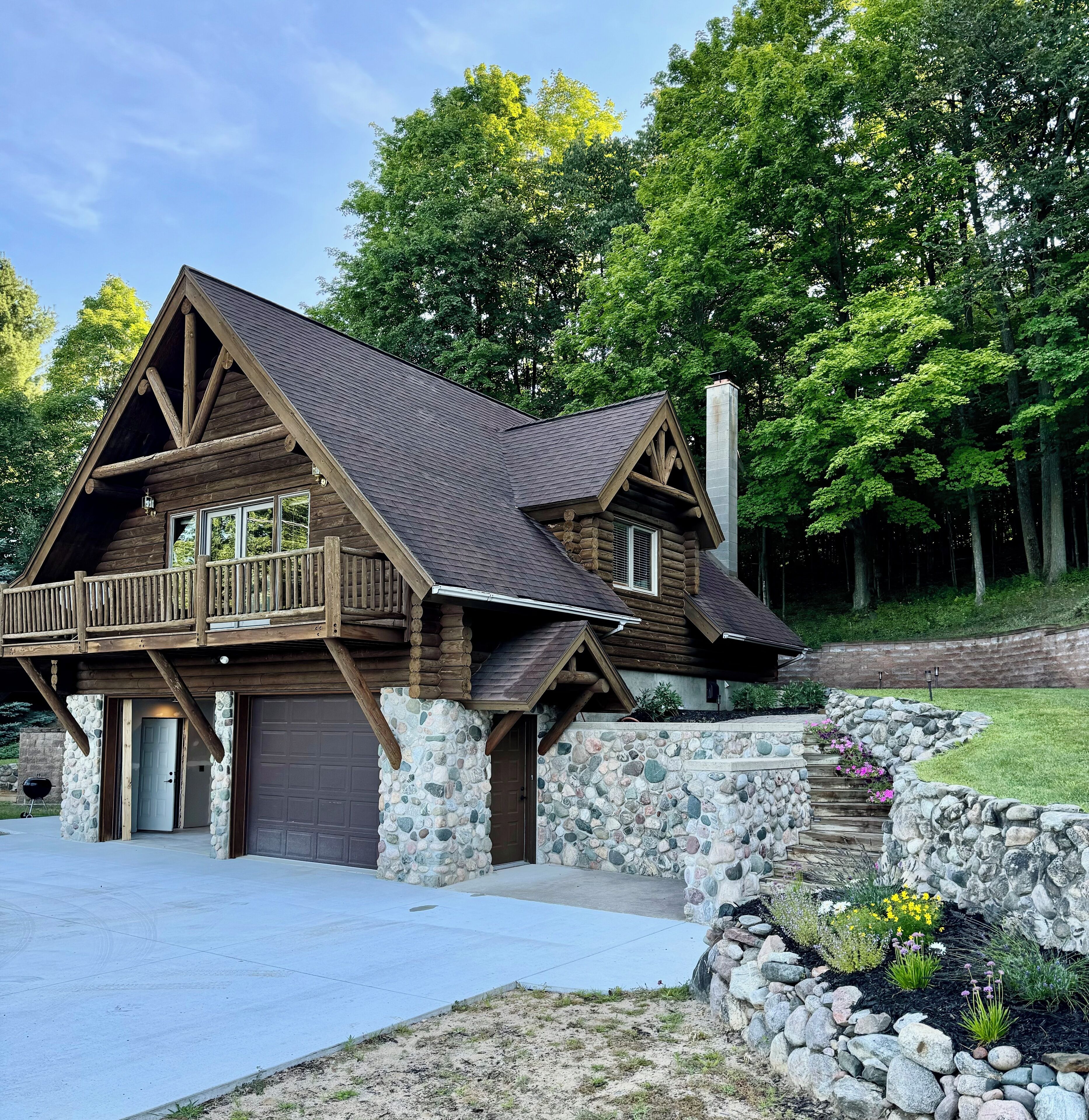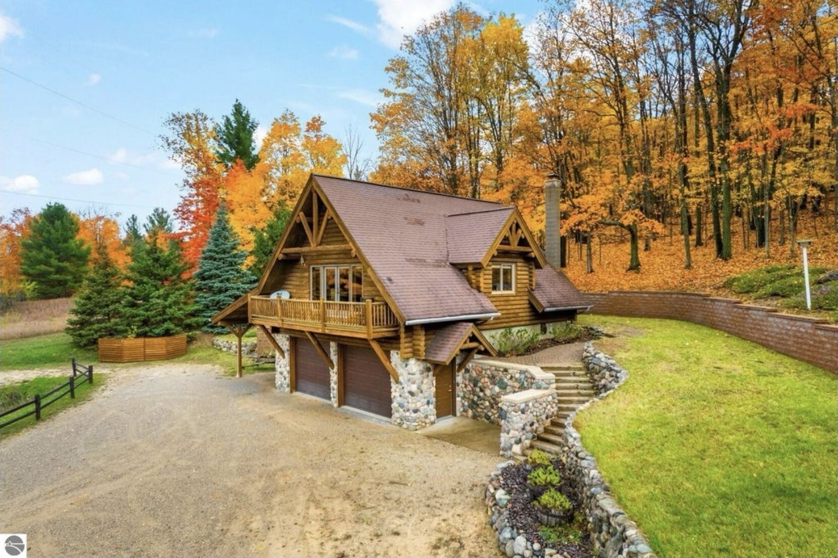 Cozy Cabin Retreat Awaits You Minutes from Torch Lake! Escape to a slice of paradise in Northern Michigan with views of Lake Skegemog! Log and stone charming cabin centrally located with a beautiful deck to enjoy the stunning views. Open floor plan with a spacious living room, fully stocked kitchen with a breakfast bar and dining room, custom wood cabinets and a spacious counter. One private, c...