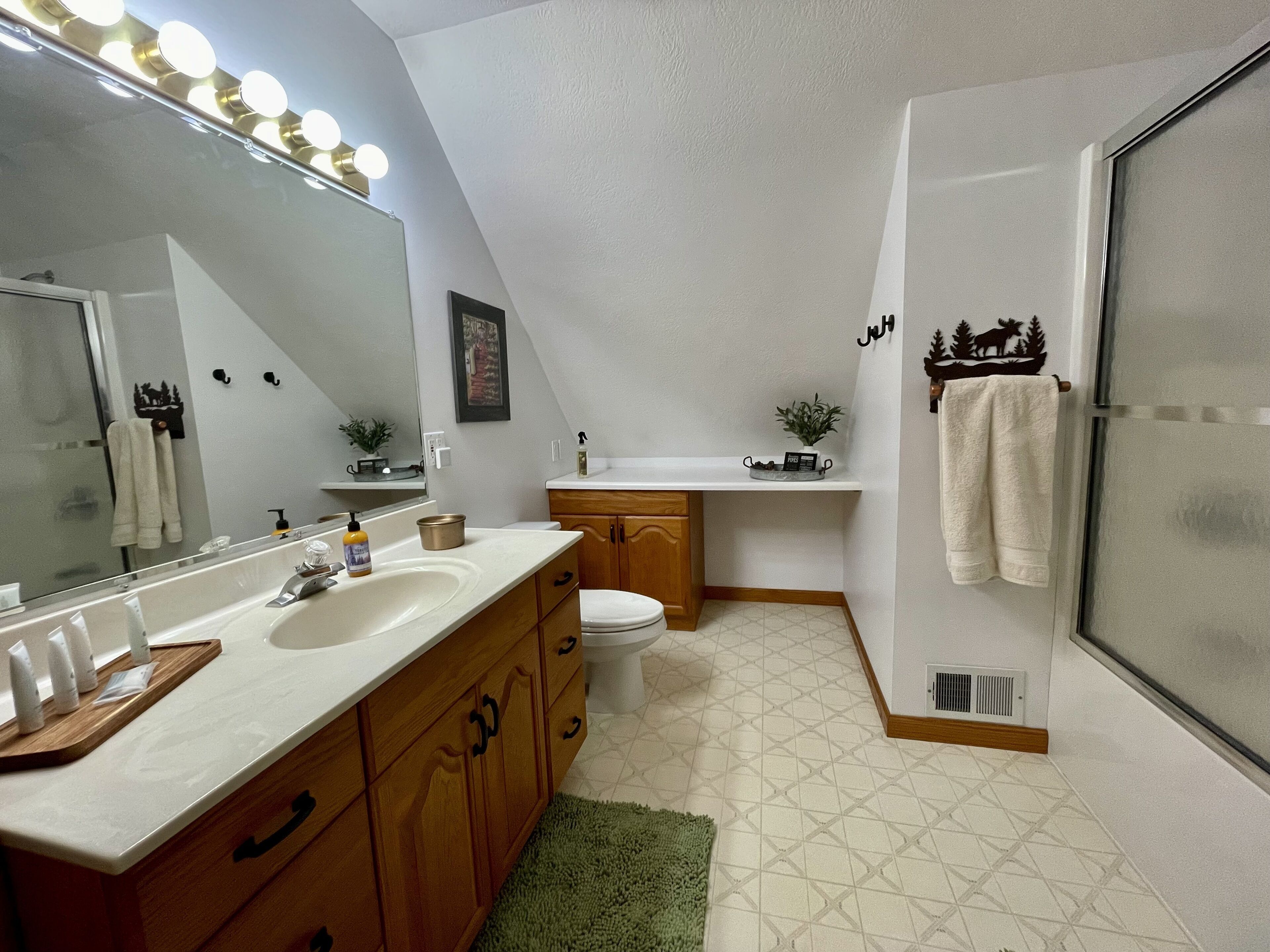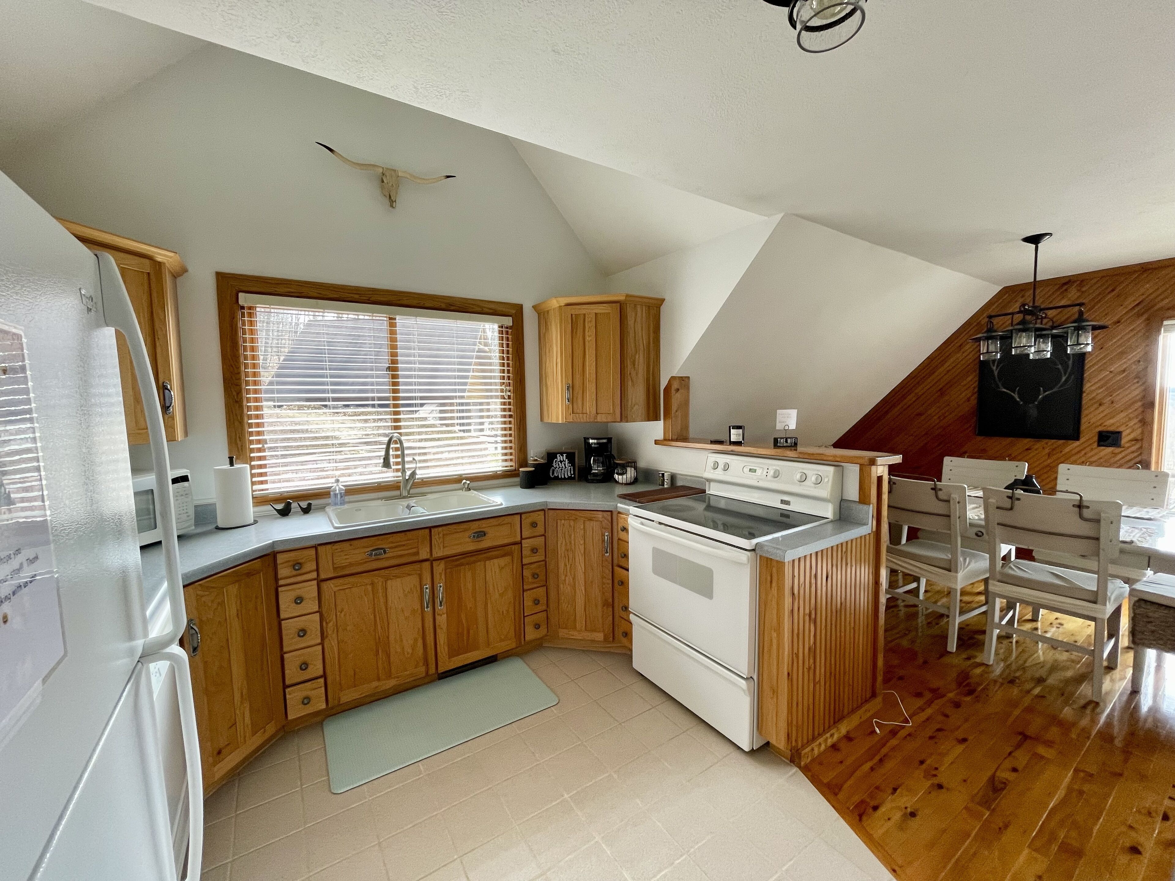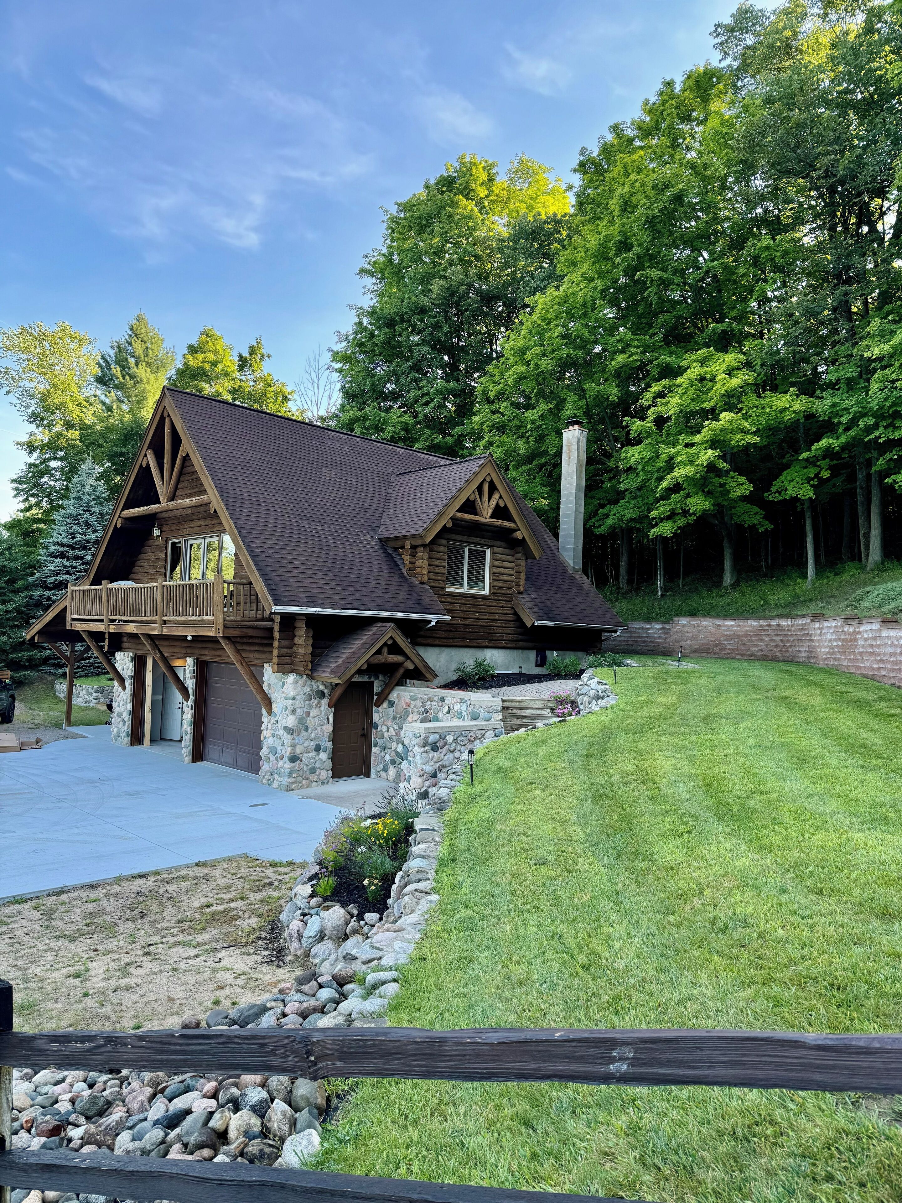 Cozy Cabin Retreat Awaits You Minutes from Torch Lake! Escape to a slice of paradise in Northern Michigan with views of Lake Skegemog! Log and stone charming cabin centrally located with a beautiful deck to enjoy the stunning views. Open floor plan with a spacious living room, fully stocked kitchen with a breakfast bar and dining room, custom wood cabinets and a spacious counter. One private, c...