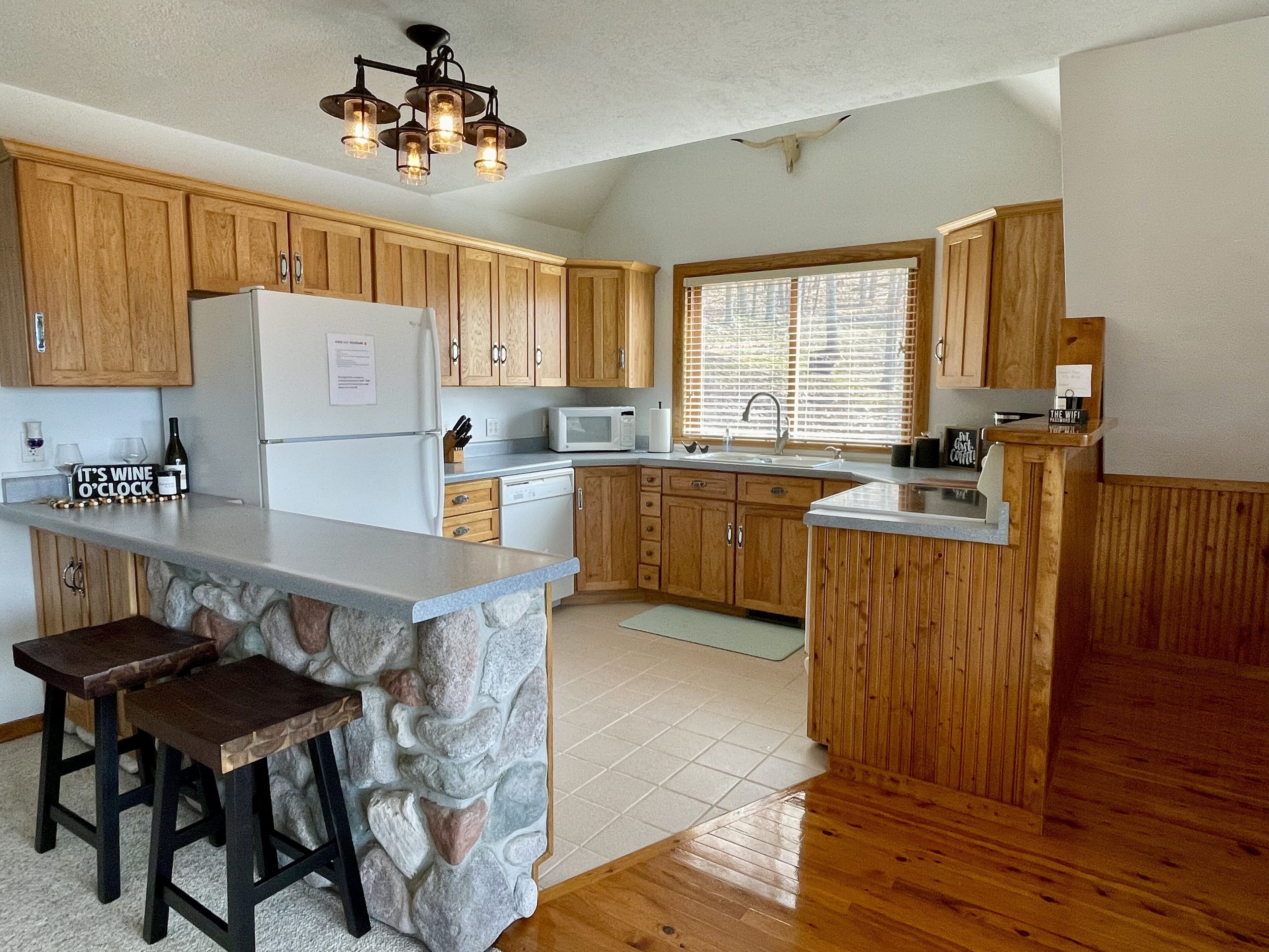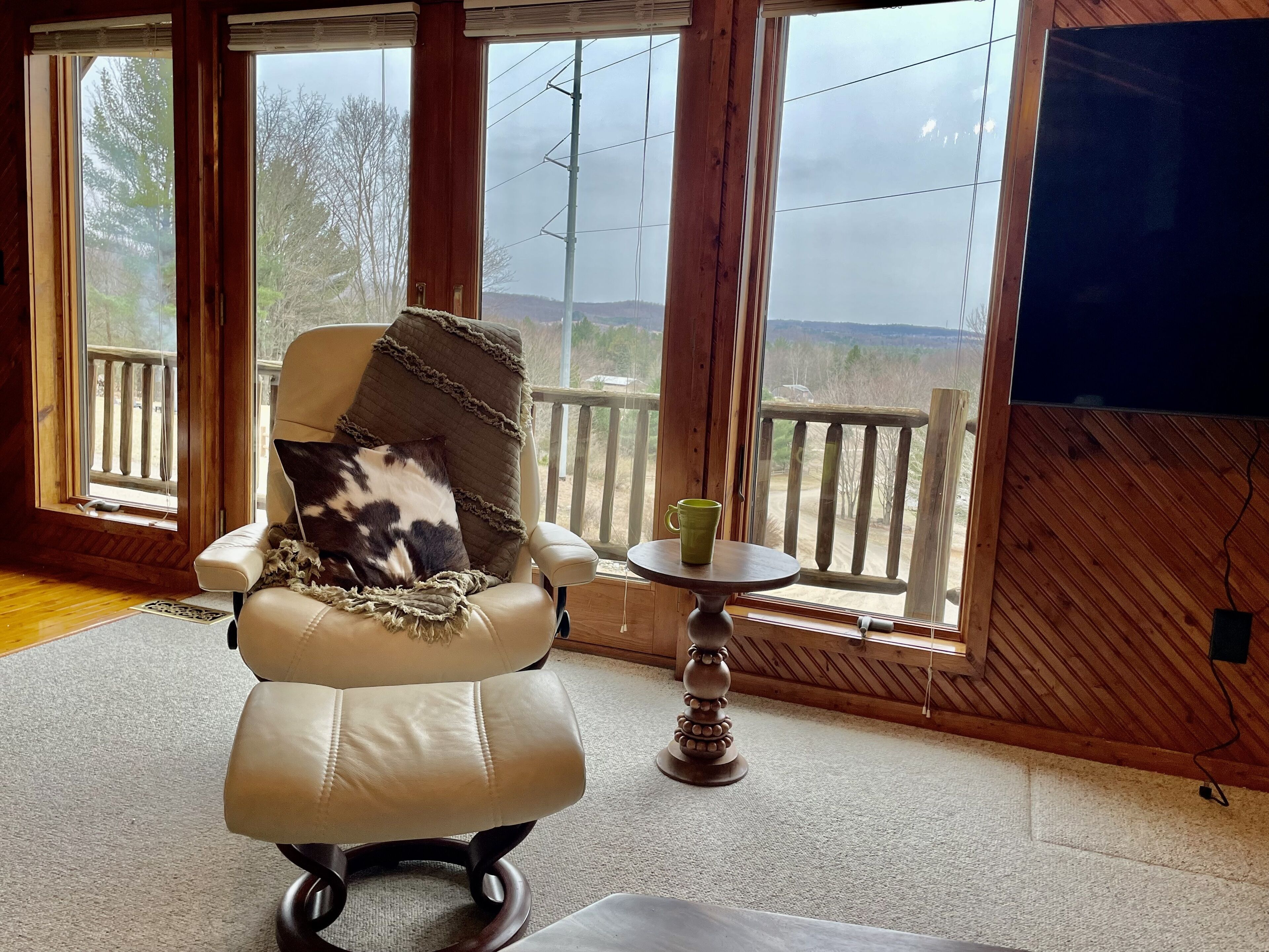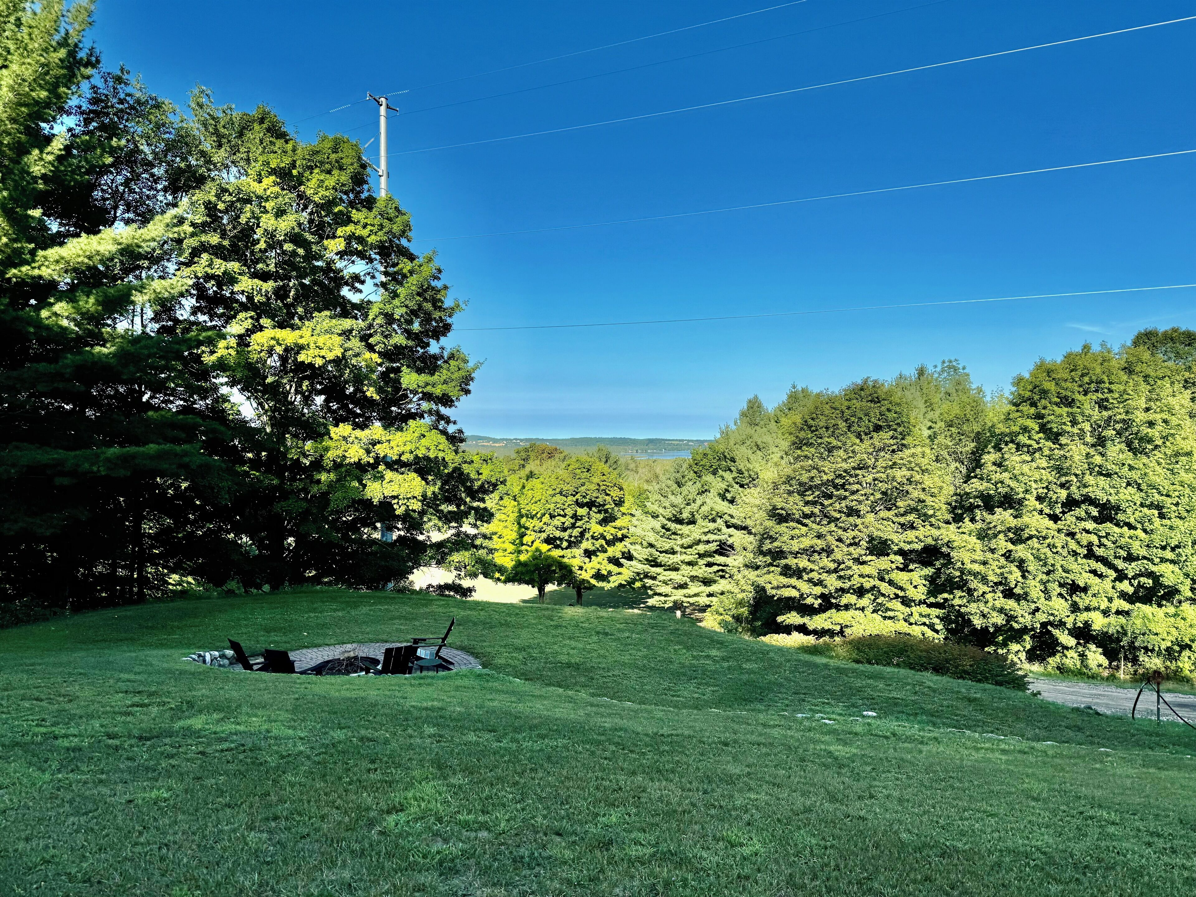 Cozy Cabin Retreat Awaits You Minutes from Torch Lake! Escape to a slice of paradise in Northern Michigan with views of Lake Skegemog! Log and stone charming cabin centrally located with a beautiful deck to enjoy the stunning views. Open floor plan with a spacious living room, fully stocked kitchen with a breakfast bar and dining room, custom wood cabinets and a spacious counter. One private, cozy bedroom with an additional sofa couch in the living room. Smart TV, free wifi, security cameras facing out and Deck off the back for grilling while you sit amongst the deer, birds, turkey and other beautiful wildlife. Fire wood provided near the large fire pit while enjoying the stunning sunset and starry night over the lake. Torch Lake, known for it's crystal clear, Caribbean blue waters with a public launch, sand bars, snack boats and white sandy beaches, is a short 5.8 mile drive, Schuss Mountain, Shanty Creek Resort, Turtle Creek Casino and Meijer grocery store are 15 minutes away as well as many great restaurants, wineries and horse shows. Situated conveniently between Traverse City and the amazing Torch Lake! A true year-round retreat! Golf, dine, ski, boat, hike, snowmobile and more! This home sits on several acres with plenty of room to store your boat, snowmobile, RV, trailer, etc. Smart TV with free wifi, security cameras facing out.No SmokingNo PetsNo Events, parties or large gatherings.Photo ID may be required at check in.Elevated single story home with steps required to enter.Must be at least 25 years old to book.Discount Aug 20 - Sept 16 due to exterior staining/painting on both the home and garage. Exterior only.