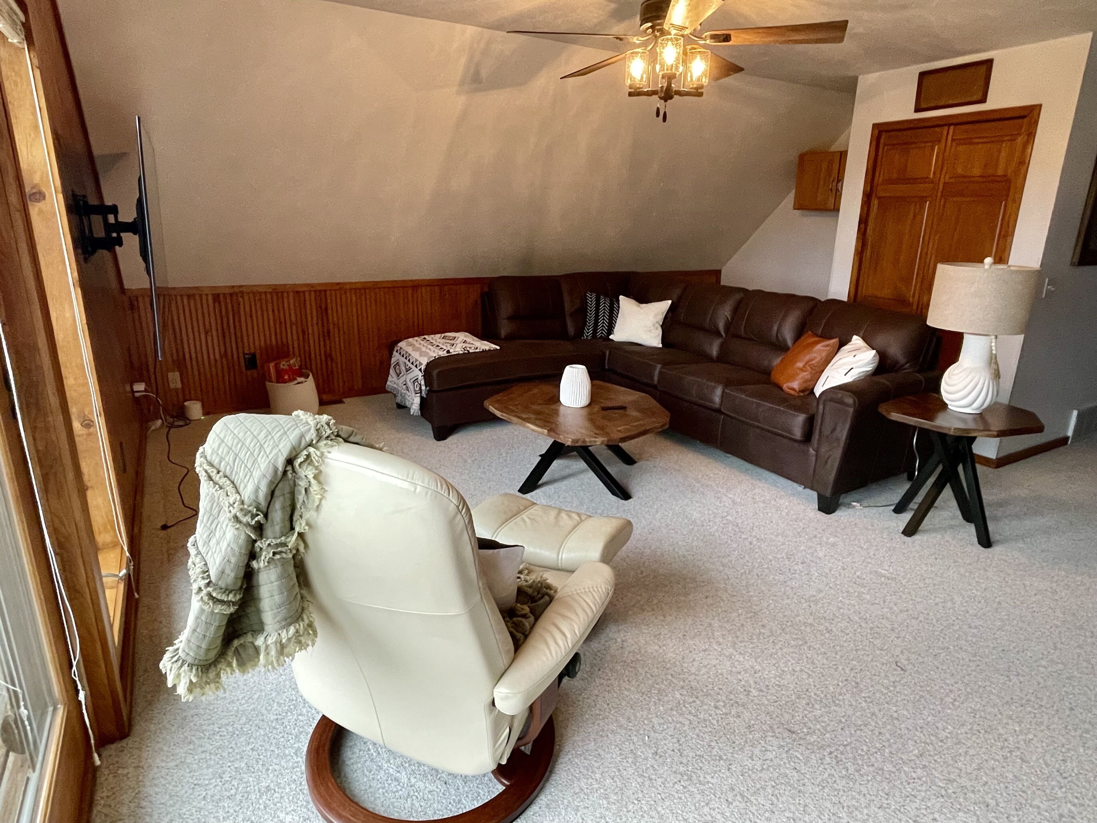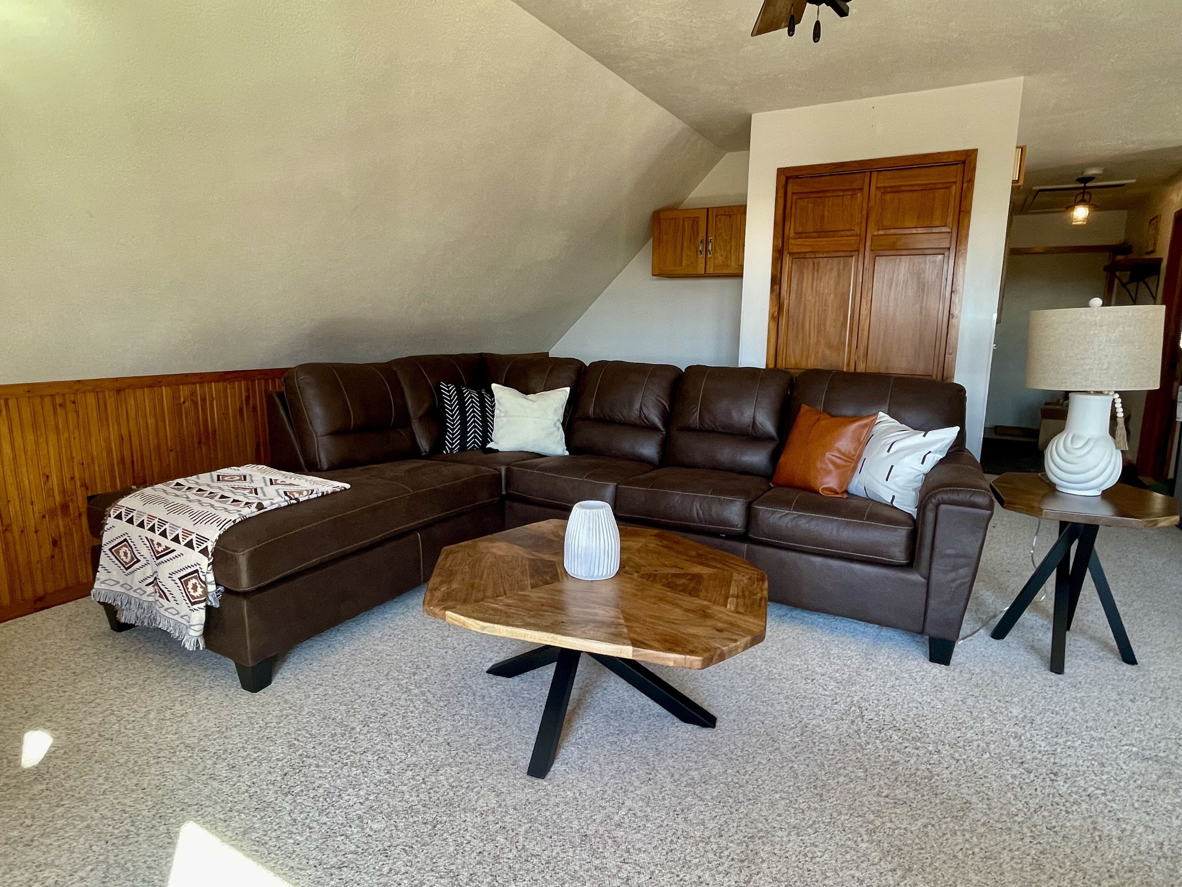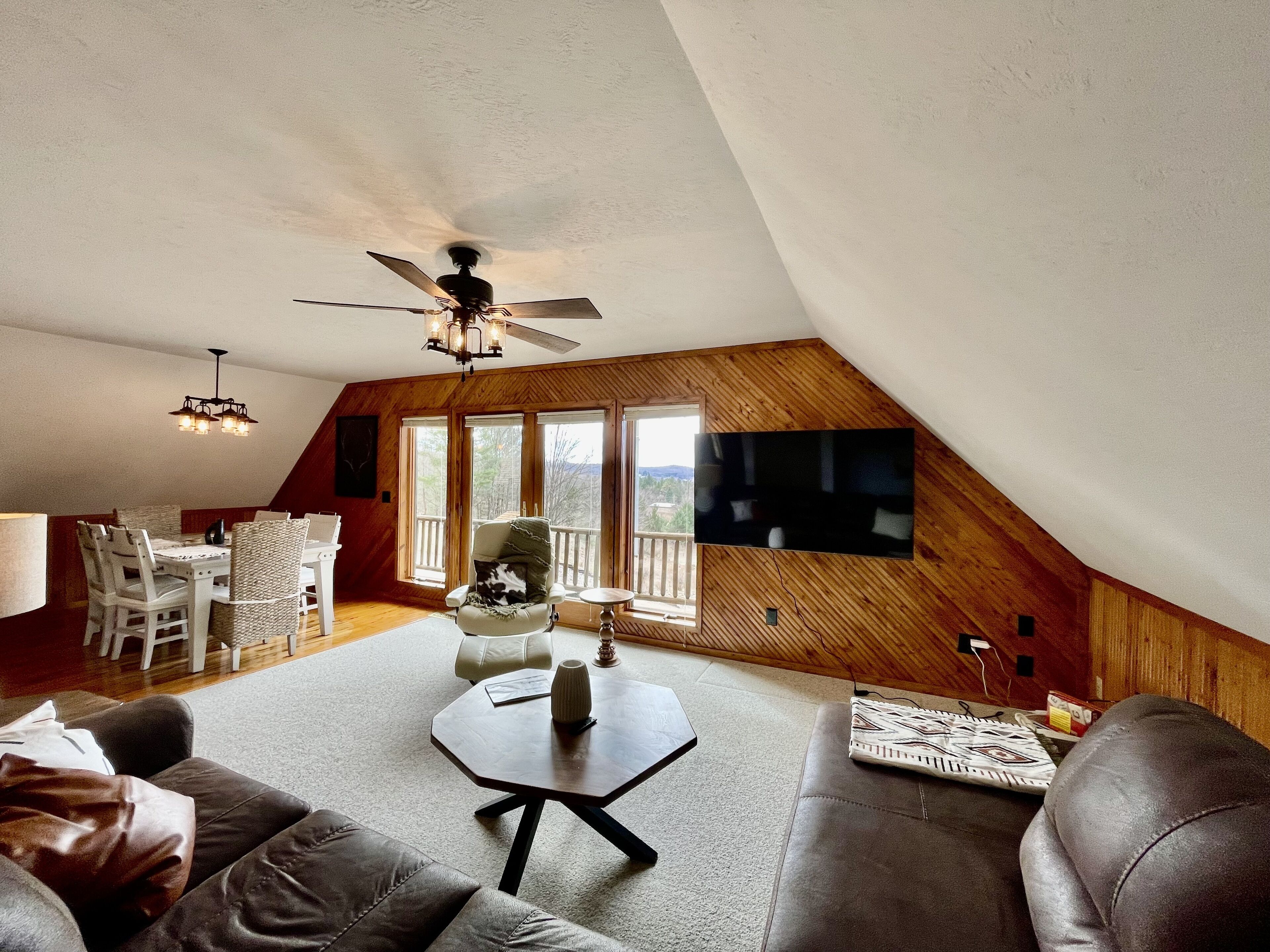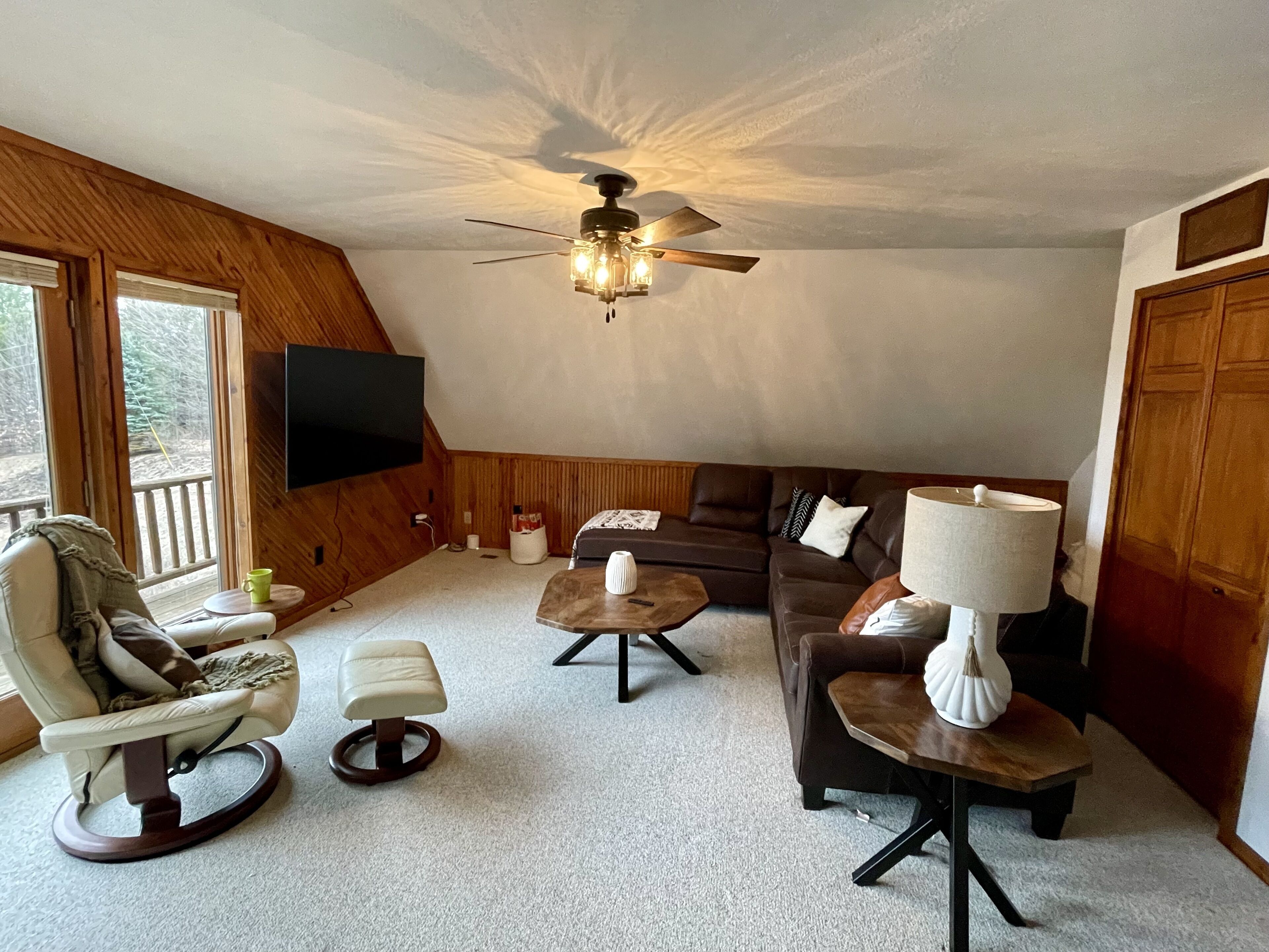 Cozy Cabin Retreat Awaits You Minutes from Torch Lake! Escape to a slice of paradise in Northern Michigan with views of Lake Skegemog! Log and stone charming cabin centrally located with a beautiful deck to enjoy the stunning views. Open floor plan with a spacious living room, fully stocked kitchen with a breakfast bar and dining room, custom wood cabinets and a spacious counter. One private, cozy bedroom with an additional sofa couch in the living room. Smart TV, free wifi, security cameras facing out and Deck off the back for grilling while you sit amongst the deer, birds, turkey and other beautiful wildlife. Fire wood provided near the large fire pit while enjoying the stunning sunset and starry night over the lake. Torch Lake, known for it's crystal clear, Caribbean blue waters with a public launch, sand bars, snack boats and white sandy beaches, is a short 5.8 mile drive, Schuss Mountain, Shanty Creek Resort, Turtle Creek Casino and Meijer grocery store are 15 minutes away as well as many great restaurants, wineries and horse shows. Situated conveniently between Traverse City and the amazing Torch Lake! A true year-round retreat! Golf, dine, ski, boat, hike, snowmobile and more! This home sits on several acres with plenty of room to store your boat, snowmobile, RV, trailer, etc. Smart TV with free wifi, security cameras facing out.No SmokingNo PetsNo Events, parties or large gatherings.Photo ID may be required at check in.Elevated single story home with steps required to enter.Must be at least 25 years old to book.Discount Aug 20 - Sept 16 due to exterior staining/painting on both the home and garage. Exterior only.