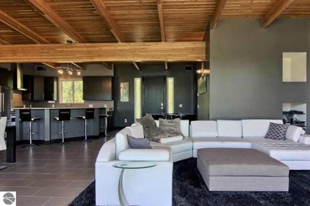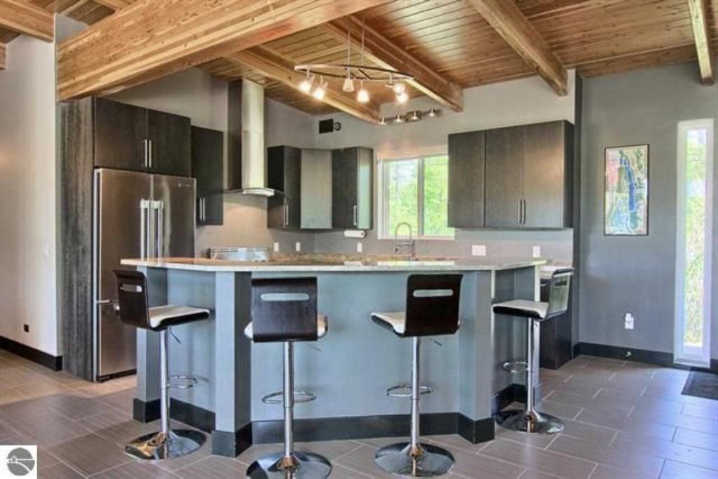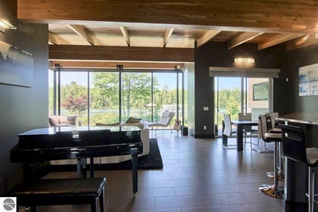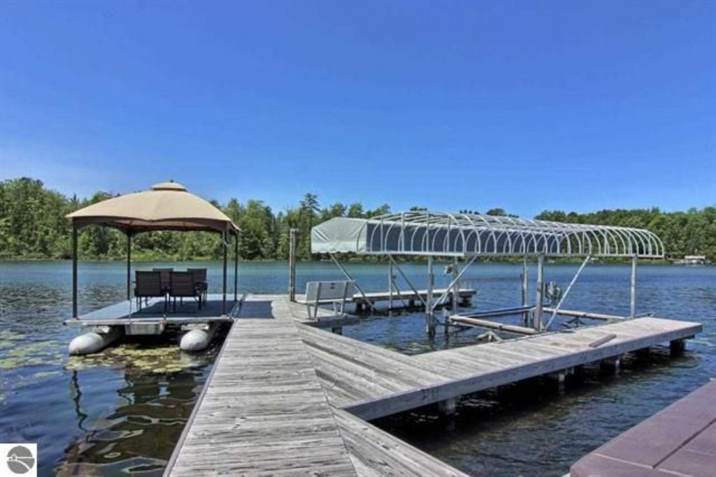 EXPERIENCE TORCH LAKE -TORCH RIVER AMAZING CONTEMP. ESCAPE “TRACE” -DOCK, HOTTUB This 2011 custom contemporary home was featured in the home design magazine “Houzz” for its architectural design. Floor to ceiling windows display unobstructed expansive views of the river, natural landscape and abundant wildlife.Open floor plan with vaulted wood ceilings provides spacious accommodationsKitchen features stainless steel Viking appliances, drawer microwave, wine fridge, beverage fridge and stand alone ice makerLarge granite island/Snack bar with seating for 5 people Great room has 65 inch TV, whole house audio system enables you to control where the music plays, including the outside patio. Recently added 60 inch electric fireplaceLarge ceiling fan circulates a cool “breeze”California King Beds, 50+ in. Smart-TV (for streaming shows) and ceiling fans in each of the three bedrooms. Master bedroom en-suite contains California King Bed, TV and door wall leading to outside patio. Tub bath/shower in guest bathroom. Master bathroom features double sinks, soaking tub and multi-sprayer shower. Water softenerThe Home is 20 minutes “no wake” from Torch lake sand bar Fueling station located up the riverTorch River has access to all Chain-of-Lakes waterwaysOutdoor amenities include:1300 sq. feet of brick paver outdoor living spaceGas grillFishing off the dock-NO SWIMMING OR DIVING OFF DOCK-LOGS, DRIFTWOOD AND UNDERWATER TREE TRUNKS SURROUND DOCK8 person hot tubBrick fire pitWhole house generatorOutdoor 55 in TVLocated in Rapid City, Between Kalkaska and Traverse City,Close to grocery stores, eateries, casino, Short’s Brewery and multiple wineries, horse showsOn a dead end street, with boat launch .3 miles away*****DURING WINTER MONTHS -2 night minimum DURING PRIME SUMMER MONTHS (JUNE-SEPTEMBER 15) 5 -7 night min. ***NEGOTIABLE***