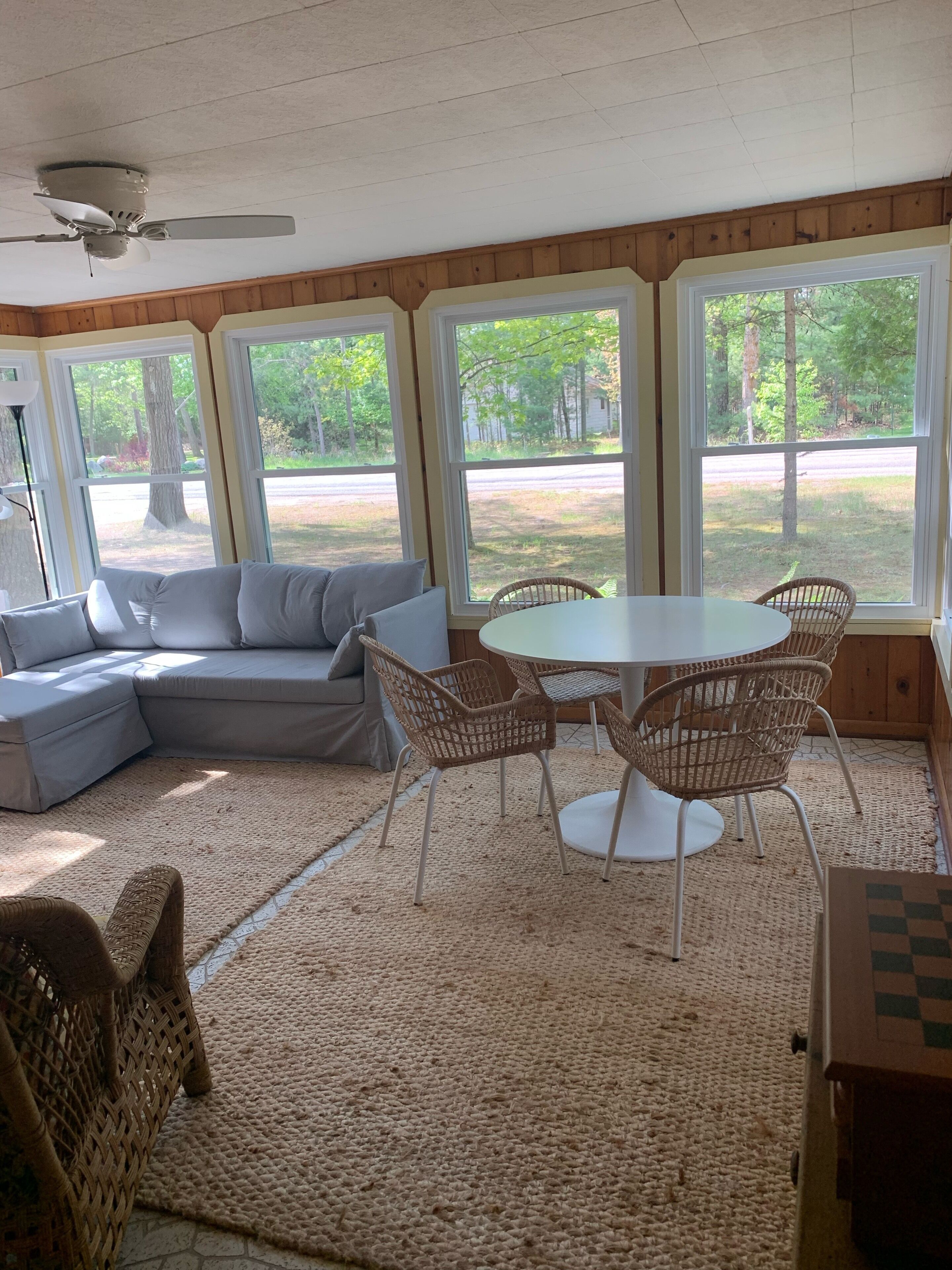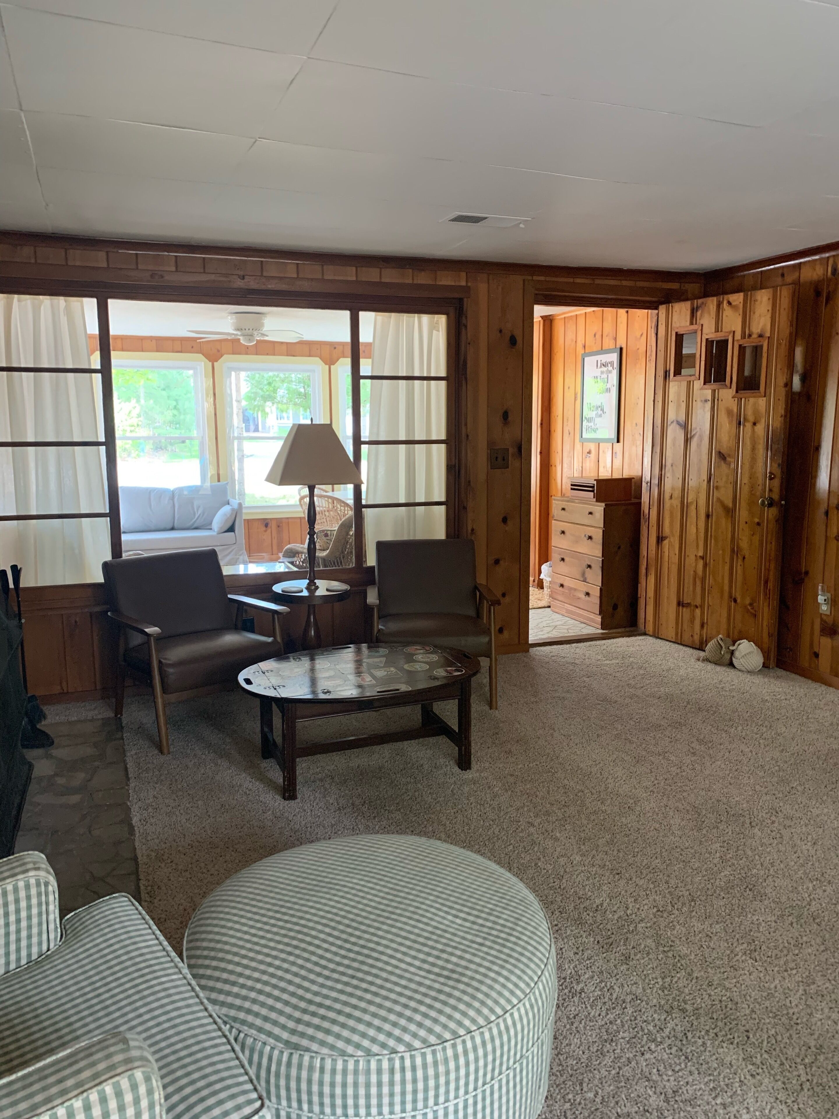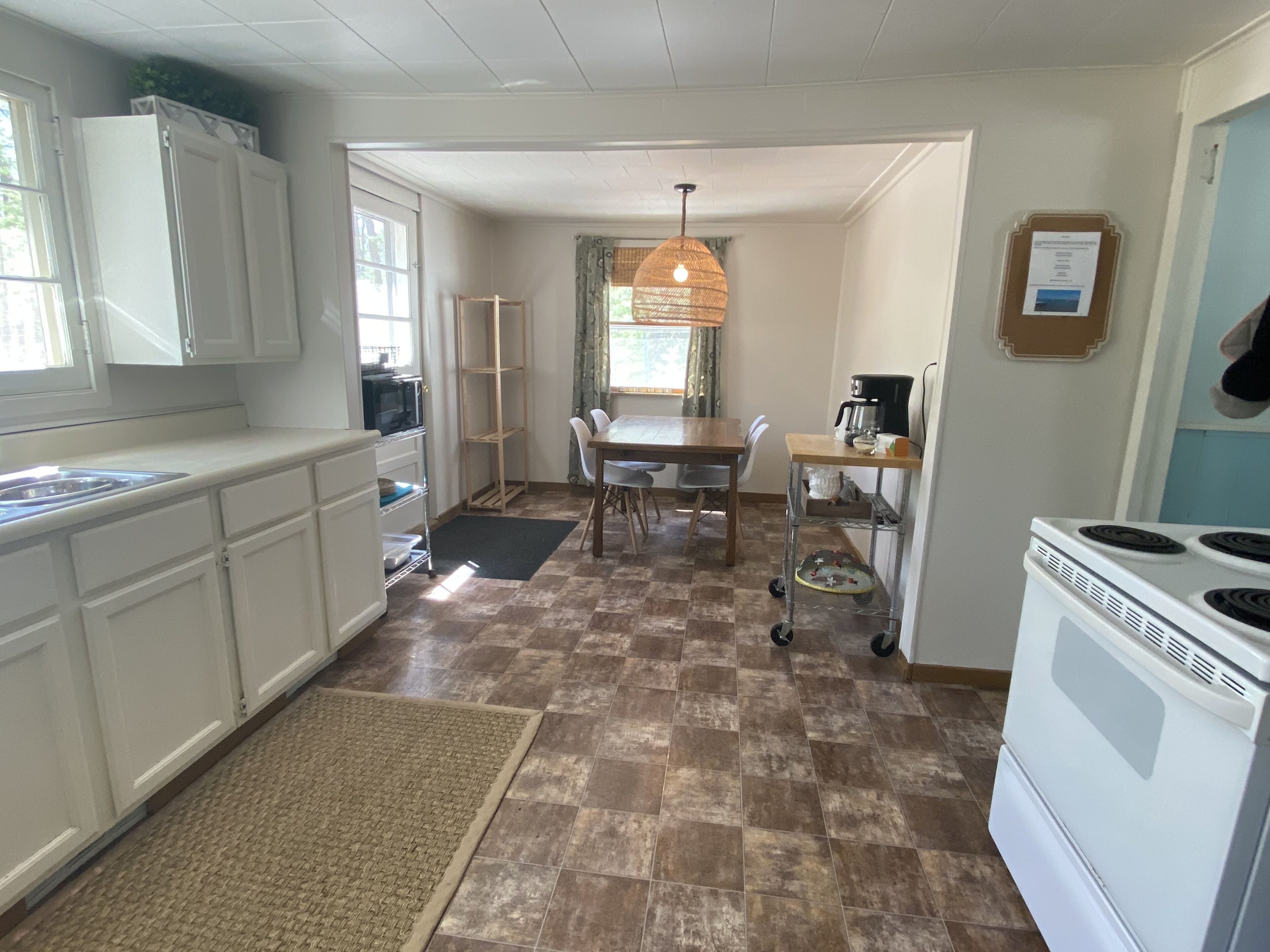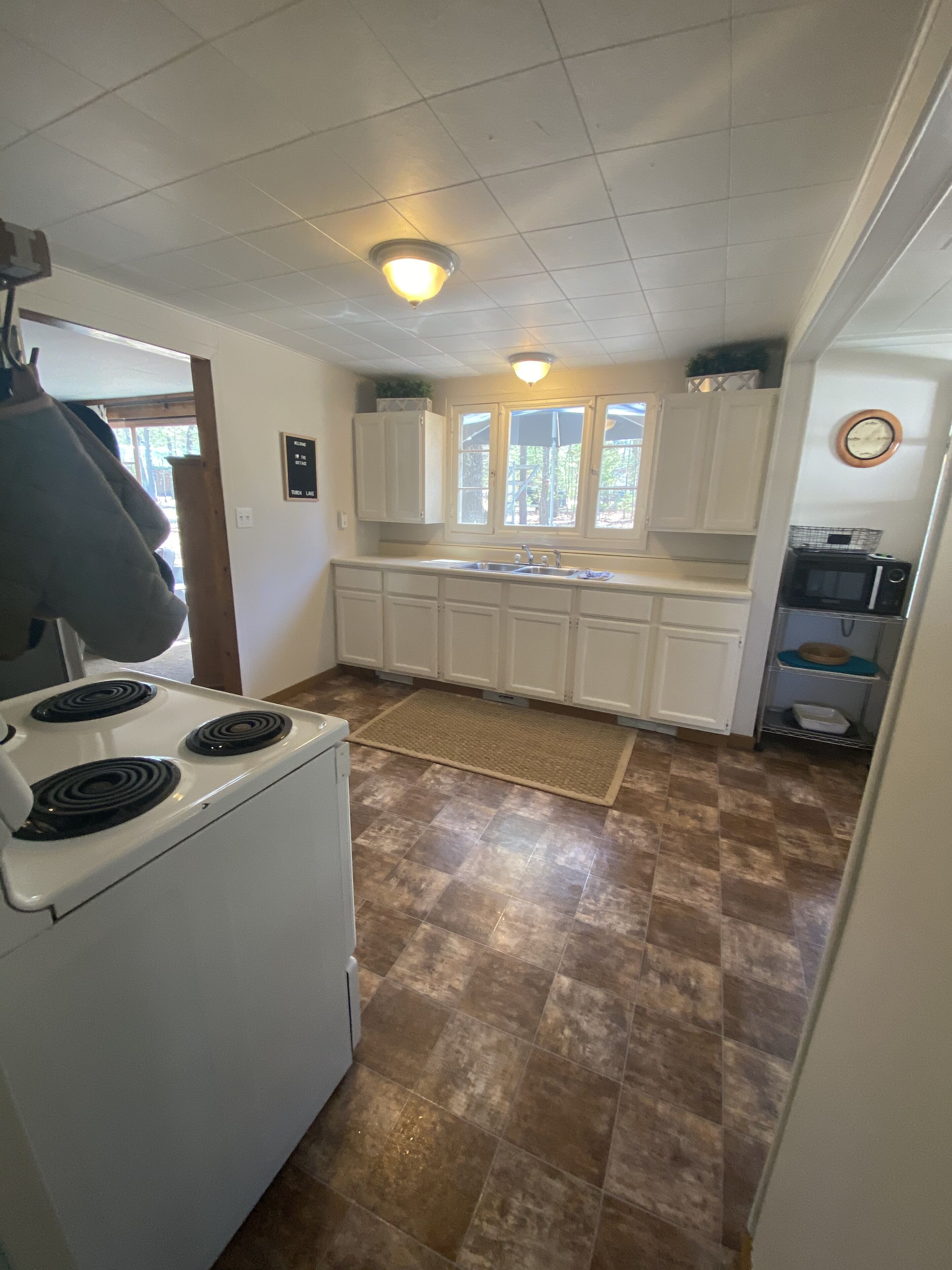 Torch Lake Cottage Welcome to the Mitten Cottage located across the street from beautiful Torch Lake!Check out our beach here! https://youtu.be/Y_GhXYNZOUEThis clean and cozy 1950’s charmer is ideally located near the south end of Torch Lake, just 200 feet from a public access point. Access the famous sandbar via boat or a short walk along the shoreline (less than one mile away).Beyond lake fun, there is so much to do in the area during all four seasons. From wine tasting in Traverse City to skiing at Shanty Creek Resort, we are happy to recommend a variety of options that align with your interests.Alden - 3 miles / 5 minutesElk Rapids - 12 miles / 20 minutesBellaire - 14 miles / 22 minutesTraverse City - 25 miles / 37 minutesCharlevoix - 38 miles / 47 minutesPetoskey - 54 miles / 1 hour, 8 minutesSleeping Bear Sand Dunes / Glen Arbor - 55 miles / 1 hour, 22 minutesCOTTAGEThe cottage is fully equipped with everything needed to make your stay effortless and enjoyable.Sleeping arrangements for 8 are made available between a queen bed, set of bunk beds and two twin beds between two bedrooms; plus a sleeper sofa located in the sunroom or a large sectional sofa in the living room. Two full bathrooms are accessible on either side of the home. All bed and bath linens are provided for your convenience and laundry is available for use if needed.The large living room has plenty of furniture for lounging, with a TV and fireplace available for use during rainy or cold days indoors. The sunroom is a charming and breezy space perfect for playing games or curling up to read a great book.The eat-in kitchen is stocked with all of the essentials you will need to prepare and serve meals for your group. Finally, enjoy the outdoor space by roasting s’mores over the fire and dining alfresco on the deck.We are sure there is something for everyone in your group to enjoy their stay here!