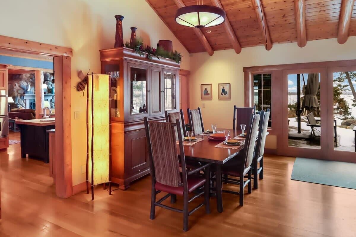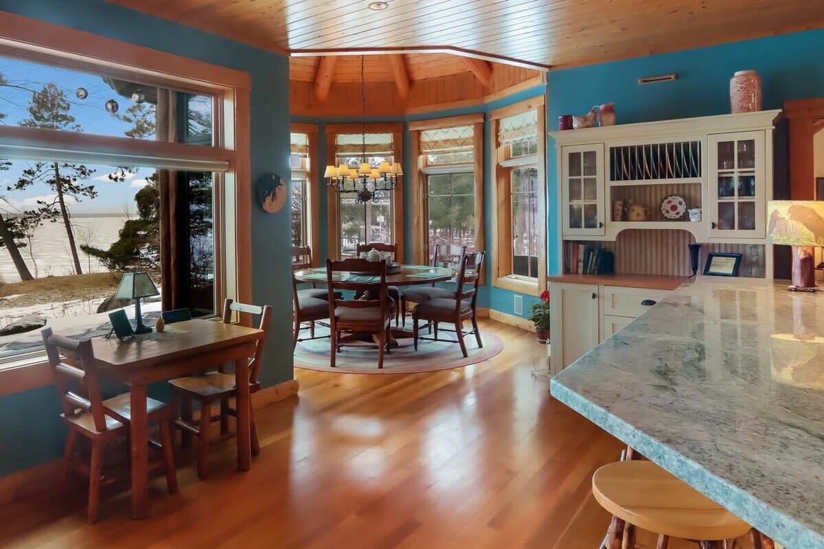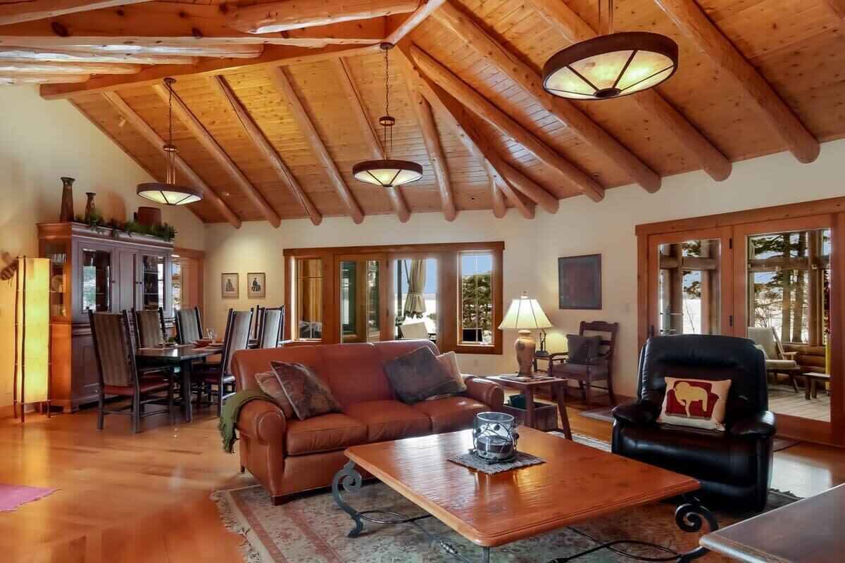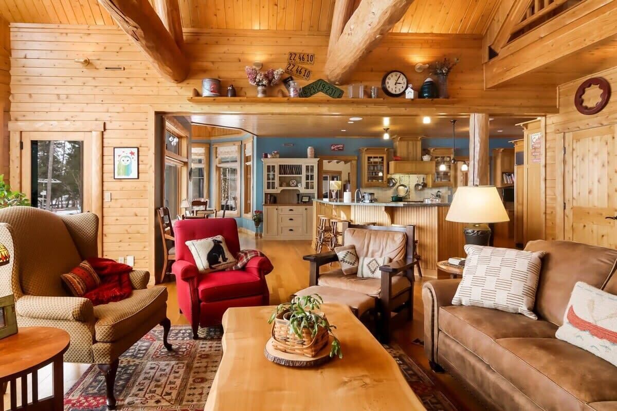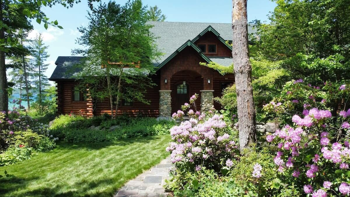 Elk Lake Lodge Summar Summary:Available for stays of 30 days or more! An extraordinarily unique property with 300 feet of Elk Lake frontage, an abundance of beautifully landscaped flowering gardens, a natural stone hot tub, a pond, fire pit, and a stream that circles the exquisite 7,000 sq. ft. log home that welcomes your pups. The architecture and features of this property are straight out of an...