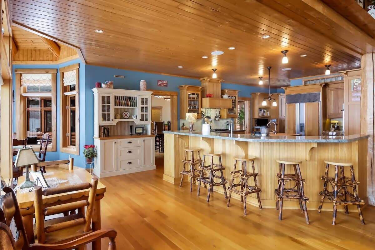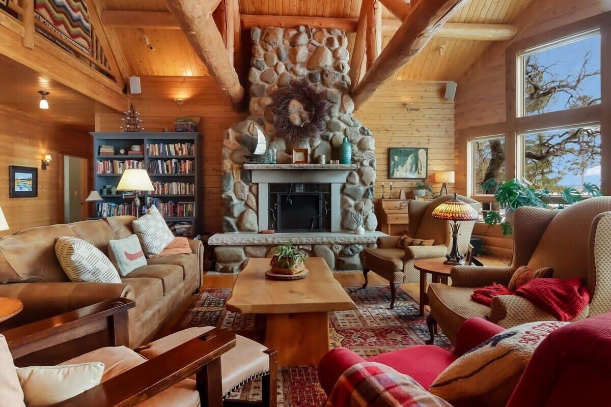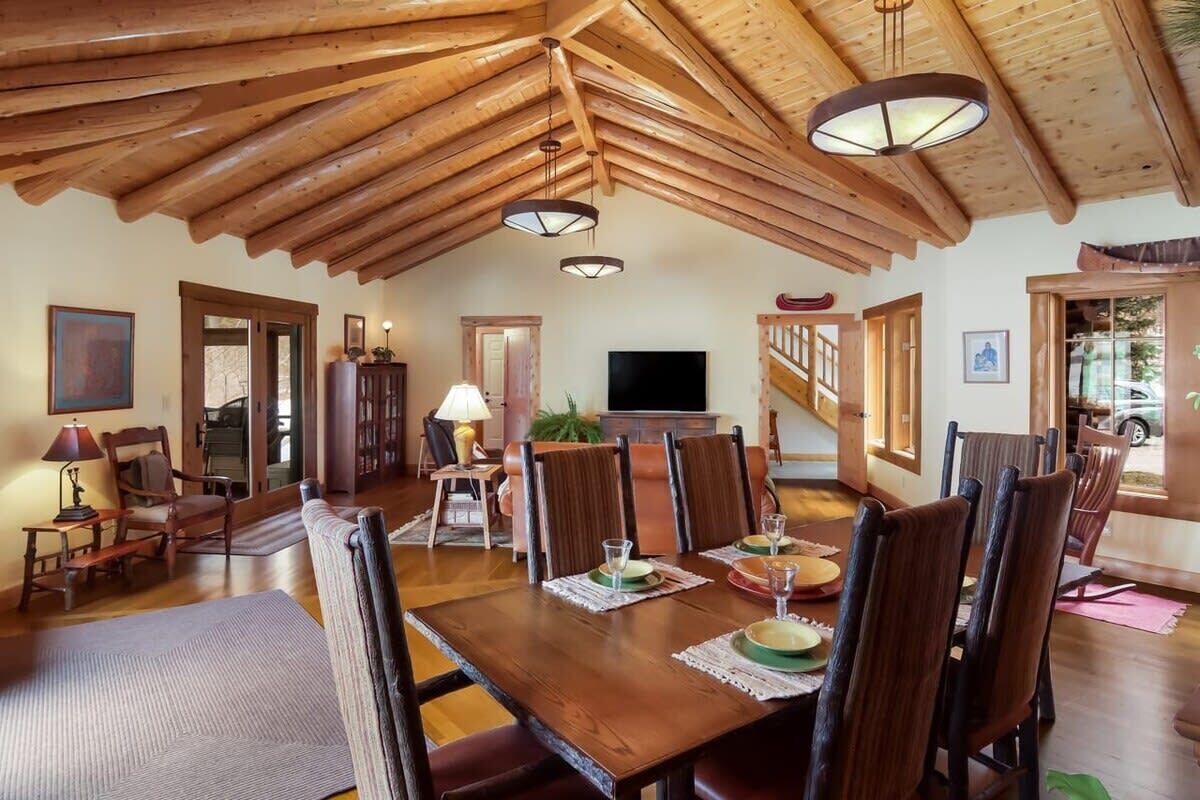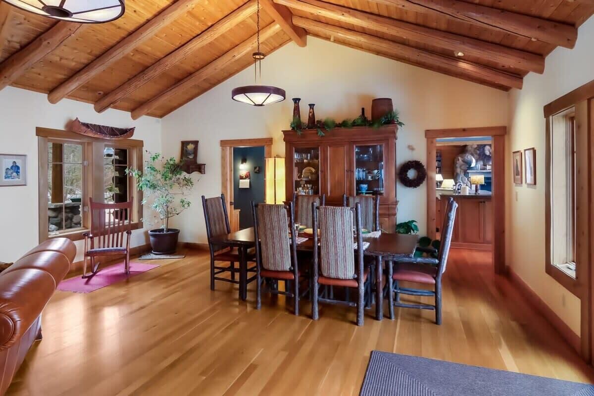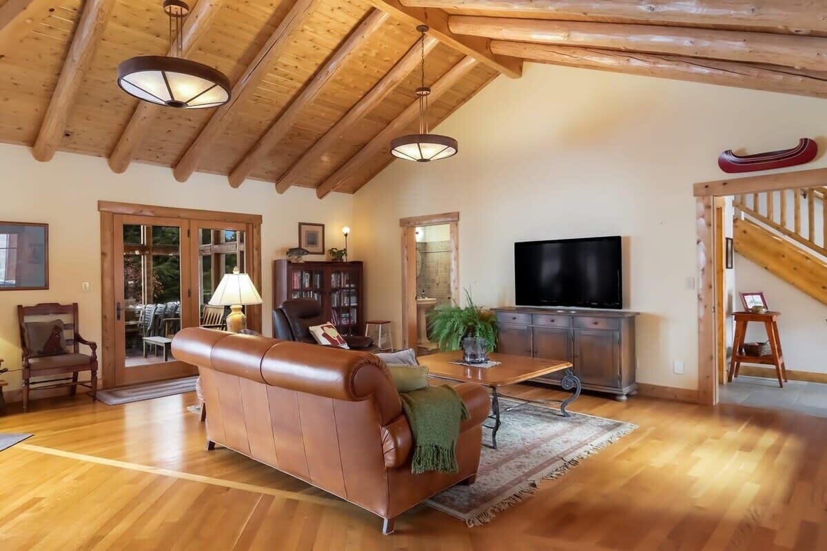 Elk Lake Lodge Summar Summary:Available for stays of 30 days or more! An extraordinarily unique property with 300 feet of Elk Lake frontage, an abundance of beautifully landscaped flowering gardens, a natural stone hot tub, a pond, fire pit, and a stream that circles the exquisite 7,000 sq. ft. log home that welcomes your pups. The architecture and features of this property are straight out of an...