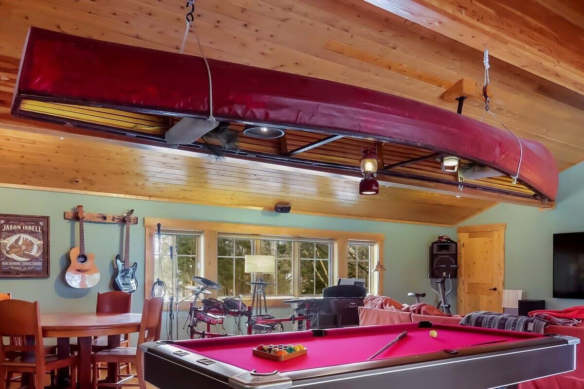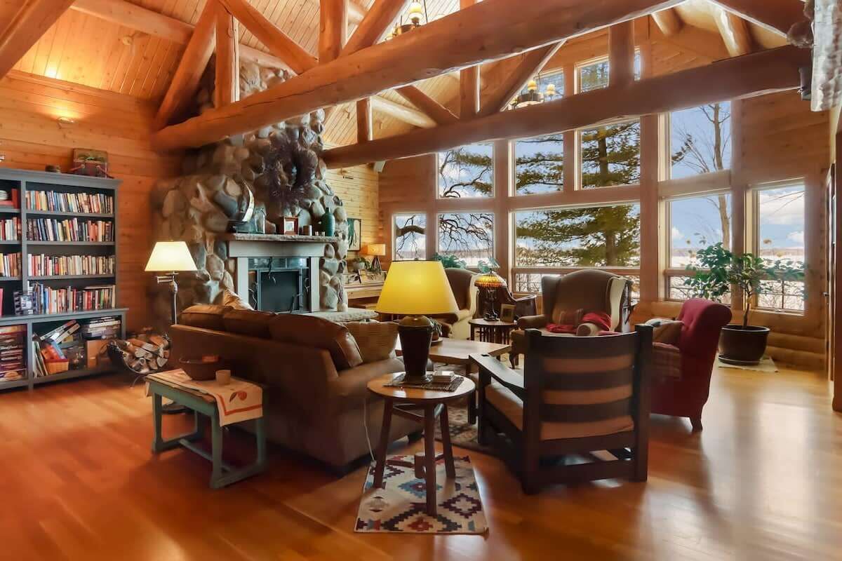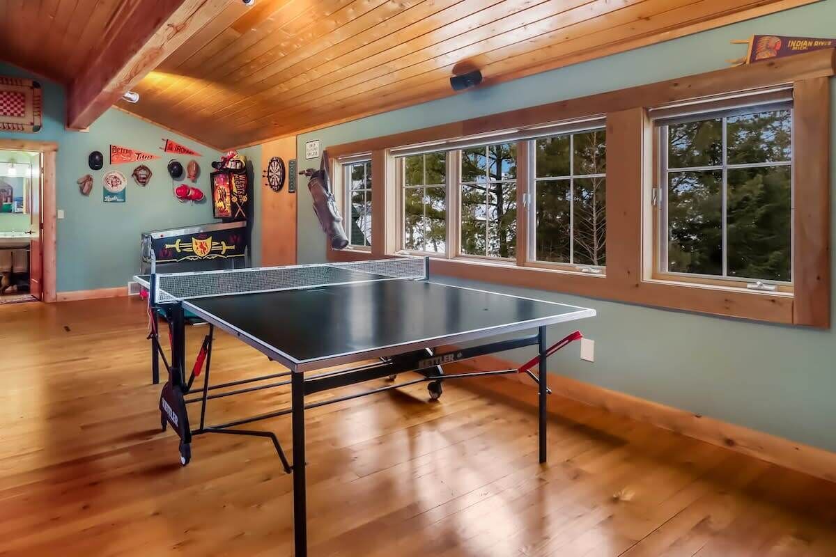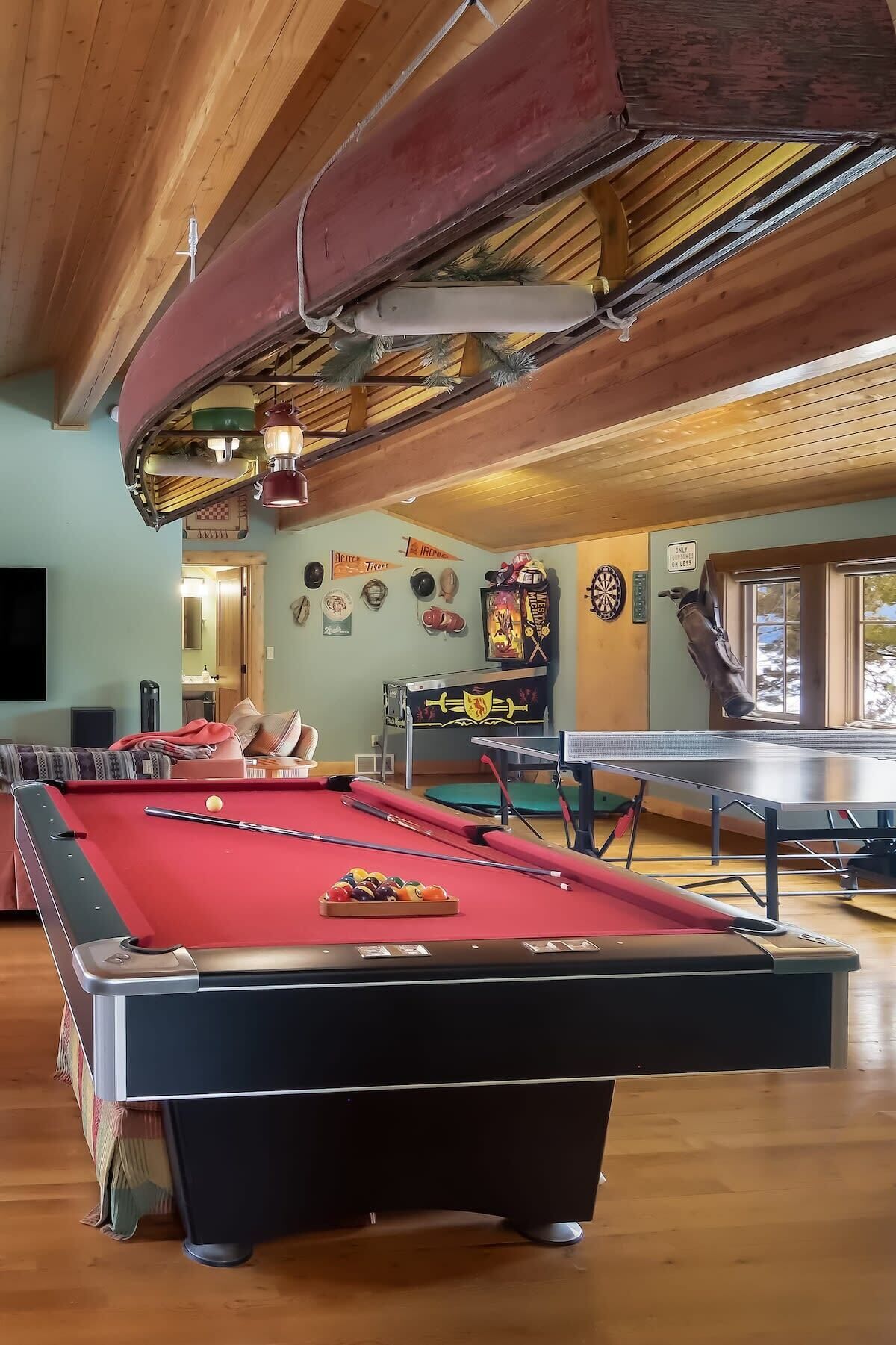 Elk Lake Lodge Summar Summary:Available for stays of 30 days or more! An extraordinarily unique property with 300 feet of Elk Lake frontage, an abundance of beautifully landscaped flowering gardens, a natural stone hot tub, a pond, fire pit, and a stream that circles the exquisite 7,000 sq. ft. log home that welcomes your pups. The architecture and features of this property are straight out of an Up North Michigan magazine. *All guests must be 25+ unless accompanied by a parent/guardian*See Pet Info Below*The Space:Main Floor-Half - Bathroom in main entryLiving room, enormous open kitchen, home officeFamily room/dining area with a half bathroom that can be accessed from the garageScreened in sun roomPrimary Bedroom with King Bed and connected full bathroom with tub and shower.2nd Floor- Bedroom areaLoft seating area Bedroom 2 - Queen Bed and a Twin BedBedroom 3 - Queen BedBathroom between bedrooms 2 and 3, shower and tubBedroom 4 - Full Bed with DeskBedroom 5 - Queen Bed and a Twin BedBathroom between bedrooms 4 and 5, shower only2nd Floor Game Room:1200 sq. ft. space above the garage; includes 86 inch TV, Roland electronic drum set with headphones, Yamaha digital piano, pinball machine, darts, table tennis, foosball table, pool table, card table, and misc. board gamesAlso includes bar with full size refrigerator, bar size Bosch dishwasher and kegerator (choice of beer upon request). This room is the highlight for many guests!There is an attached bathroom with a shower. Other features in the home-Attached 3 car garageWood burning fireplace Heated floors 1GB internet Outside-Large in-ground stone and boulder hot tub open all year round! Includes a smaller heated pool above the hot tub that is able to become waterfall into lower tub.Outdoor firepit Outdoor showerPropane GrillDock and mooring ball available Memorial - Labor Day Pond in front of the house leads into a stream around the house and out to the lake.Extensive landscaping and mature trees on very large lot makes the property feel secluded and very private. This alone makes this property very unique.300 feet of lake frontage and acreage to enjoy. East side of lake provides fantastic sunset viewing.Other Things to Note:Please Note: All guests staying at this property must be 25 or older unless accompanied by a parent or guardian. This will be verified after booking confirmation. A damage waiver fee is required by Golden Swan for each stay. For this property, the fee is $129 and provides our guests with accidental damage coverage up to $2000. If the amount of damage exceeds this, or if the damage is found to have occurred with malicious intent, Golden Swan retains the right to seek damages beyond that amount.High chair and pack n play available upon request for an additional charge.There is a 3% non-refundable credit card processing fee applied to all reservations. Mid-stay cleans will be required at least every 14 days. Please let us know if you would like to schedule any extra cleanings in addition to this at time of booking.Dogs are allowed with an additional fee, with a maximum of 2 dogs. Please be advised that it is absolutely imperative for all renters to keep their dogs on a leash at all times. While we truly appreciate and value pets, ensuring that our furry friends are leashed or properly secured is of utmost importance to us. Please take your pup with you or kennel them when you leave the home. We cannot have lonely barking dogs left at our property. Please be considerate and clean up after your pet.DOCK: You can expect the dock to be available for use Memorial Weekend through Labor Day Weekend. Please only use the dock for 15-minute loading and unloading of passengers. A mooring ball just beyond it is available for mooring between boat rides. Winds and waves pick up super-quick and can cause damage to boats and docks. There are no protective dock bumpers to prevent potential boat-docking issues.
